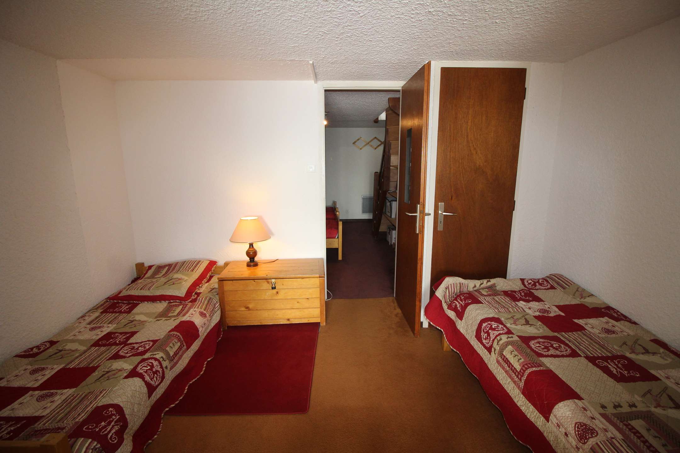 The apartment features a living room with a convertible sofa bed for 2, a fully-equipped kitchenette, a bathroom with bathtub and separate toilet. On the lower level, an open-plan cabin area with 2 single beds, a windowless bedroom with 2 single beds and a second bedroom with a double bed.