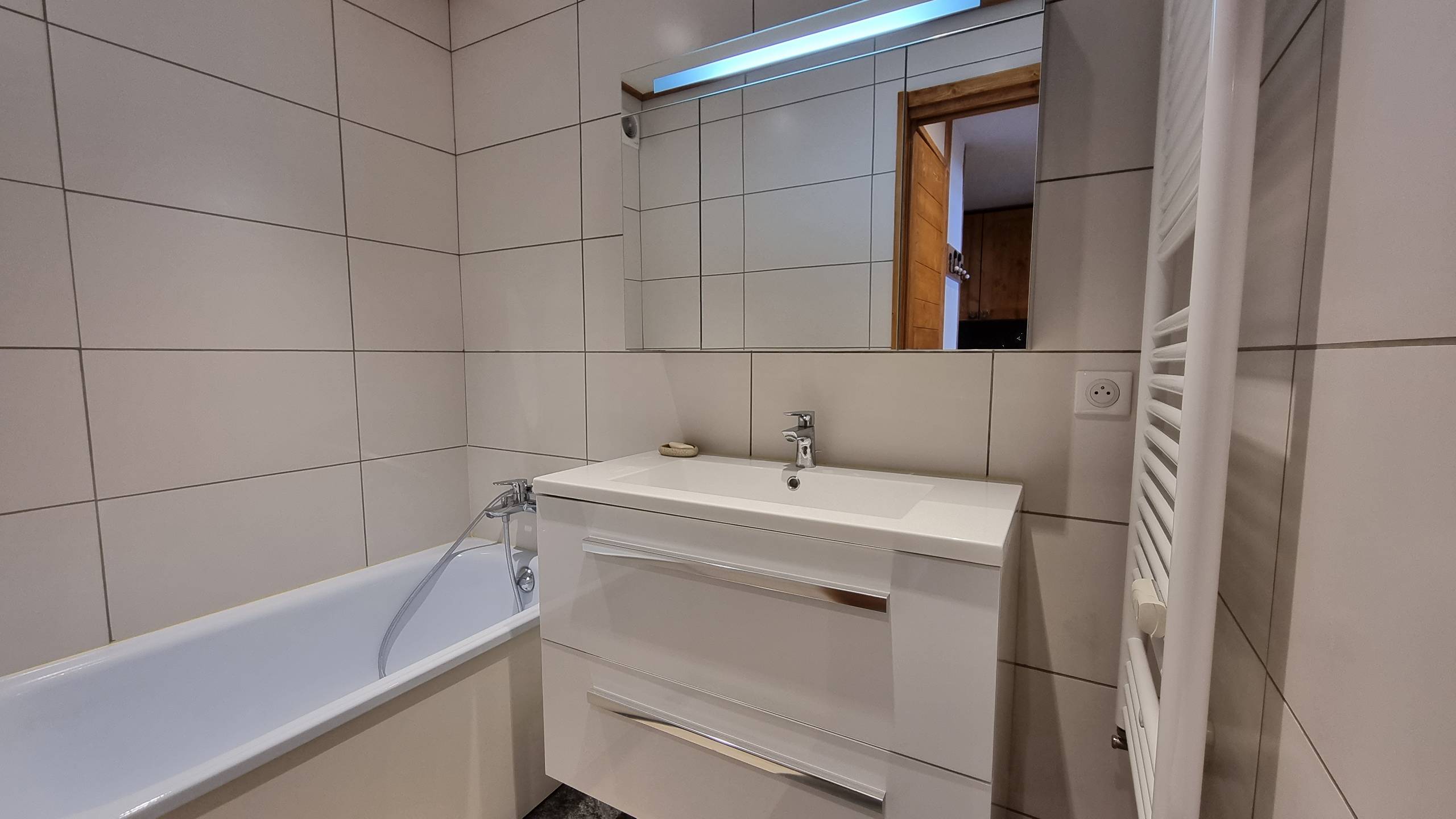 PLAGNE CENTRE – Residence Makalu. Large studio cabin, completely renovated, facing south with terrace and view of the snow front. The residence offers direct access to shops through an interior gallery. Ski-in ski-out!