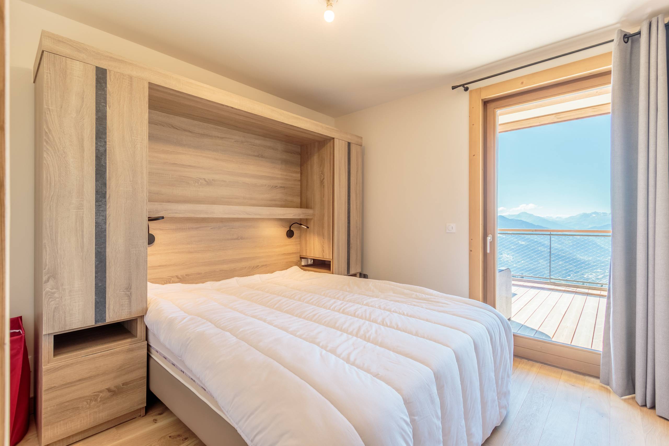LES ARCS 1600 - Residence 4* with SWIMMING POOL and SPA! SKI IN SKI OUT! Fantastic view. Splendid NEW 4 room apartment 6/9 persons 80 m². The large terrace of 27m² offers an exceptional view on the valley. SOUTH WEST facing, Located on the 3rd floor with lift. Beds made upon arrival, towels included. 1 covered parking space included (max. 2.05m height) + 1 parking space in addition extra charge). WIFI. Ski locker. SKI IN/SKI OUT.