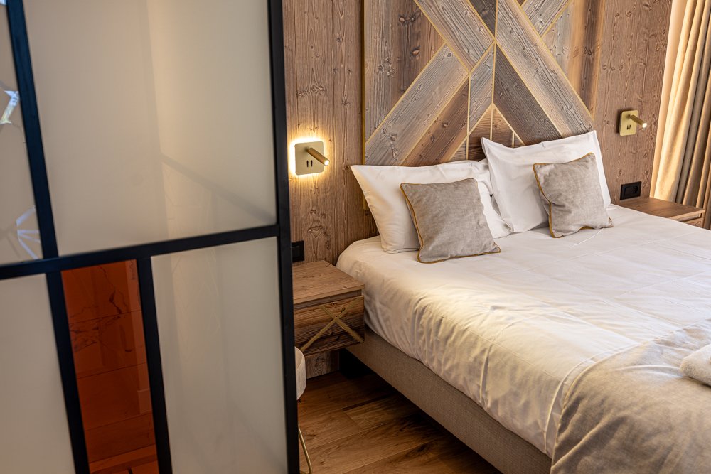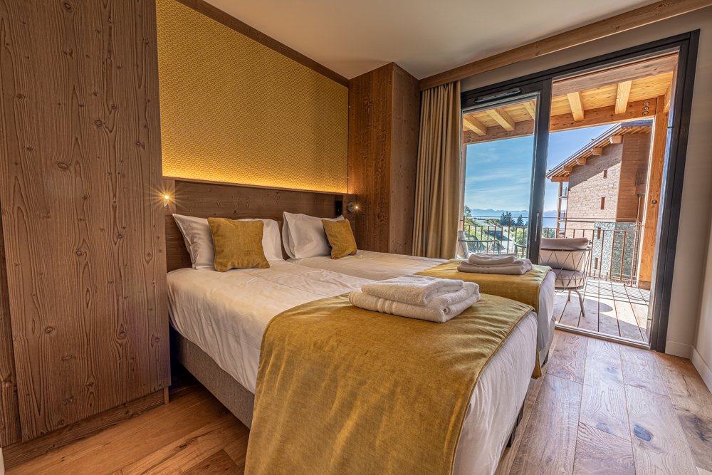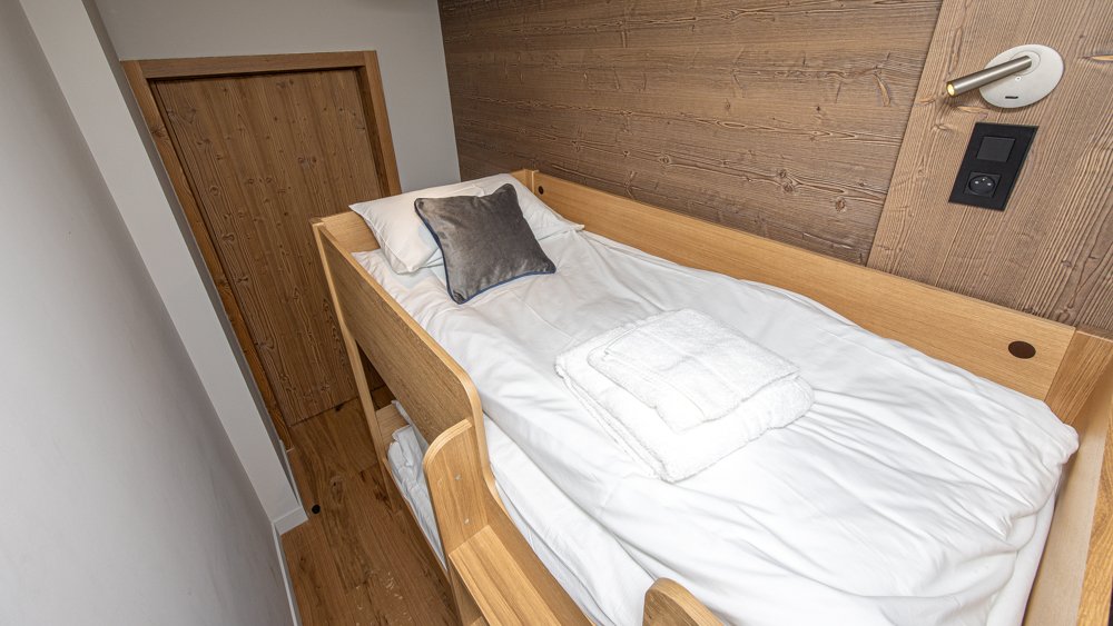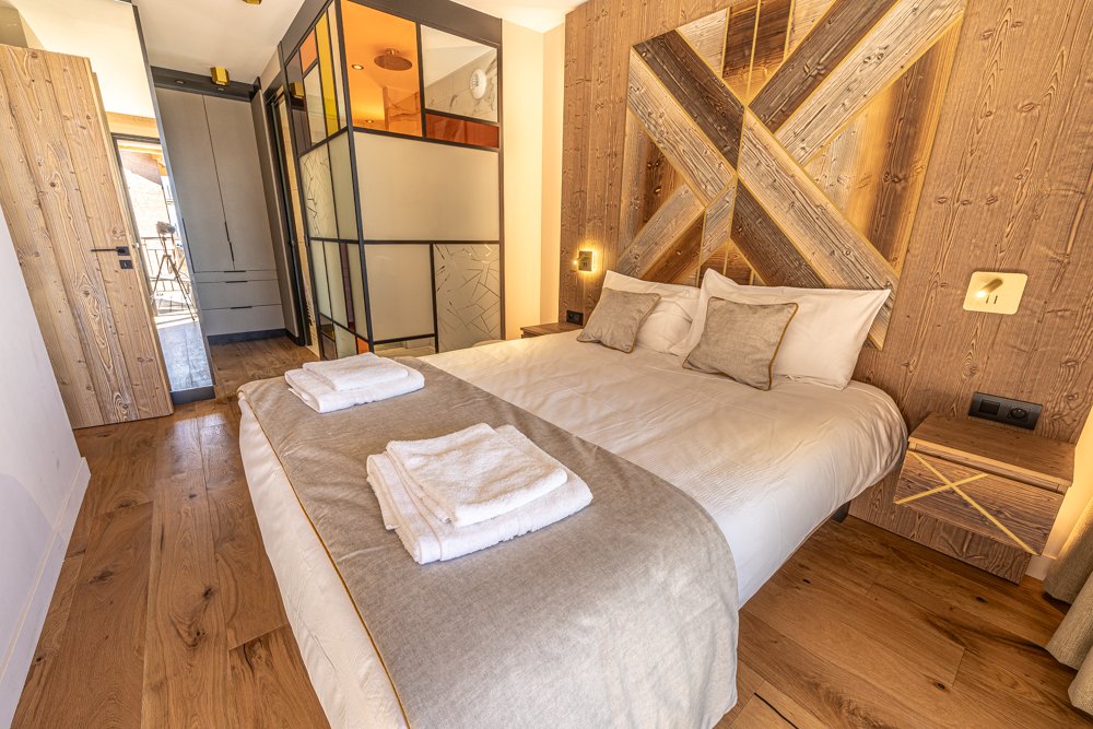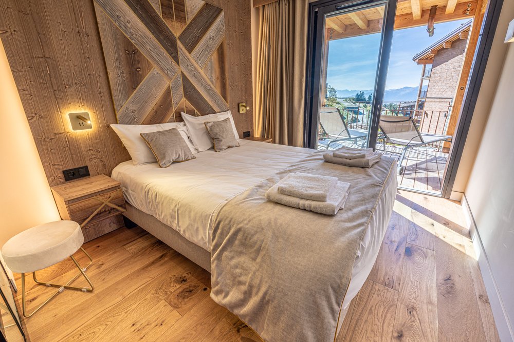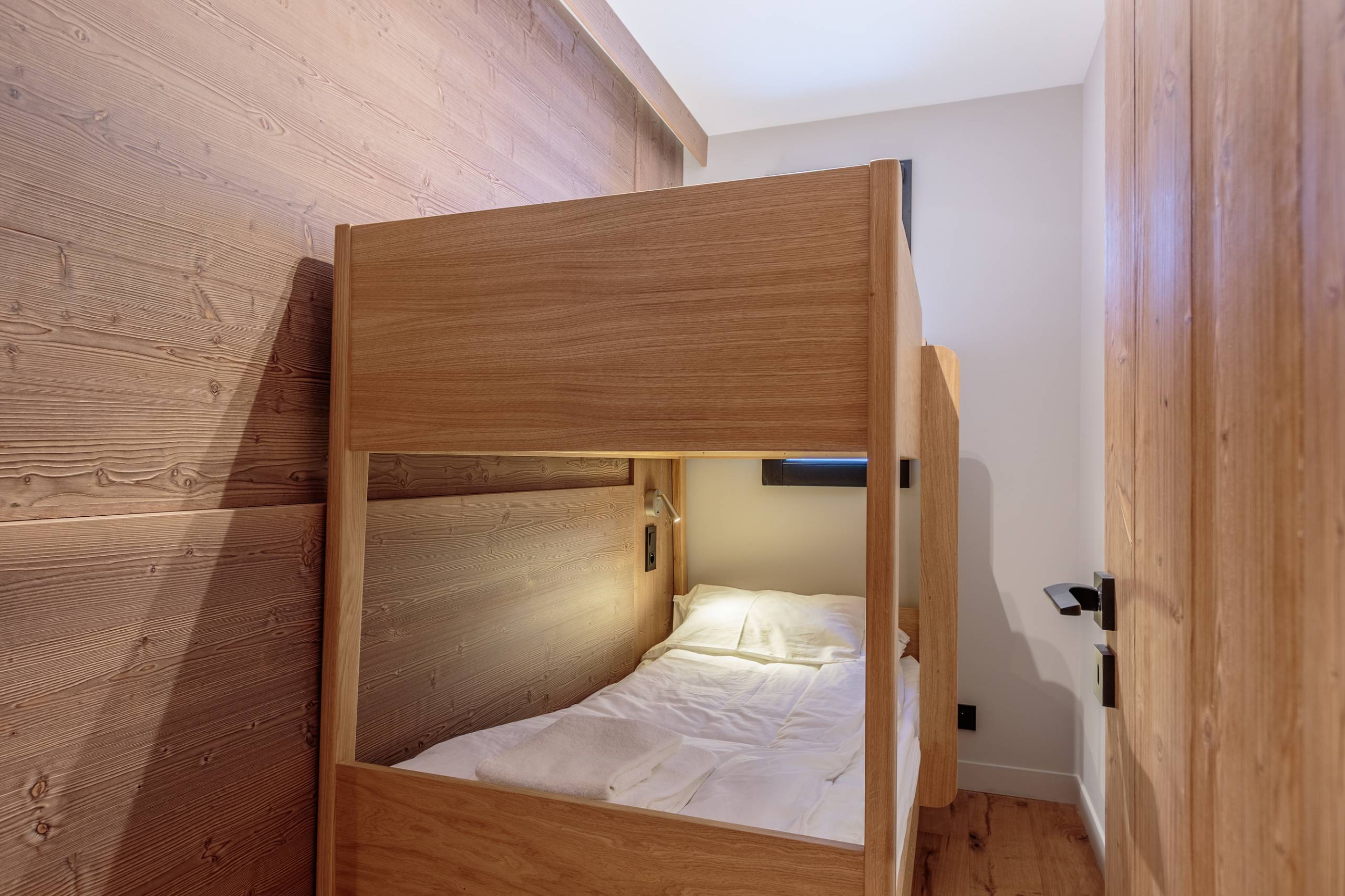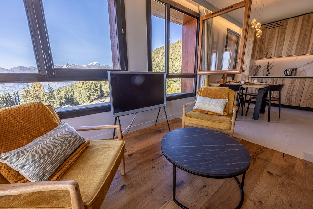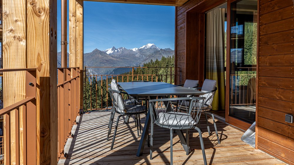 BRAND NEW apartment for 6 people, 64 m² with 2 bedrooms + 1 cabin with a bunkbed and 1 large TERRACE with PANORAMIC VIEW ON MONT BLANC and summits around, facing West. Chic, contemporary design!