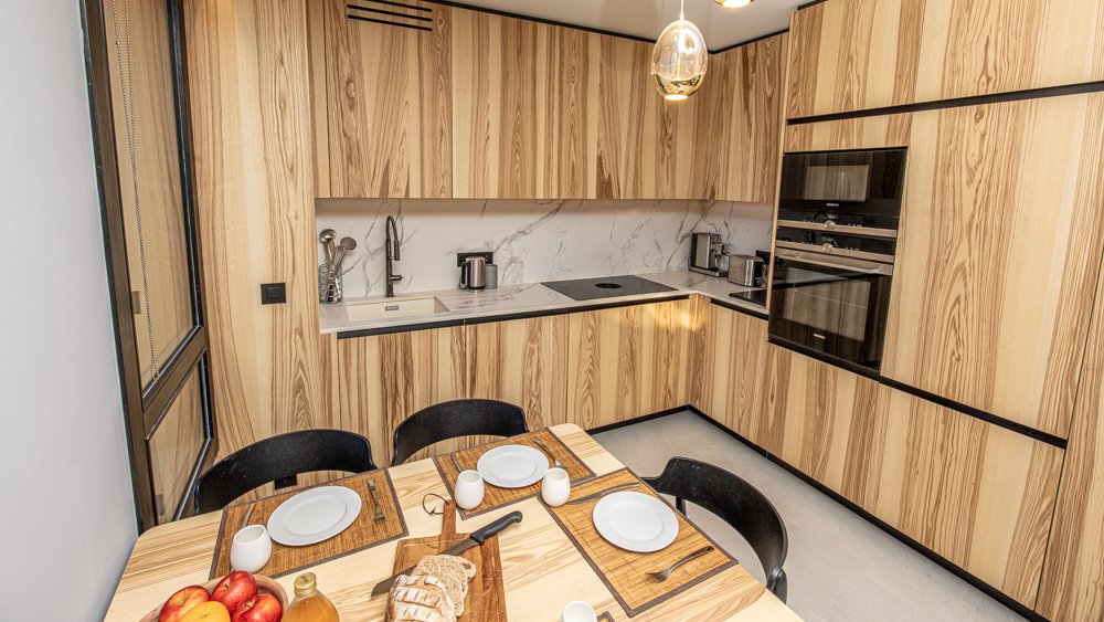 - Fully-equipped kitchen opened onto living room: oven, microwave, percolator, Italian coffee maker, kettle, toaster, induction hob, hood .... with large dining table and terrace access.