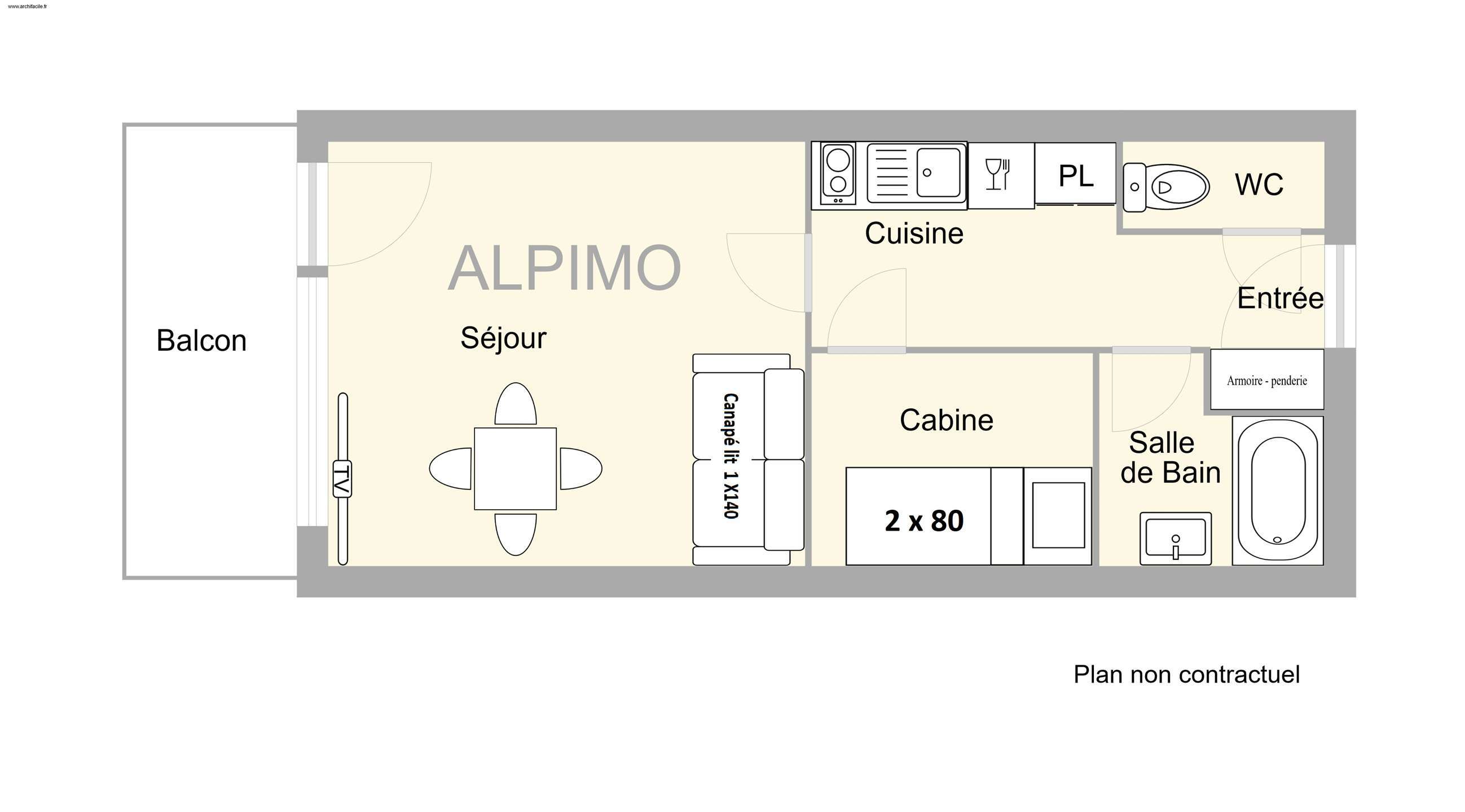 Studio apartment on the 2nd floor of the residence without lift (2 floors to climb for access), south-facing with balcony.