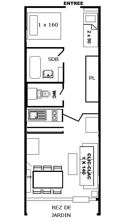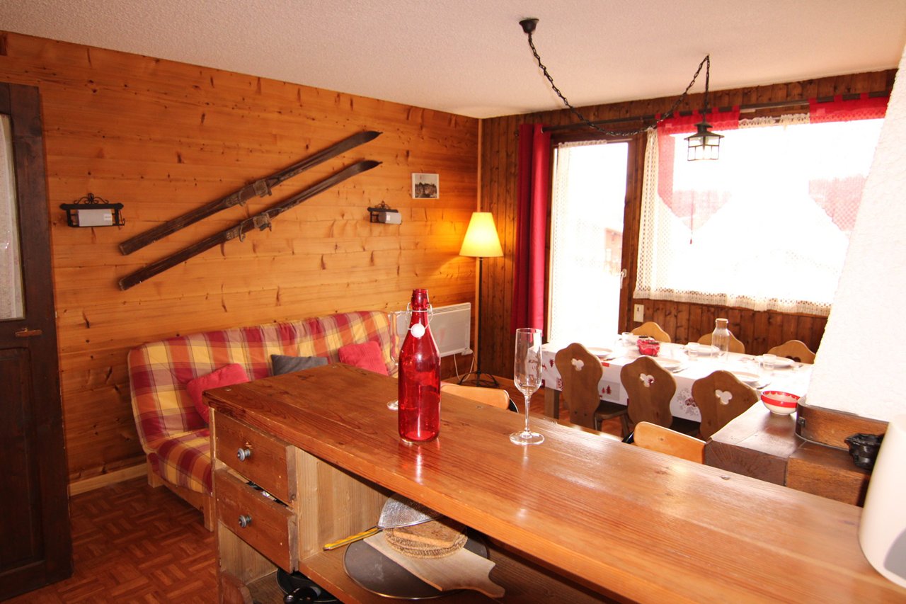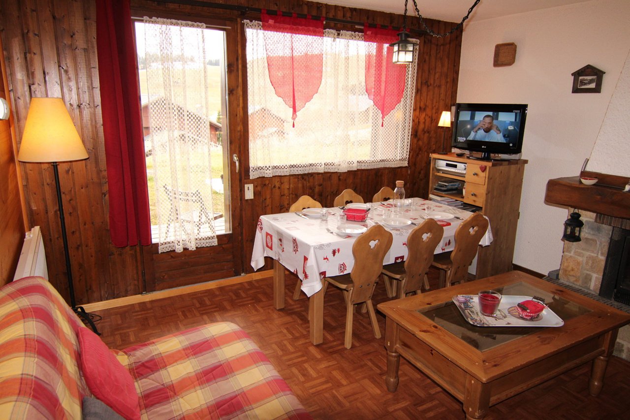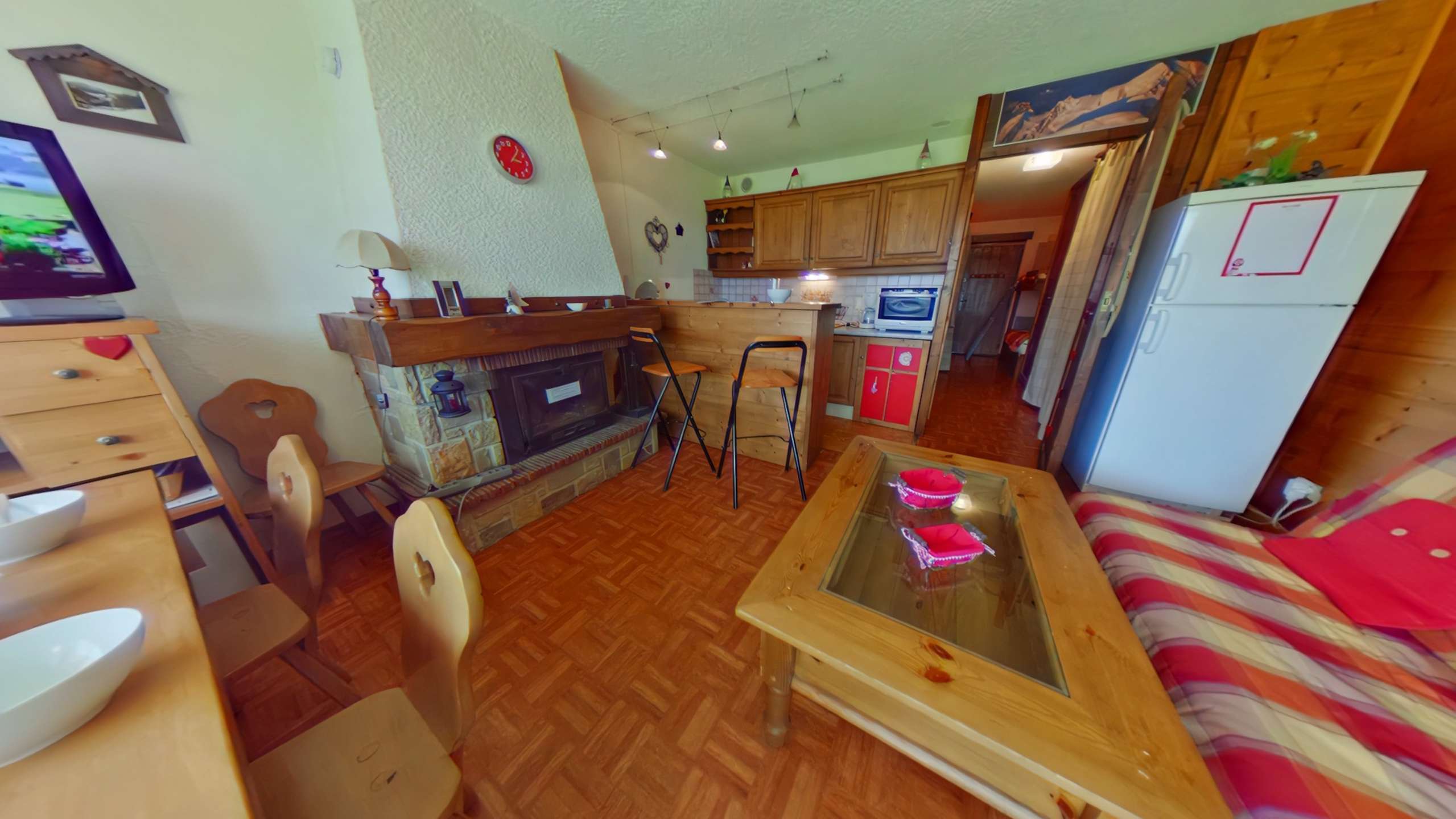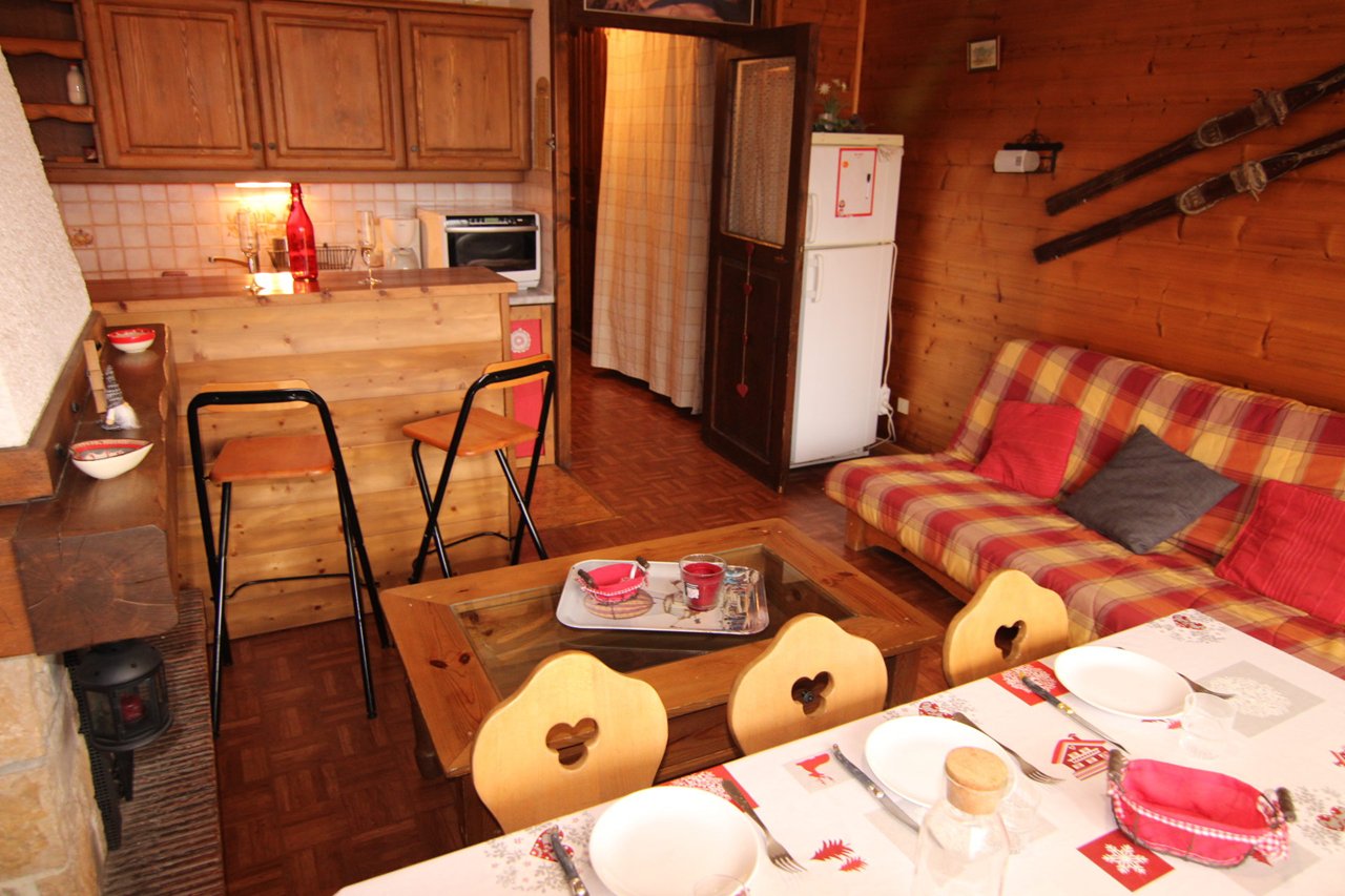The apartment has a fully-equipped kitchenette, a living room with a sofa bed (140cm), an alcove with a bed (160cm), another alcove with bunk beds (2x80cm) and a shower room with separate toilet (N.B.: the top bunk is not suitable for children under 6) - Fireplace not working.