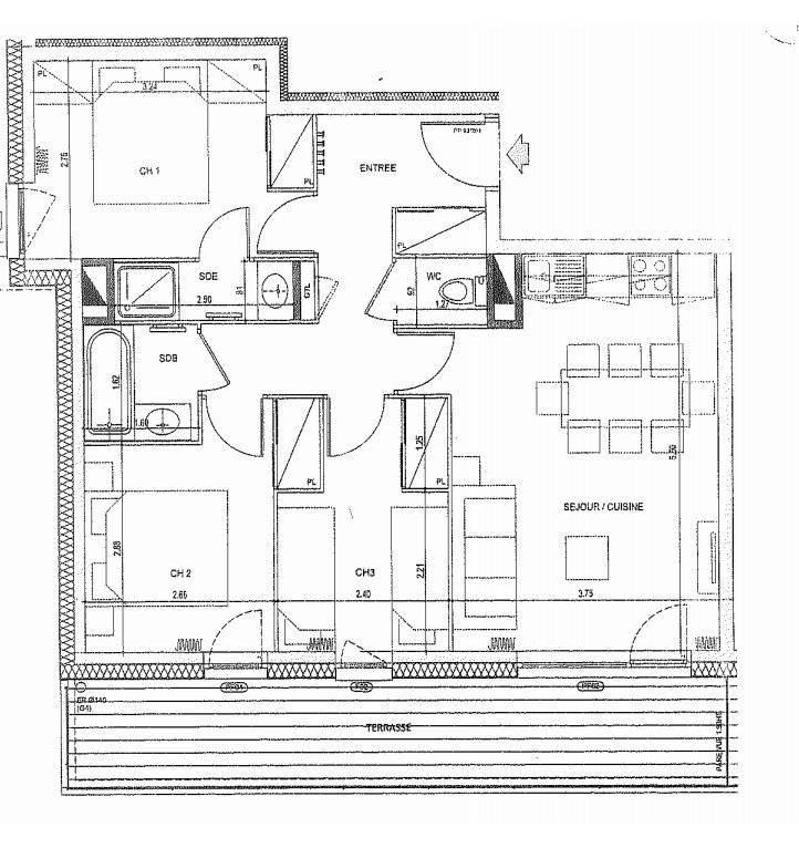 4-room apartment, located on the ground floor of the residence with lift, south-facing with balcony + covered parking space in the basement (H.1.95m; L.5.20m; L.2.60m)