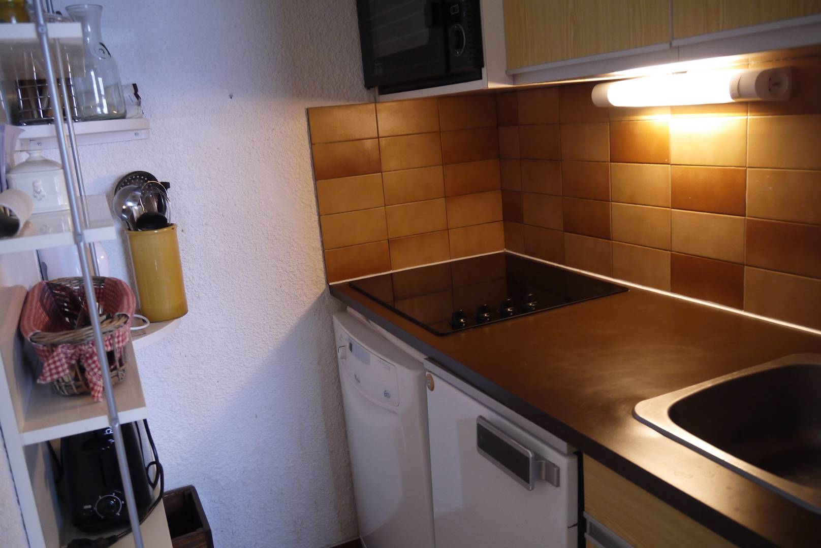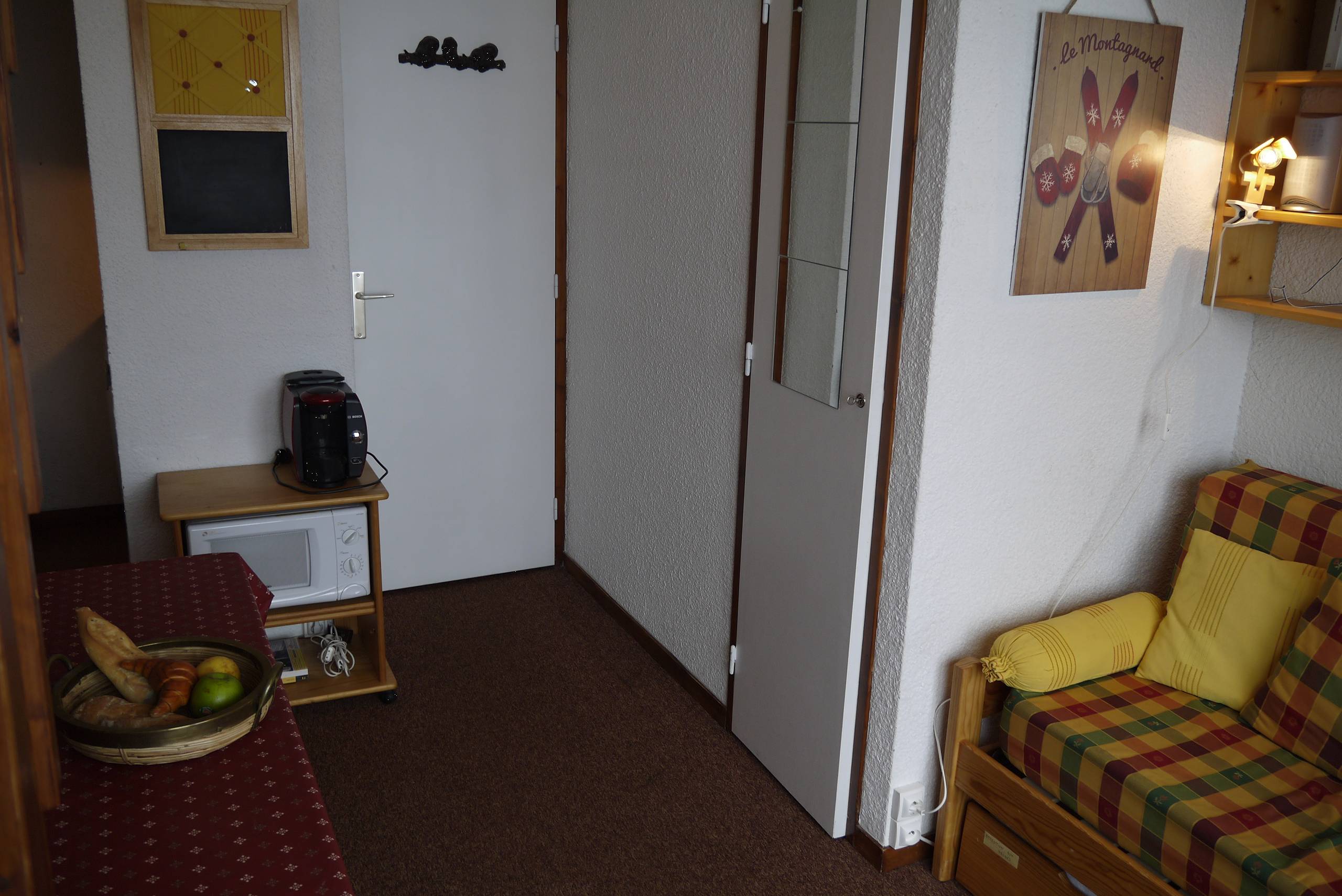THE APARTEMENT : Living room with a single bed and a trundle bed, TV. Alcove with a single bed. Bedroom with double bed. Kitchen equipped with electric hob and oven, microwave, dishwasher, refrigerator. Bathroom and separate wc. Non-smoking apartment. Balcony, ski locker and a lift in the residence. Pets forbidden.