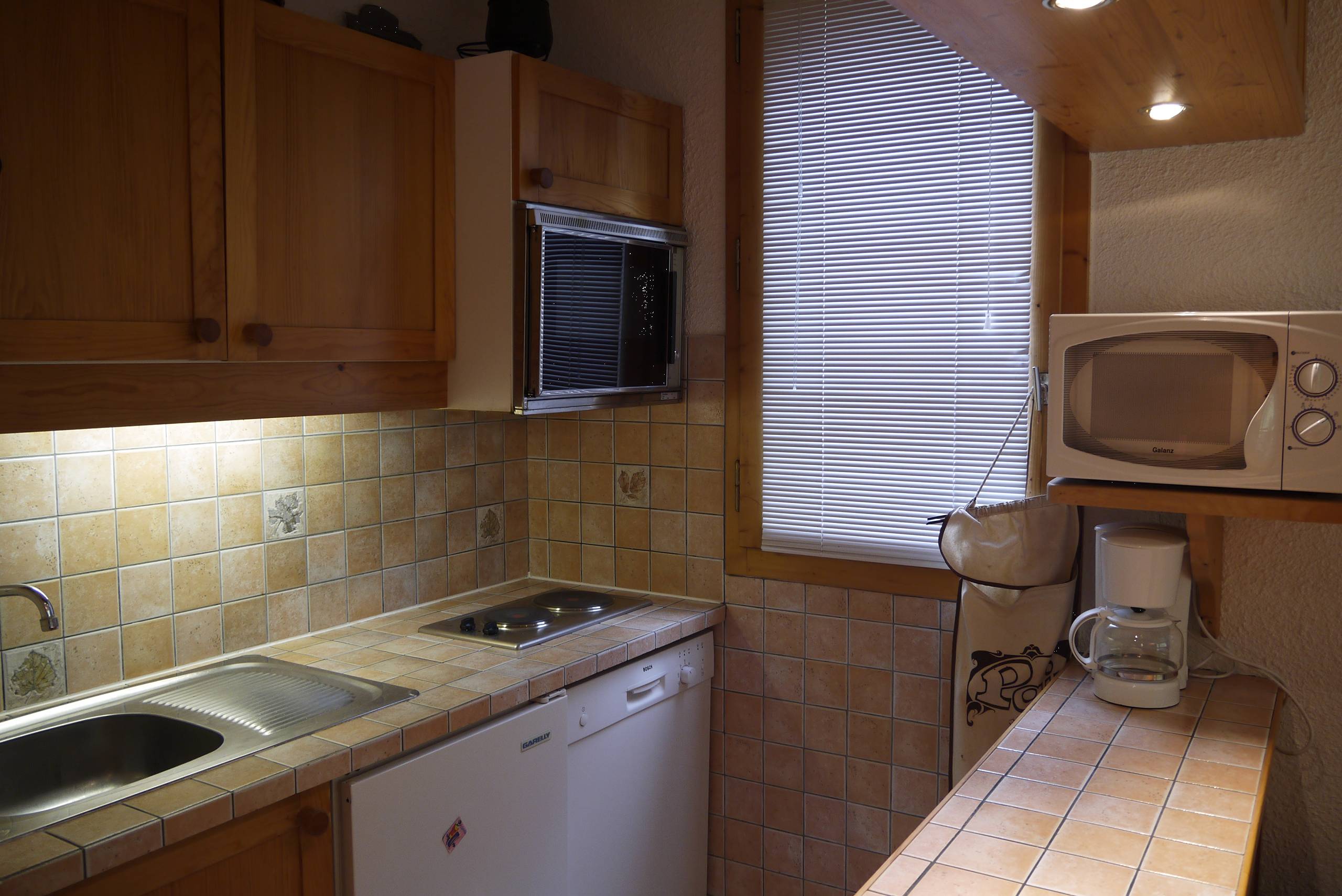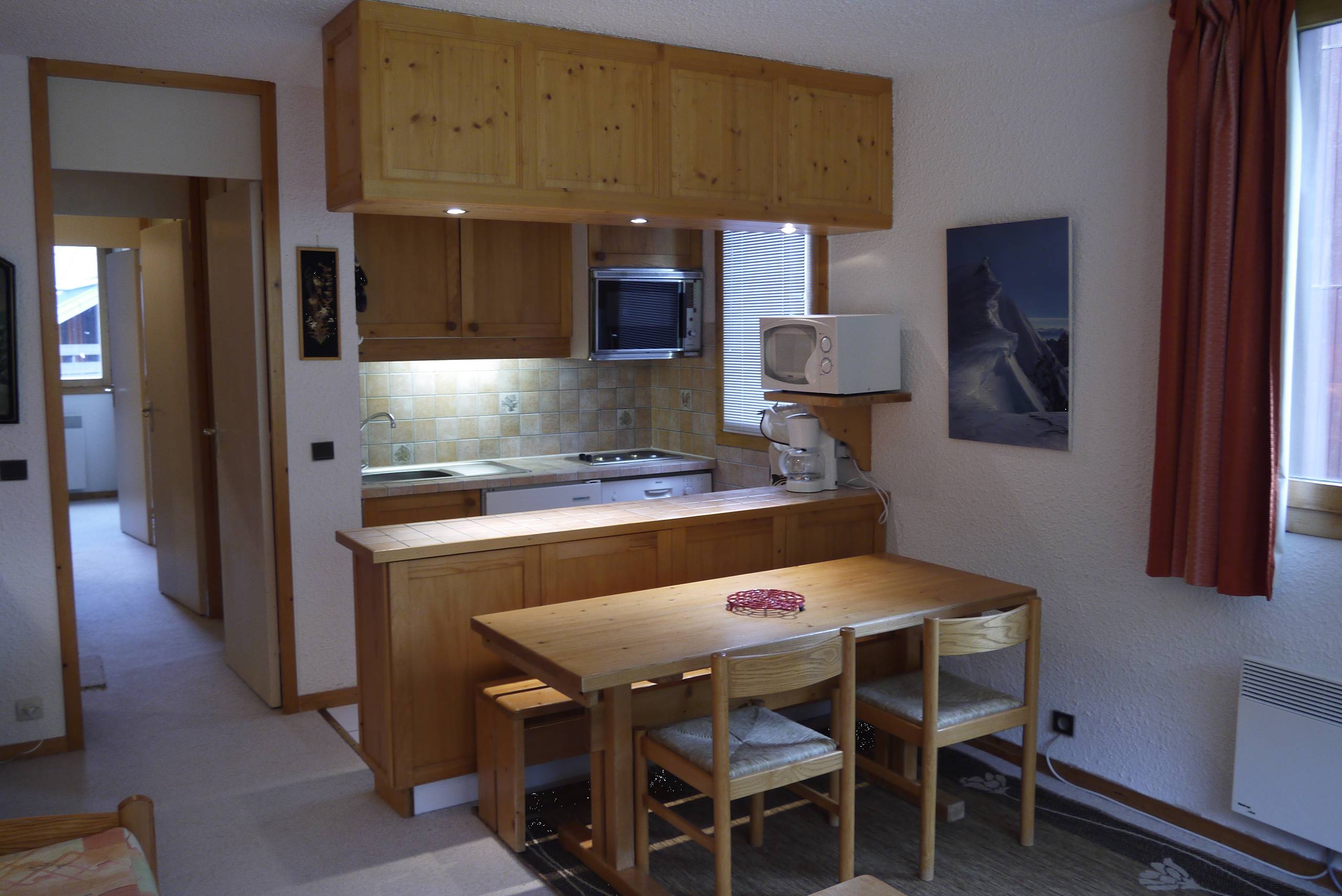 2 bedroom apartment for 6 people. The living room facing south, on the slopes, is composed of a sofa bed and a pull-out bed (80x190). The open kitchen separated from the living room by a bar is fully equipped with a dishwasher, refrigerator, oven, microwave, electric hob, coffee maker, kettle, toaster. This apartment has a comfortable double bedroom (140x190) and a cabin bedroom with a set of bunk beds (80x190). Bathroom and separate WC. 1st floor. Non-smoking apartment / Pets forbidden.
