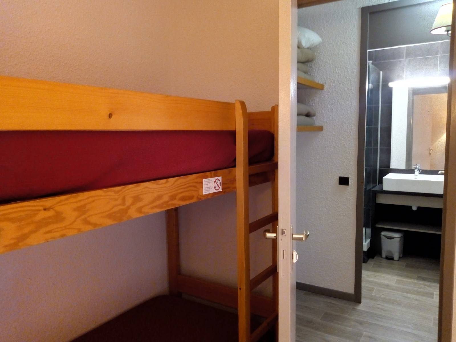 Divisible living room with 2 single beds (80x190), a balcony. Bathroom and separate toilets. Kitchen with an electric hob, an oven, a dishwasher, toaster, kettle, coffee maker and a fridge. On the mezzanine you will find a set of bunk beds (80x190).