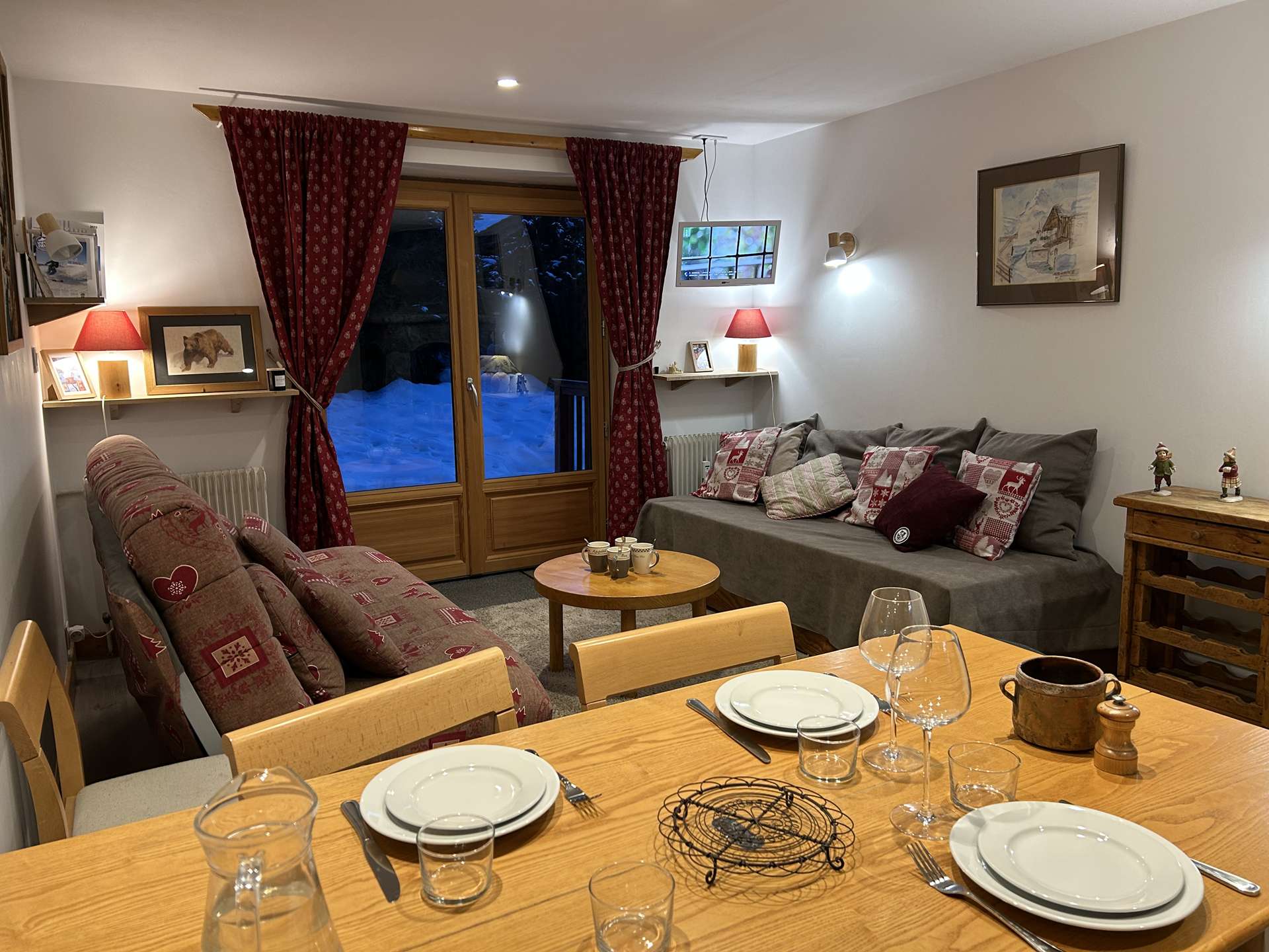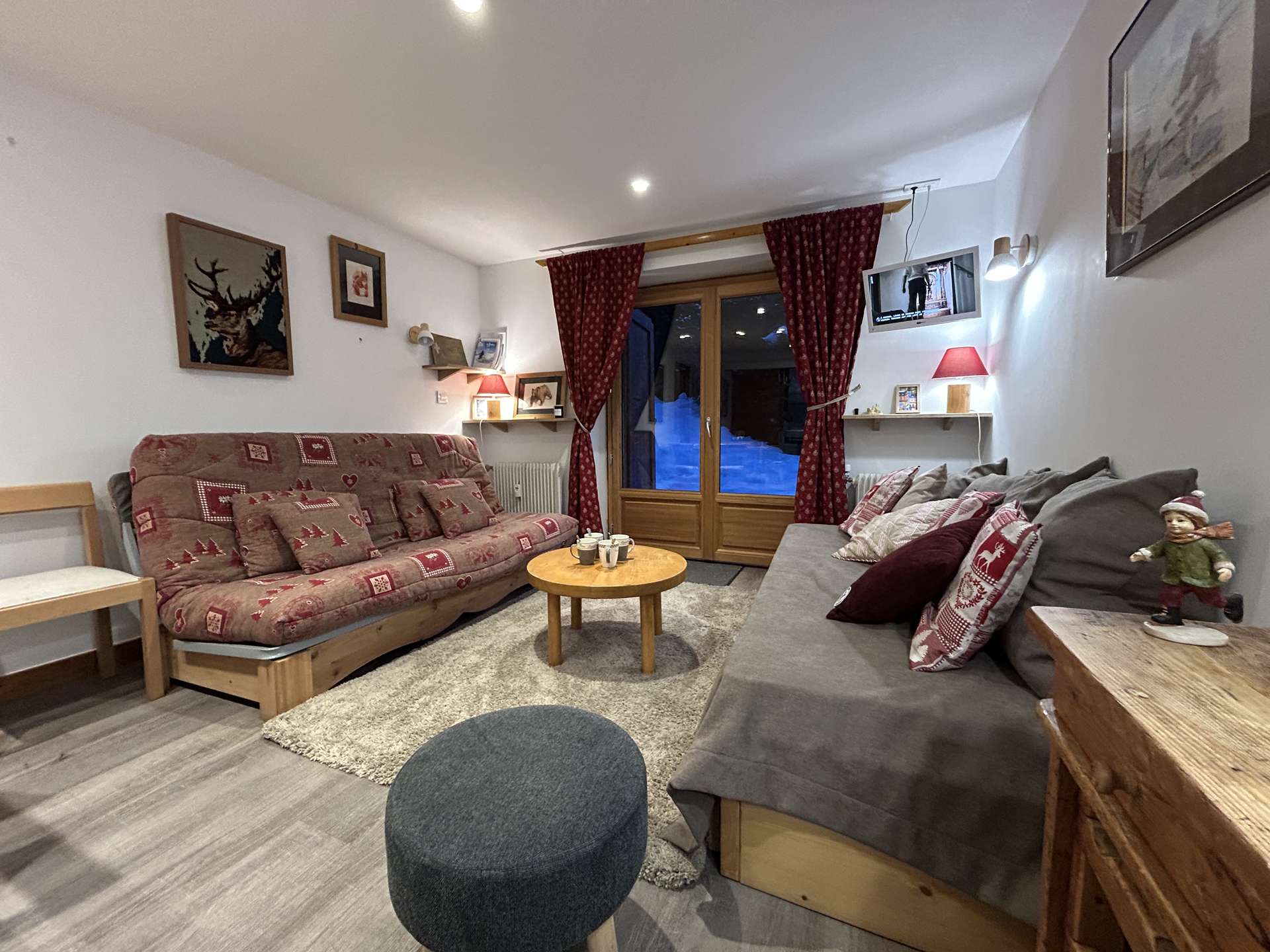 The advantages of this rental in the 3 valleys : a gravel terrace on the ground floor facing south and a ski locker. The fireplace is out off service.
