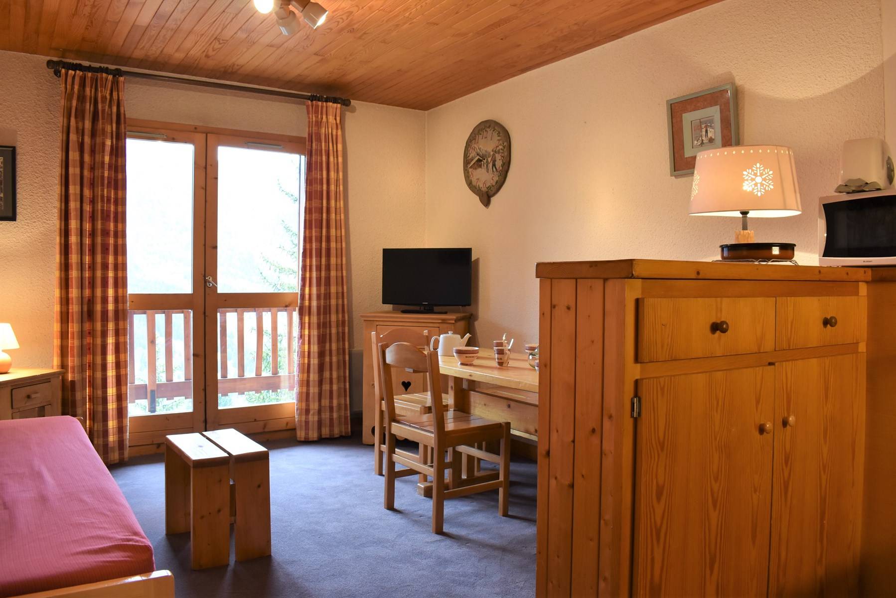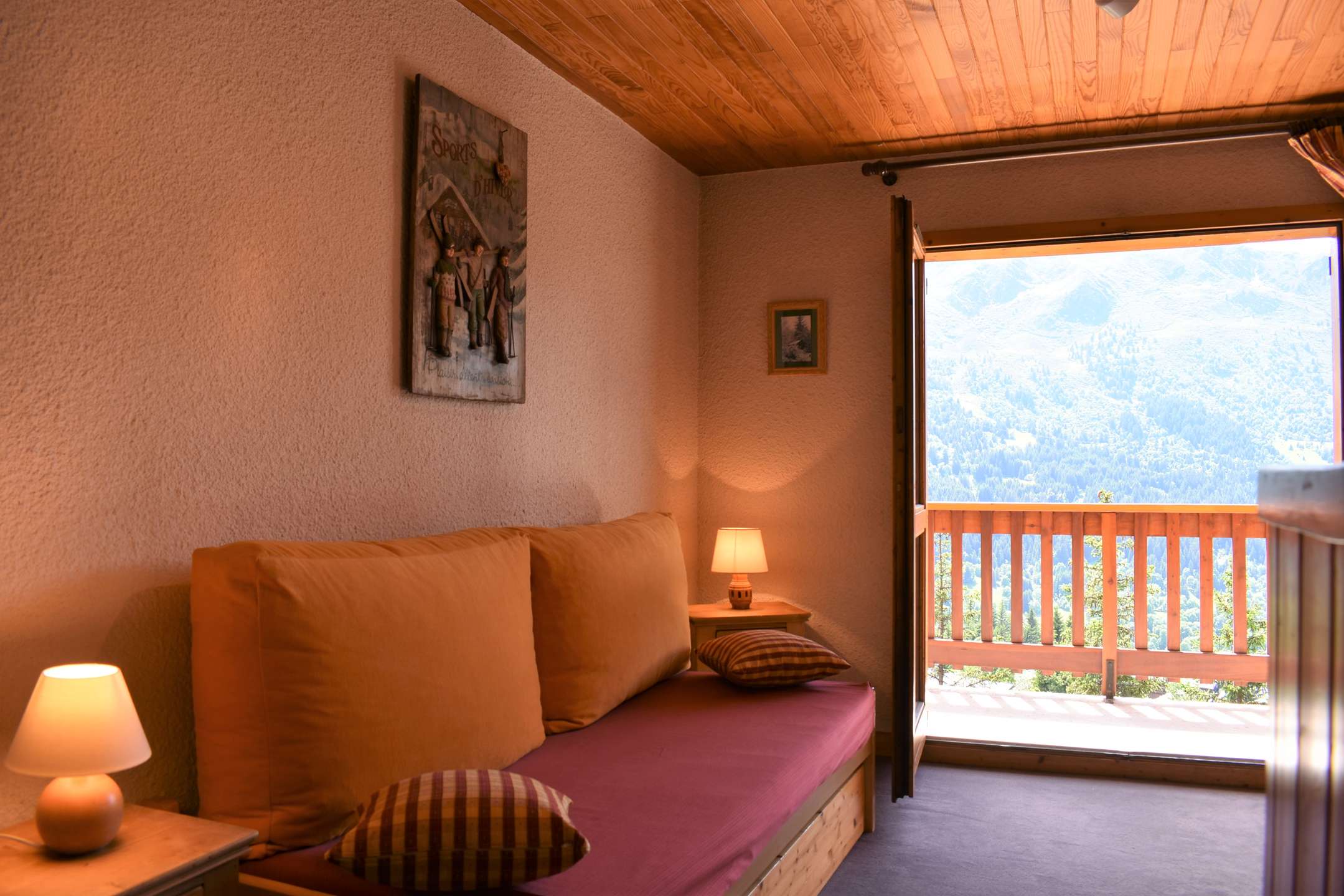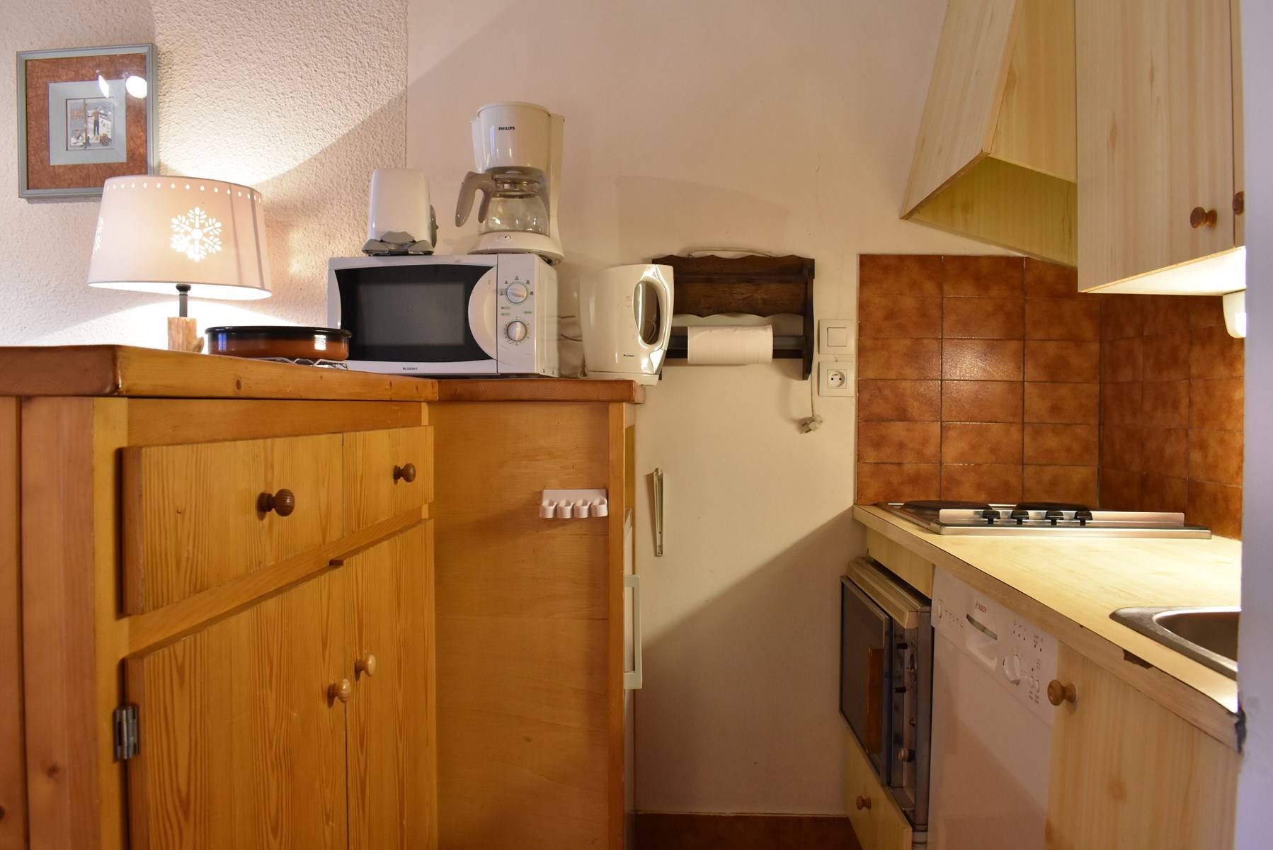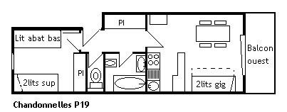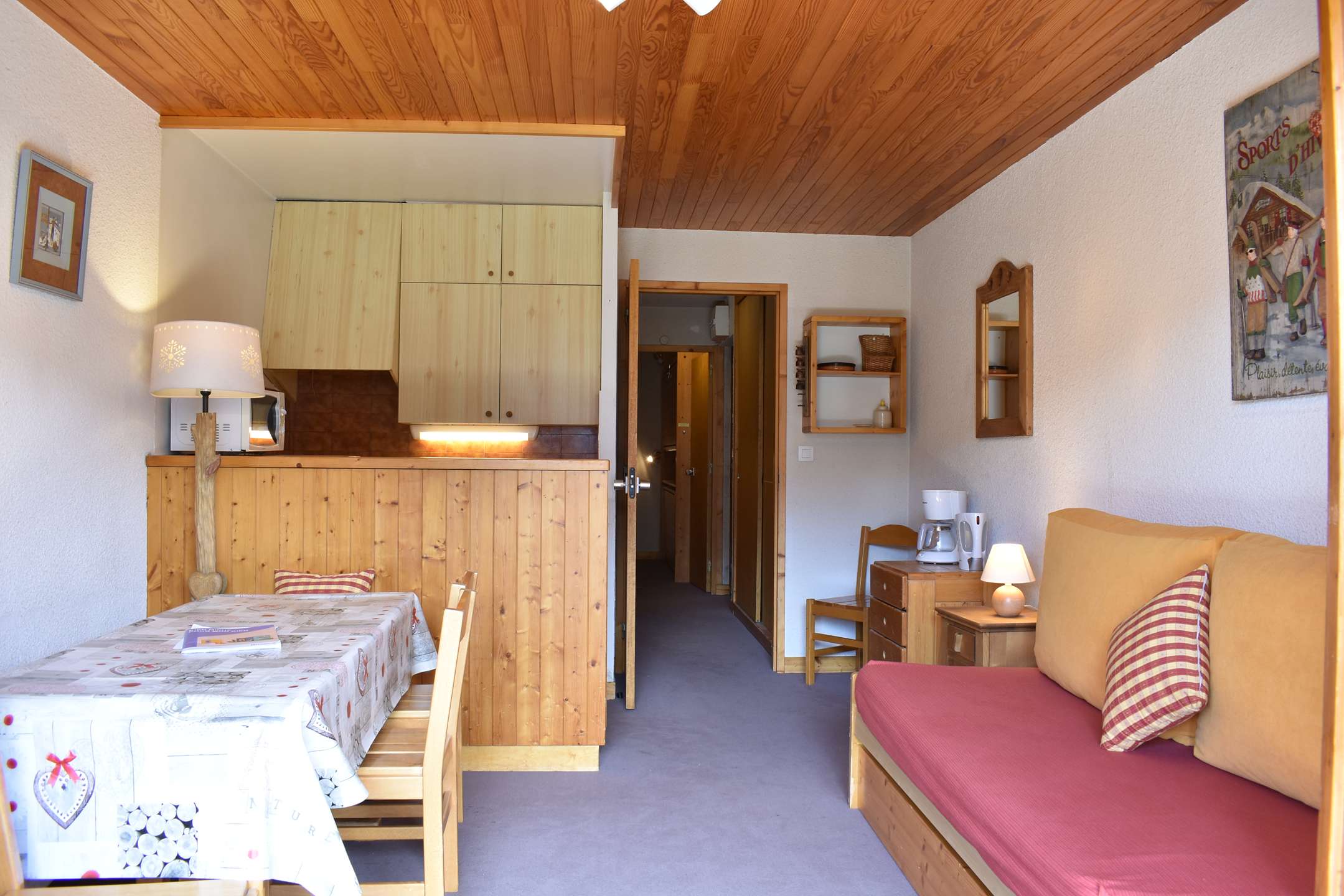 This apartment is on the third floor of the residence with lift. It includes an equipped kitchen open to the living room with a set of pull-out trundle beds, a television, a bedroom with 1 set of bunk beds and 1 low folding bed, a bathroom and a separate toilet. A ski locker is available at the entrance of the residence.
