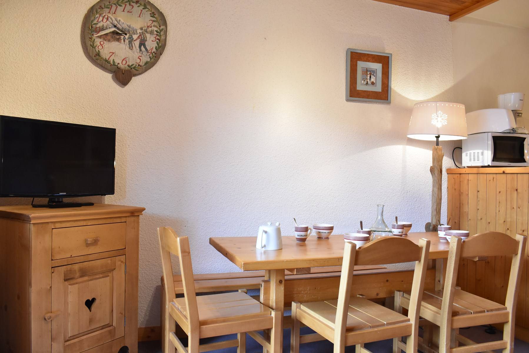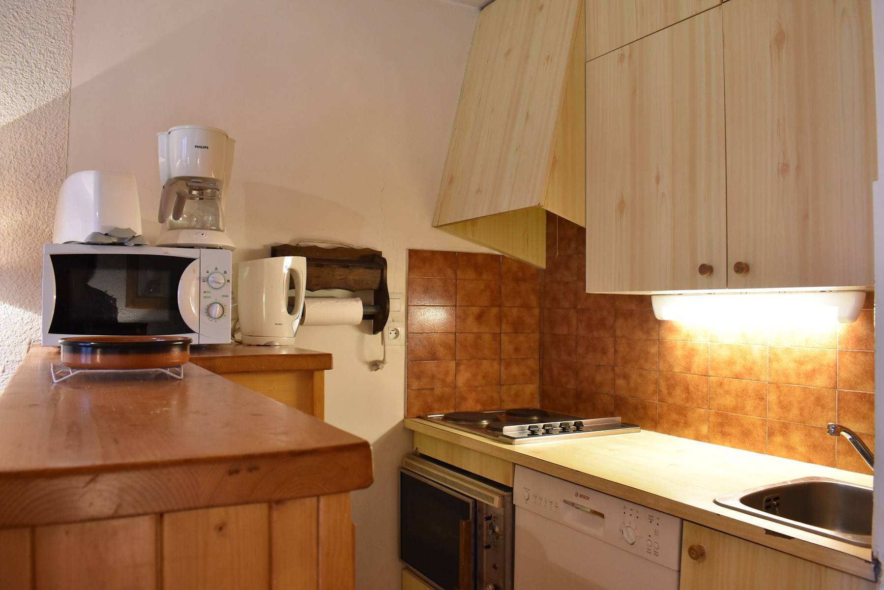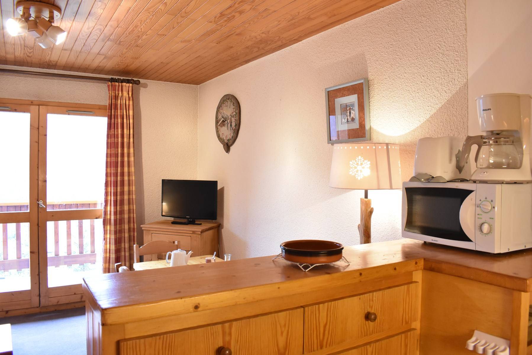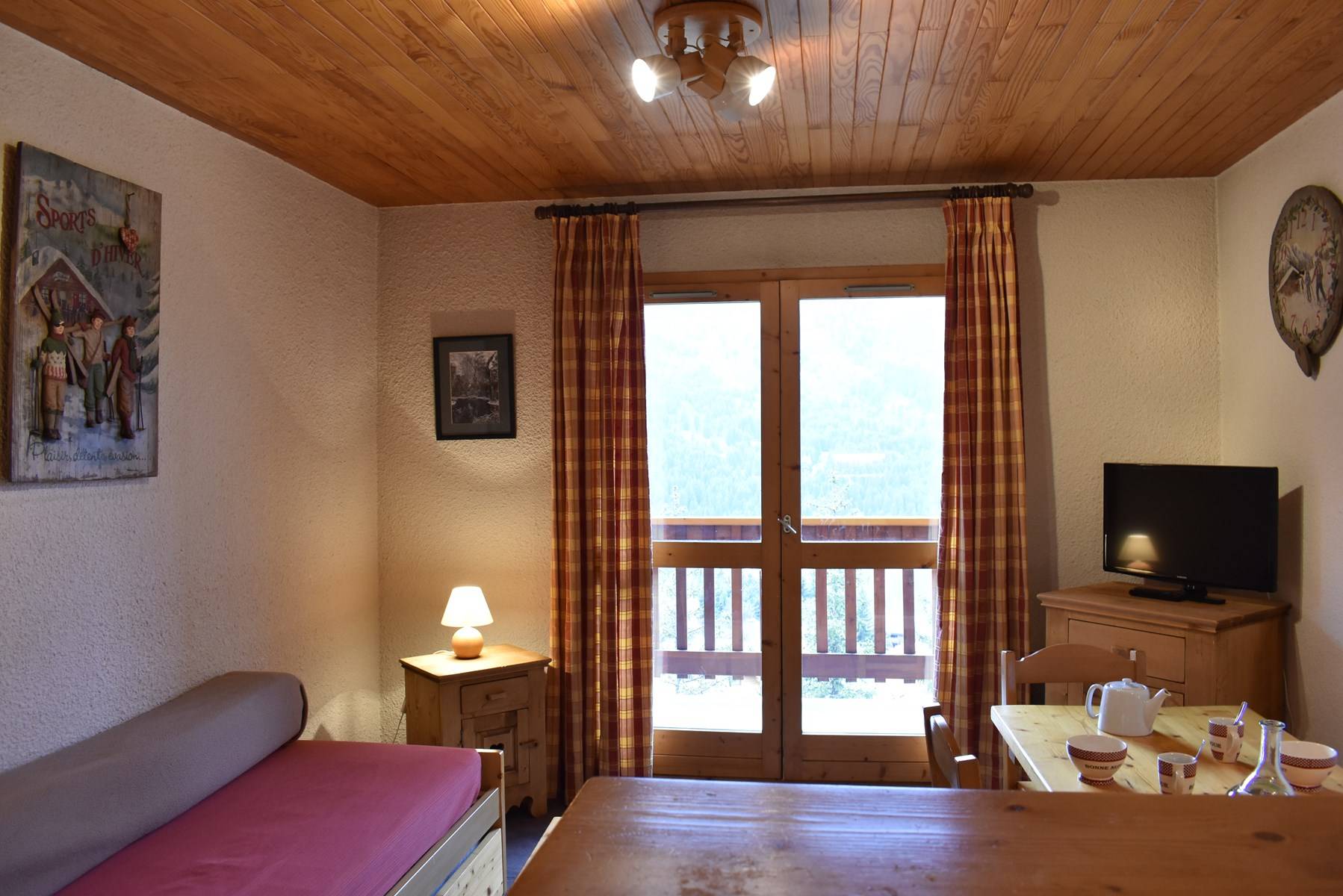 This apartment is on the third floor of the residence with lift. It includes an equipped kitchen open to the living room with a set of pull-out trundle beds, a television, a bedroom with 1 set of bunk beds and 1 low folding bed, a bathroom and a separate toilet. A ski locker is available at the entrance of the residence.