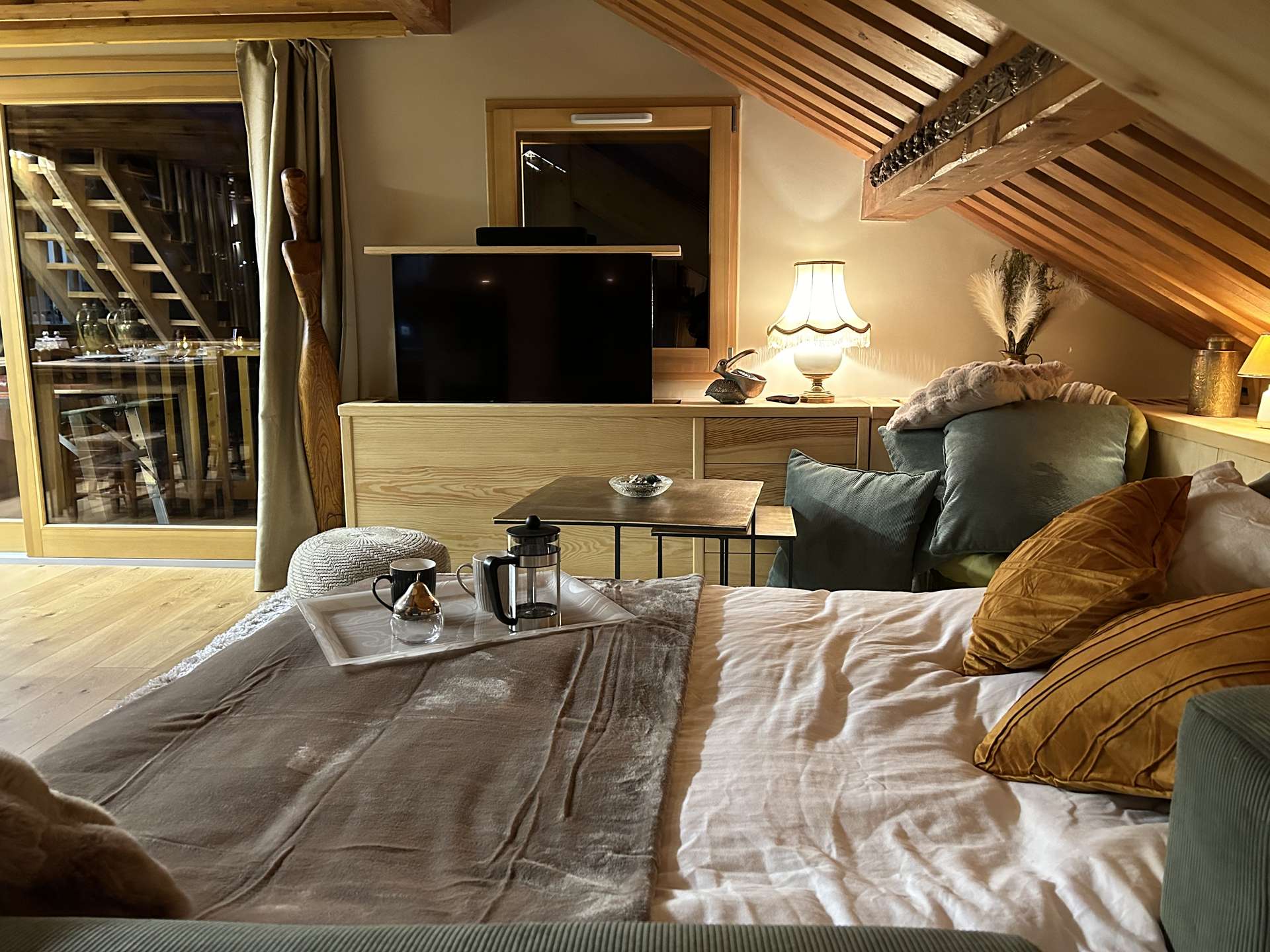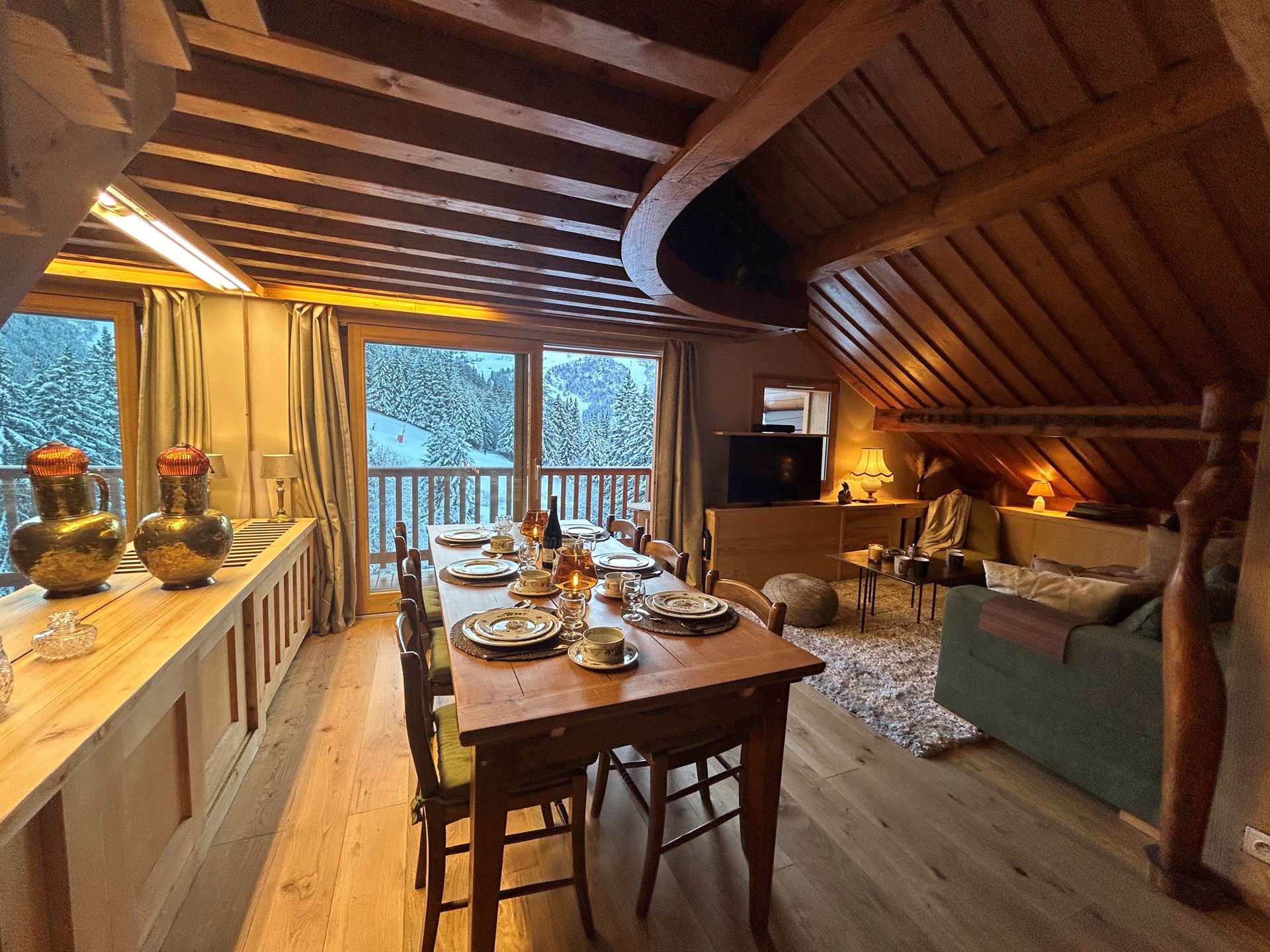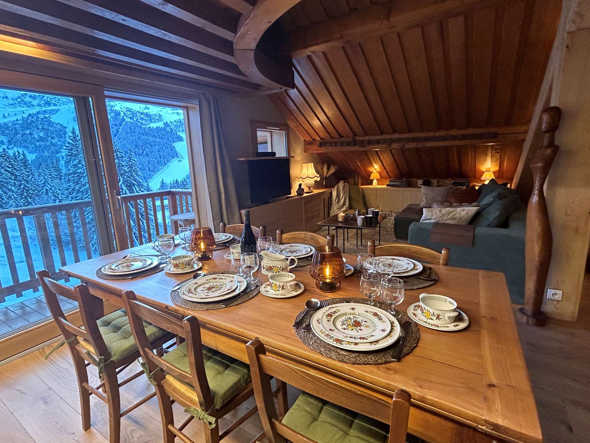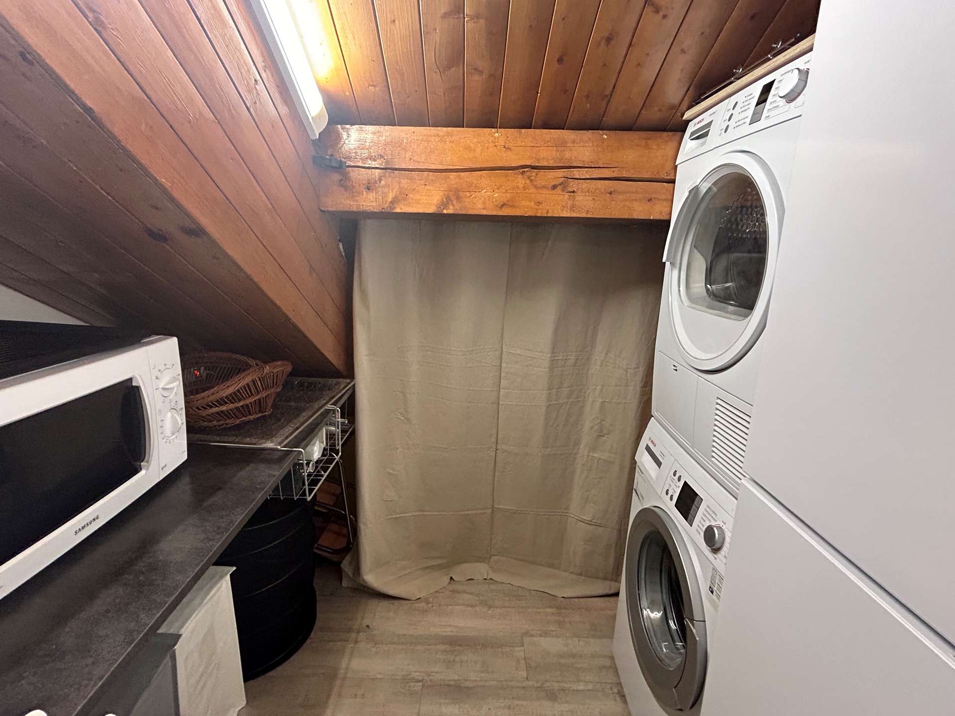The residence La Gélinotte offers you an ideal location for a mountain holiday: the slopes are at the foot of the building, with an individual ski locker per apartment. You are less than 100m from shops and restaurants, only 100m from the free shuttle stop, and 2 km from the center of the resort. This apartment, located on the 4th floor with elevator, offers a space that combines quality, comfort and originality. It has a fully equipped kitchen, a spacious and tastefully decorated living room, last generation television, as well as a dining area overlooking a balcony facing south, offering you a panoramic view, not overlooked. It can accommodate up to 7 people. You have a mezzanine with a single bed (90x200), a bedroom with a double bed (180x200) with private balcony, a room with 2 single beds (90x200) with its en suite bathroom equipped with a tub and slippers and an extra sofa bed (140x200) in the living room. In the entrance you will discover an independent bathroom with WC and a separate WC. Wifi is included.