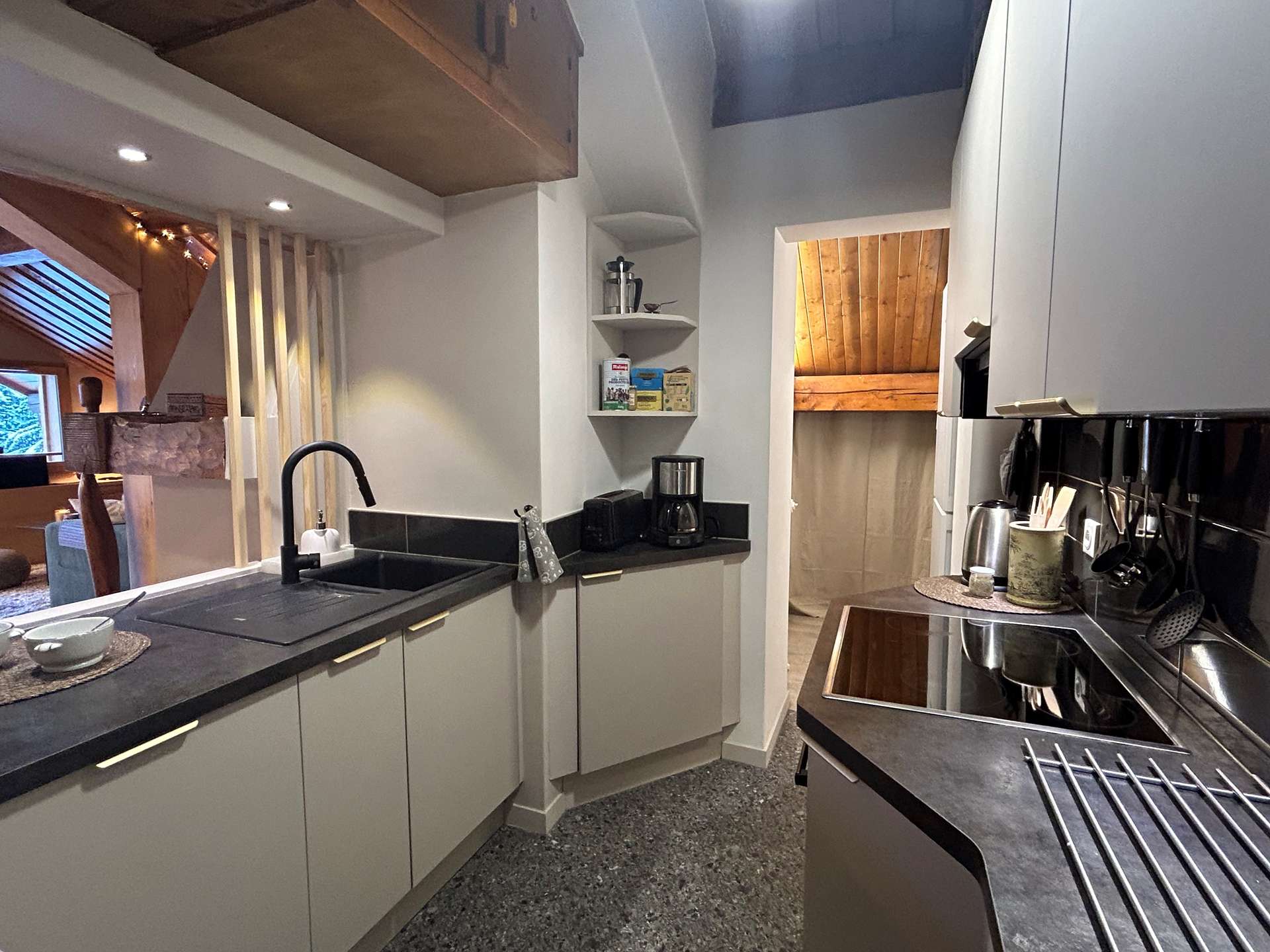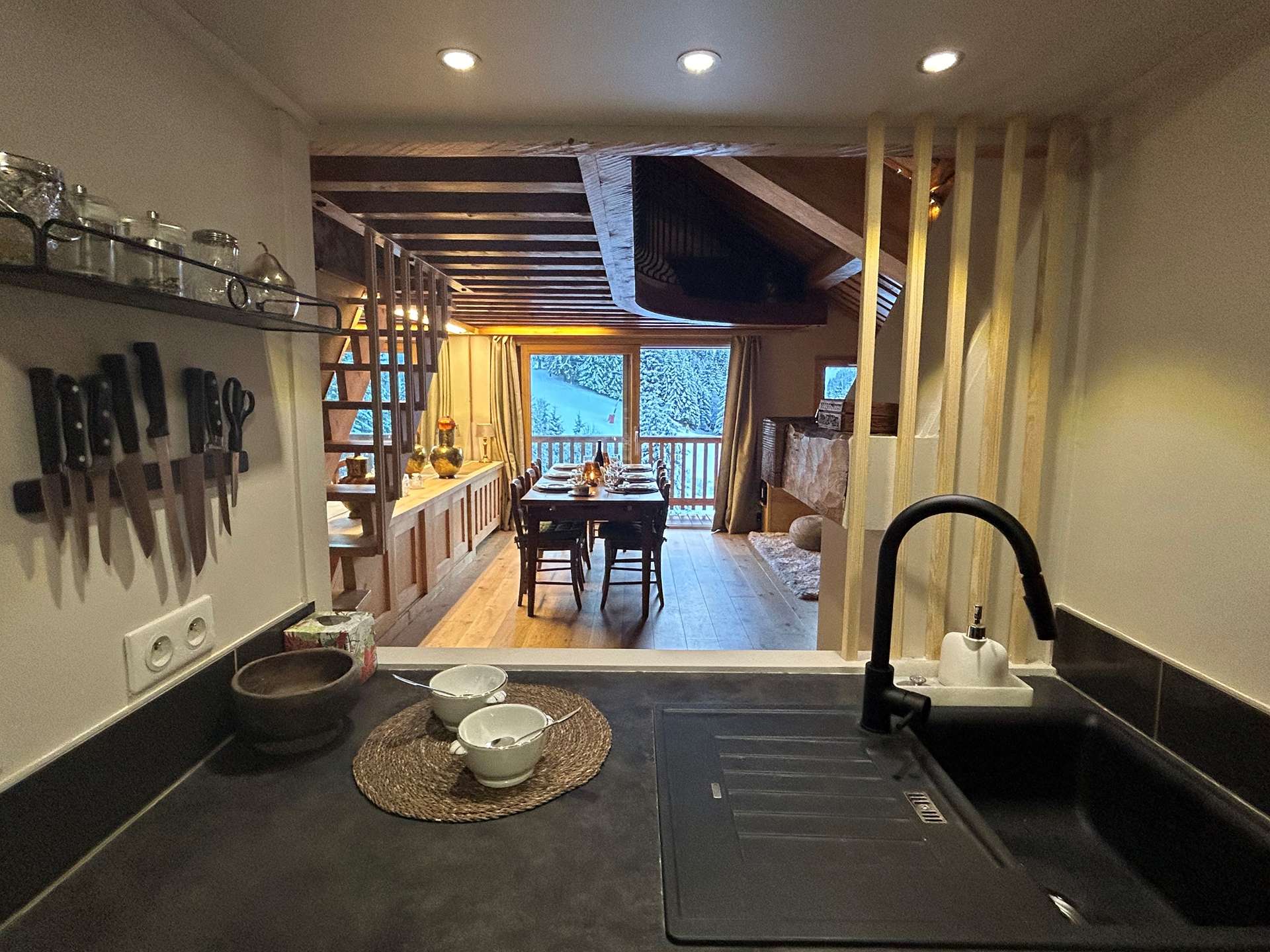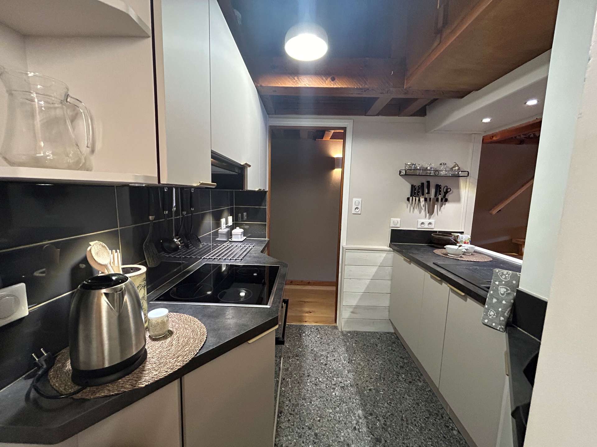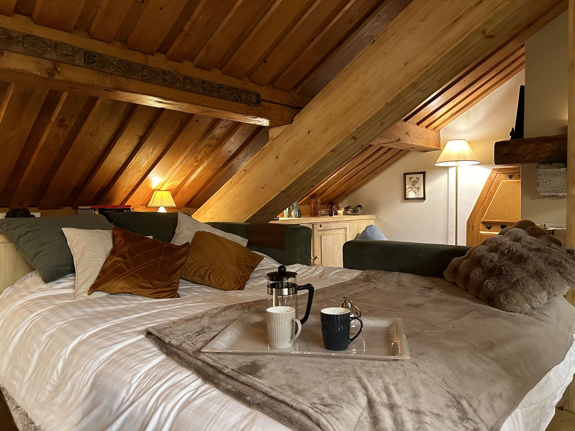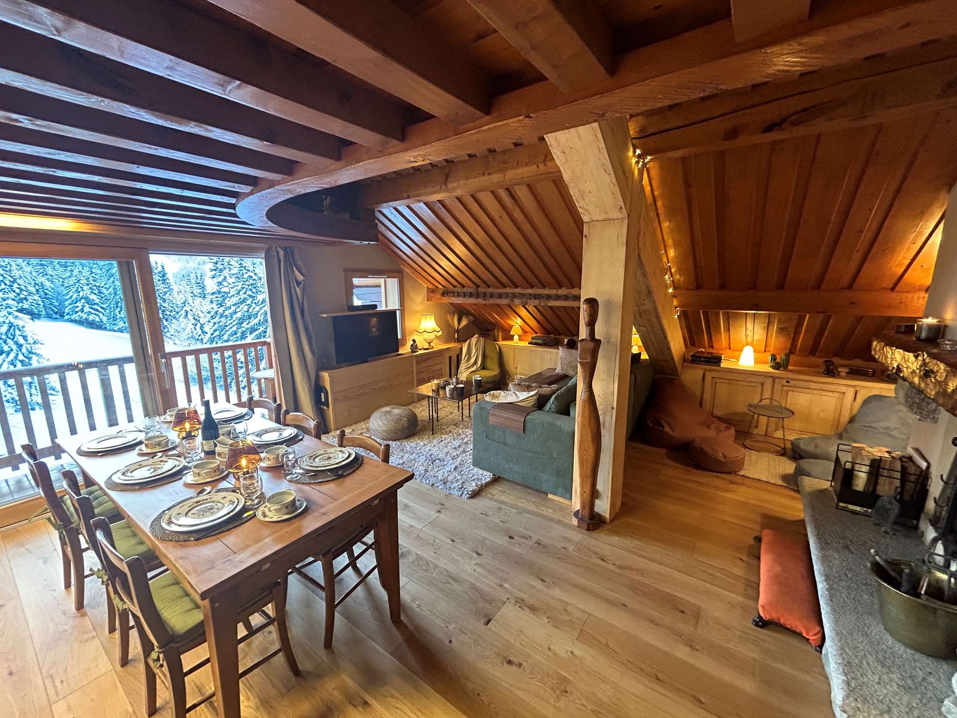 The residence La Gélinotte offers you an ideal location for a mountain holiday: the slopes are at the foot of the building, with an individual ski locker per apartment. You are less than 100m from shops and restaurants, only 100m from the free shuttle stop, and 2 km from the center of the resort. This apartment, located on the 4th floor with elevator, offers a space that combines quality, comfort and originality. It has a fully equipped kitchen, a spacious and tastefully decorated living room, last generation television, as well as a dining area overlooking a balcony facing south, offering you a panoramic view, not overlooked. It can accommodate up to 7 people. You have a mezzanine with a single bed (90x200), a bedroom with a double bed (180x200) with private balcony, a room with 2 single beds (90x200) with its en suite bathroom equipped with a tub and slippers and an extra sofa bed (140x200) in the living room. In the entrance you will discover an independent bathroom with WC and a separate WC. Wifi is included.