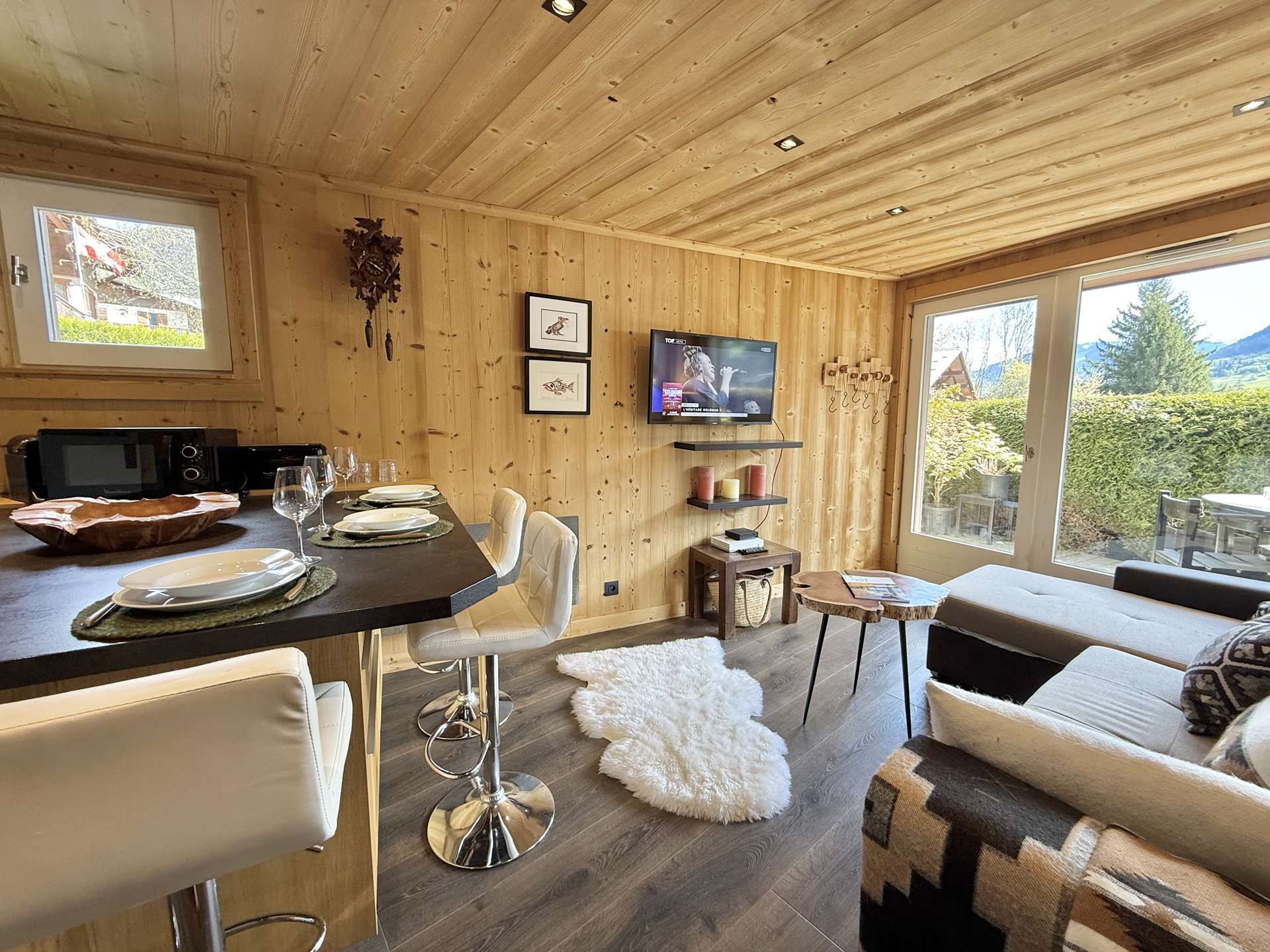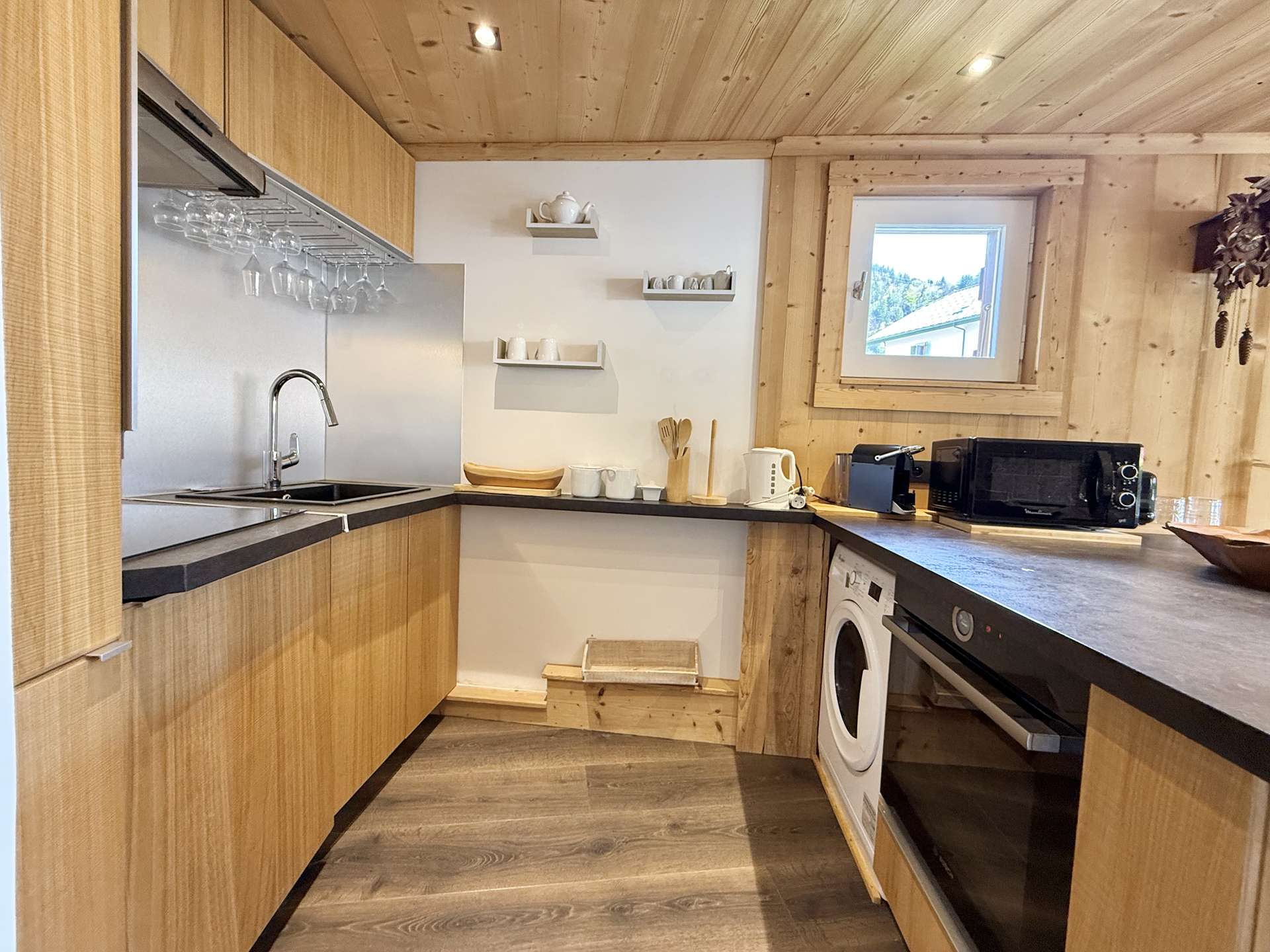 The residence is located halfway between the village of Praz Sur Arly (approx. 300 metres on foot) and the ski slopes (approx. 600 metres away). The new summer swimming lake is just 450 metres from this holiday rental.