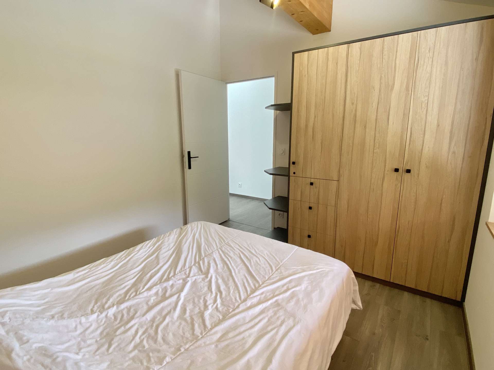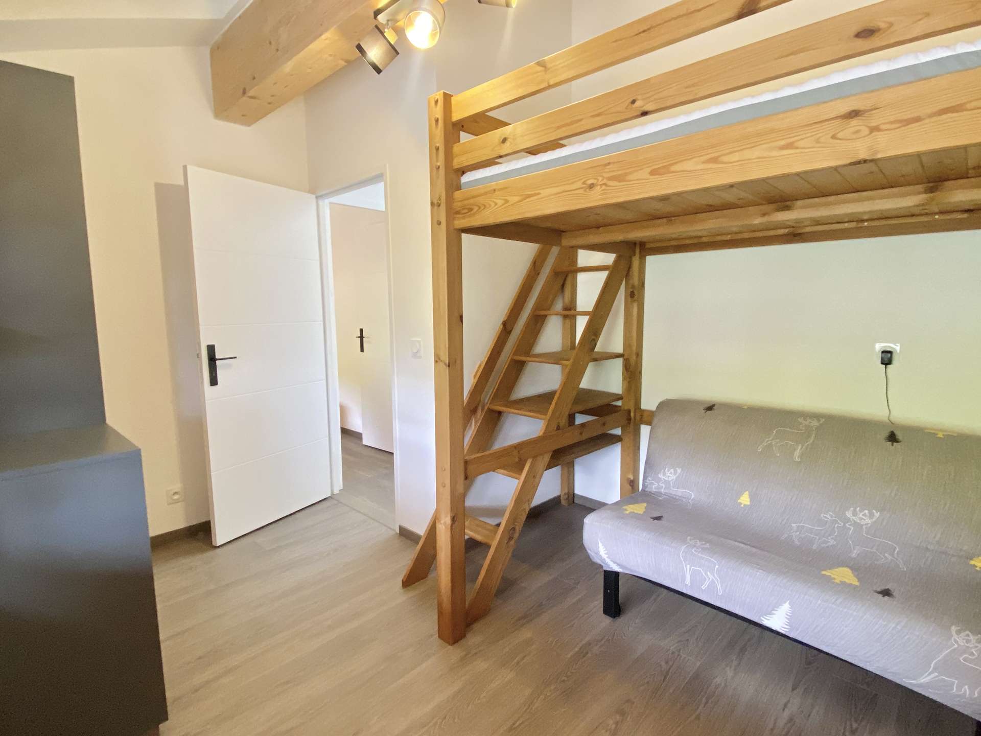 Located on the second floor of a luxury residence with lift, this flat comprises a living/dining room, a fully equipped open-plan kitchen, a first bedroom with a double bed, a second bedroom with a sofa bed and a bunk bed, a bathroom with shower and a separate toilet.