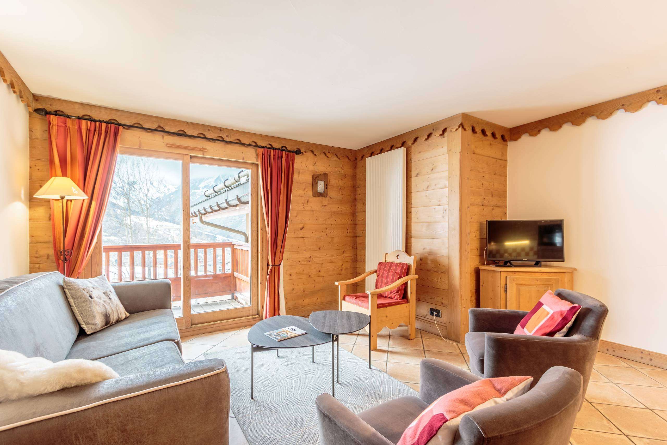 FANTASTIC! Residence-chalet with SWIMMING POOL and SPA! SKI IN SKI OUT! A high level of comfort in our fully equipped 70 sqm apartment for 6 guests - 4* - with an outstanding PANORAMIC VIEW of the village, the summits and the Belleville valley. South West facing. Exceptional exposure and amazing view on the slpoes, village and the mountains. Included services: sheets and towels, final cleaning, a parking space. WIFI + free access to wellness area with heated indoor swimming pool, sauna, hammam, jacuzzi, fitness room and treatments (on reservation and at an additional cost).
