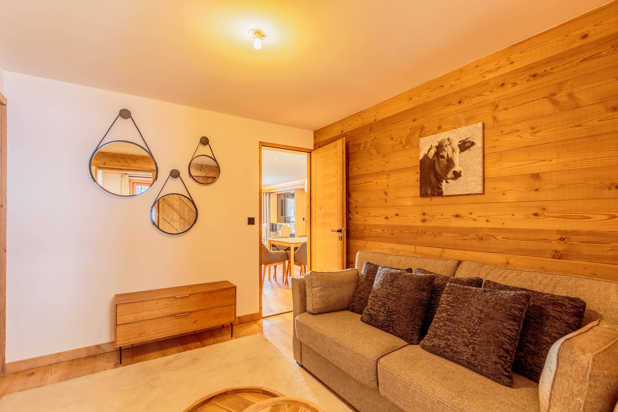 - Living room with television and balcony facing SOUTH WEST, view of the slopes and the village, on the 2nd FLOOR
