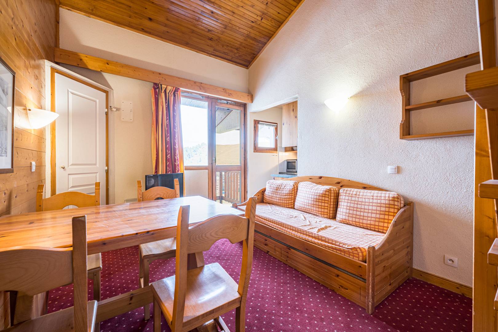 PLAGNE VILLAGES – Résidence Les Hameaux 1. Appartement 2 pièces (chambre mezzanine) avec balcon exposé nord. La résidence se trouve en centre station, idéalement située à proximité immédiate des pistes, de l'ESF, du télébus et des commerces.