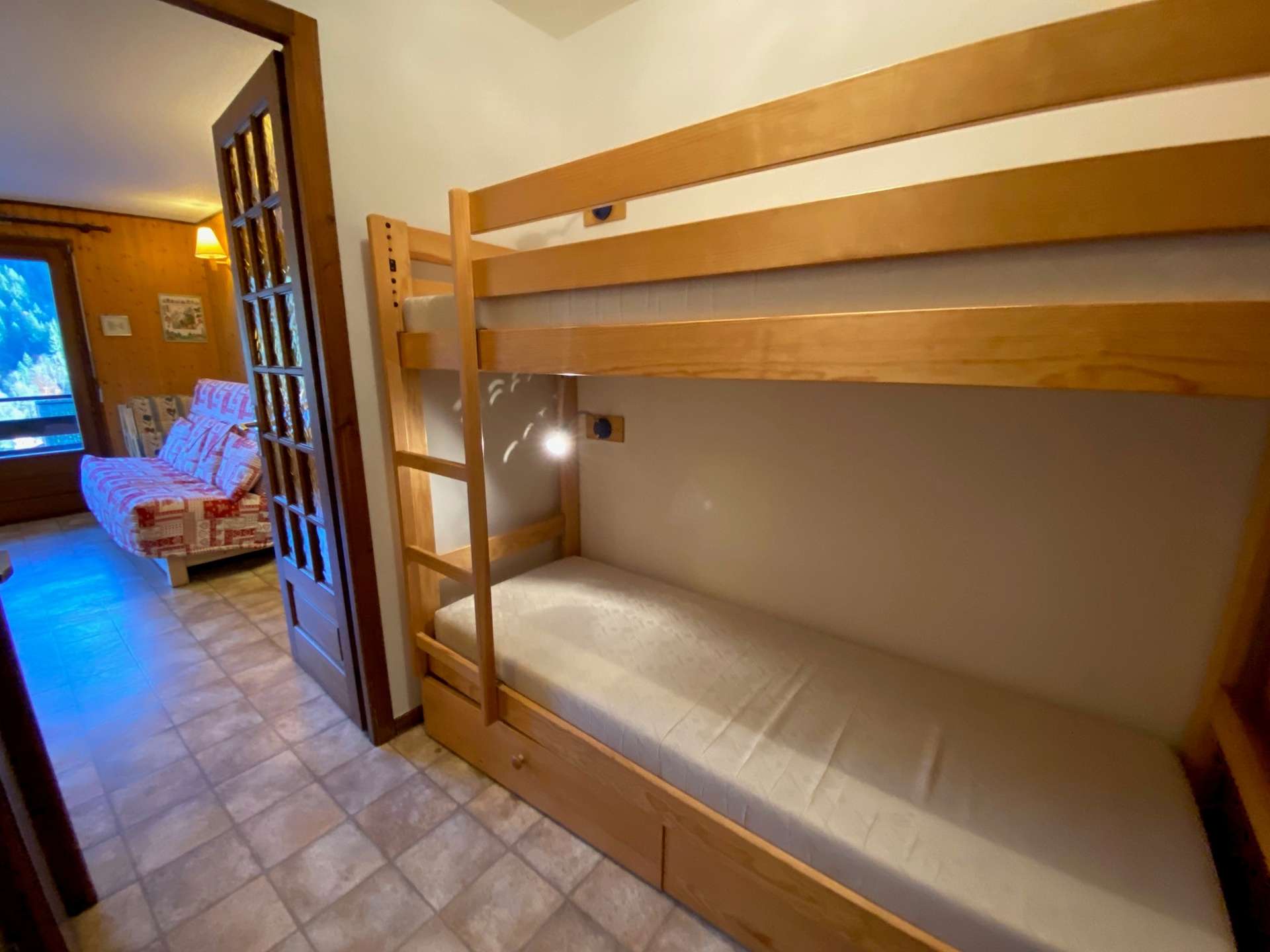 Cet appartement de vacances au 1er étage comprend un séjour avec canapé convertible 2 personnes et télévision, un coin cuisine équipé d'un lave-vaisselle, une alcôve avec 2 lits superposés, une salle de bains et un WC indépendant. Balcon Sud, casier à ski, parking collectif privé de la résidence.
