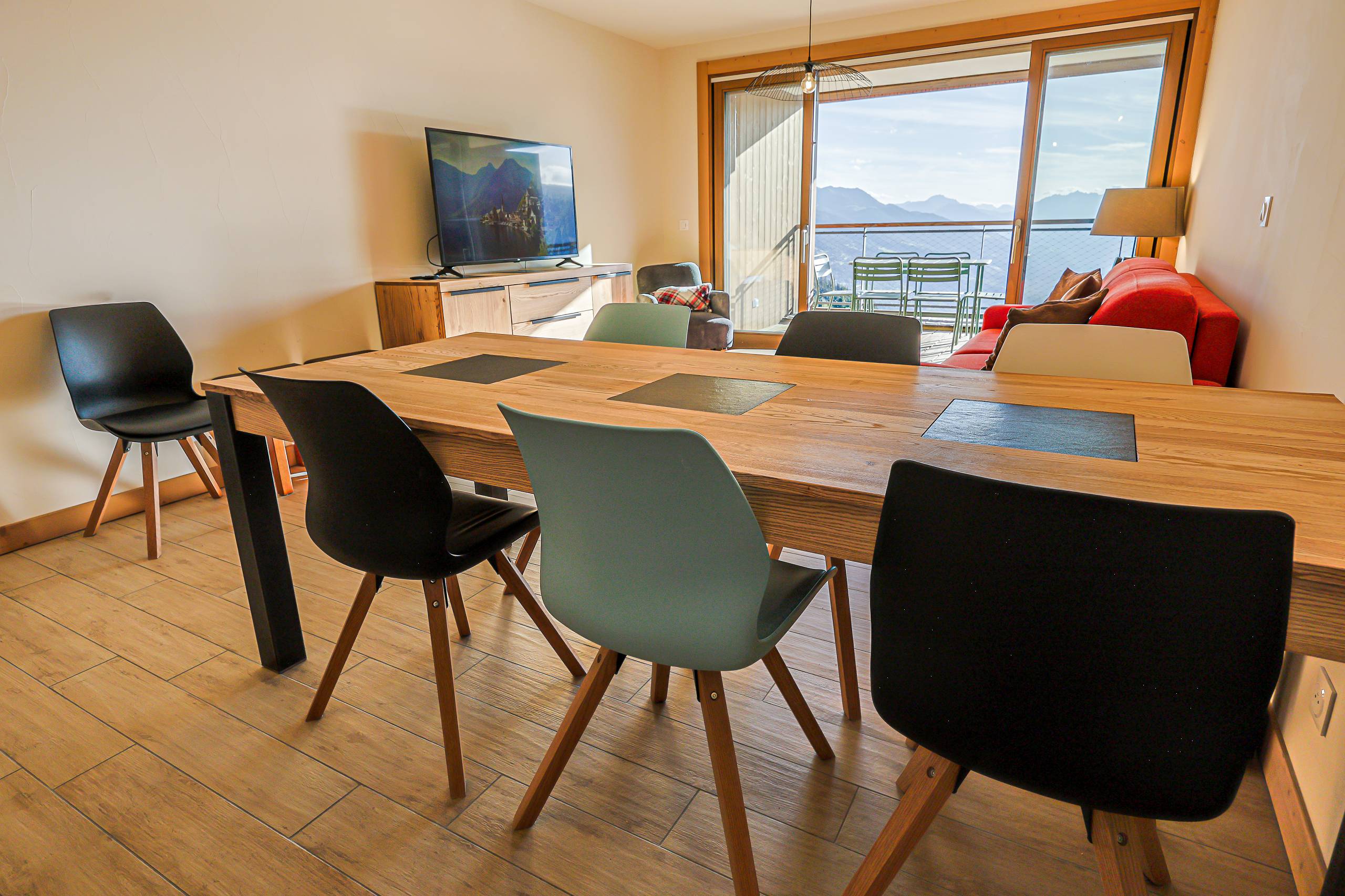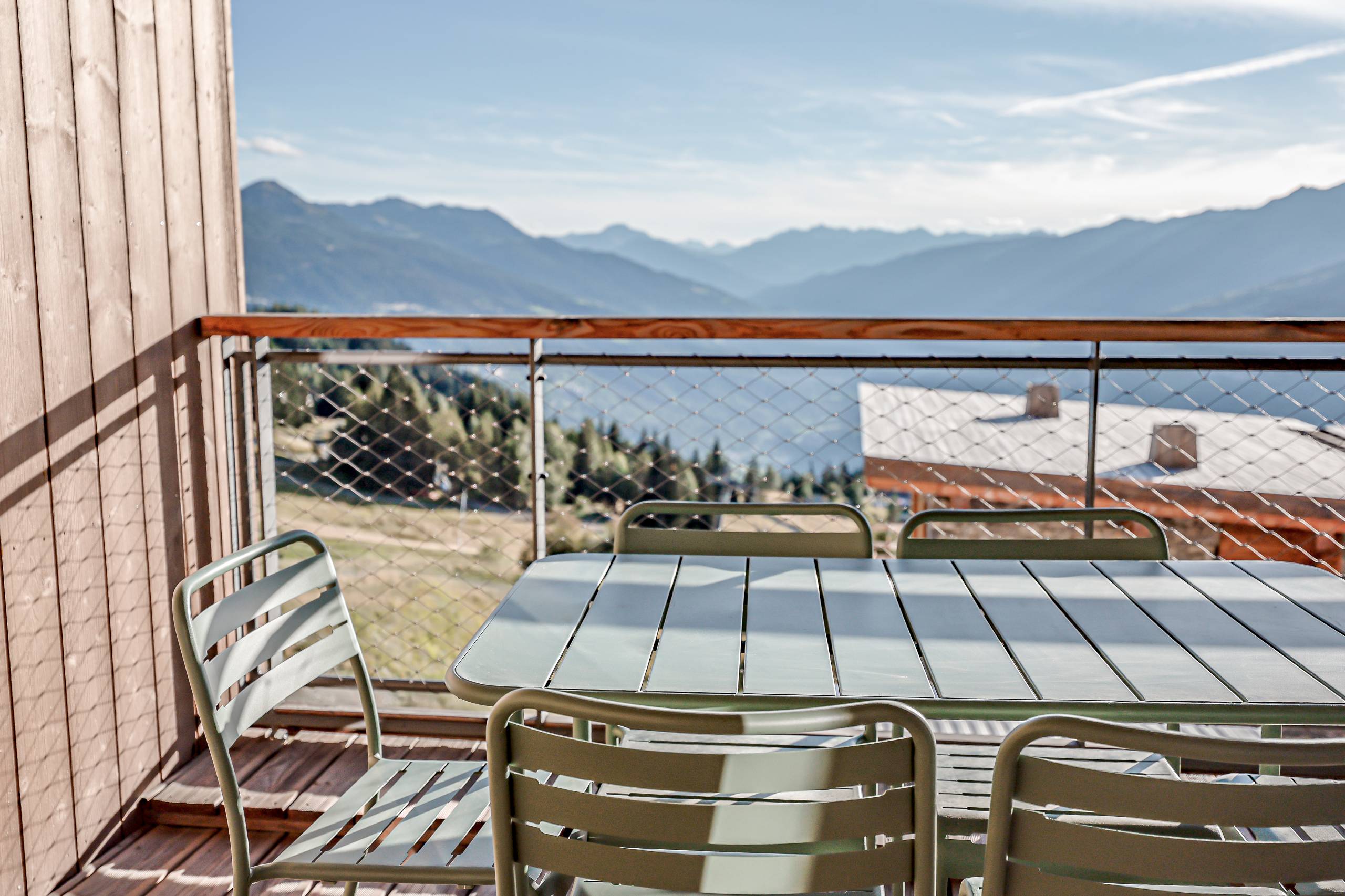 Avec son orientation Sud-Ouest, certains appartements du RIDGE bénéficient d'une vue panoramique sur les montagnes et la vallée de Haute-Tarentaise : Ensoleillement maximum et couchers de soleil flamboyants garantis.