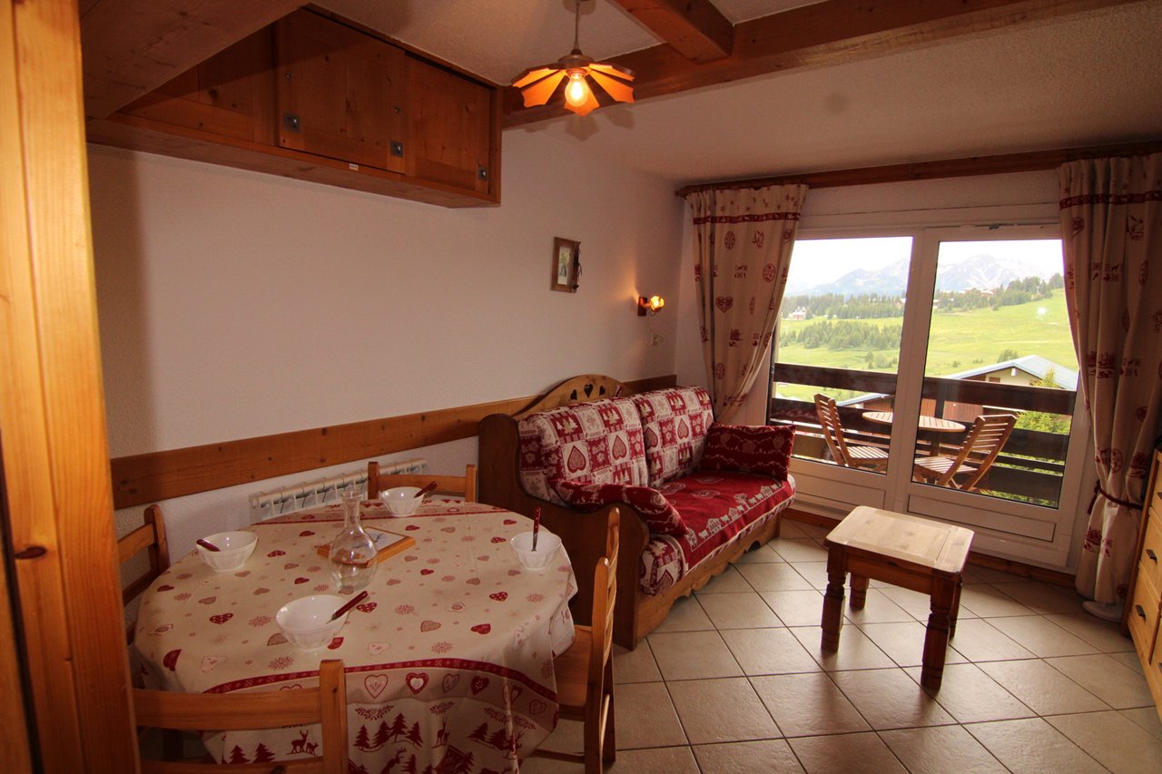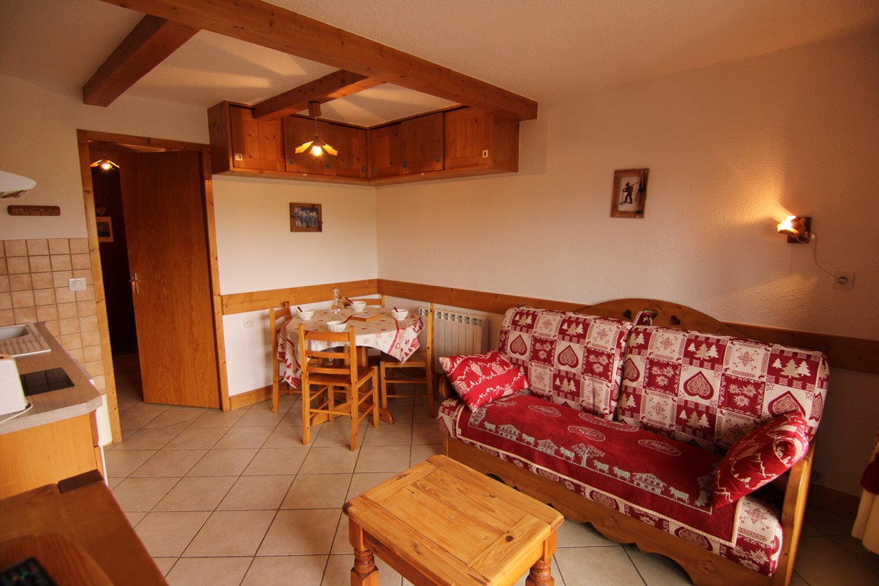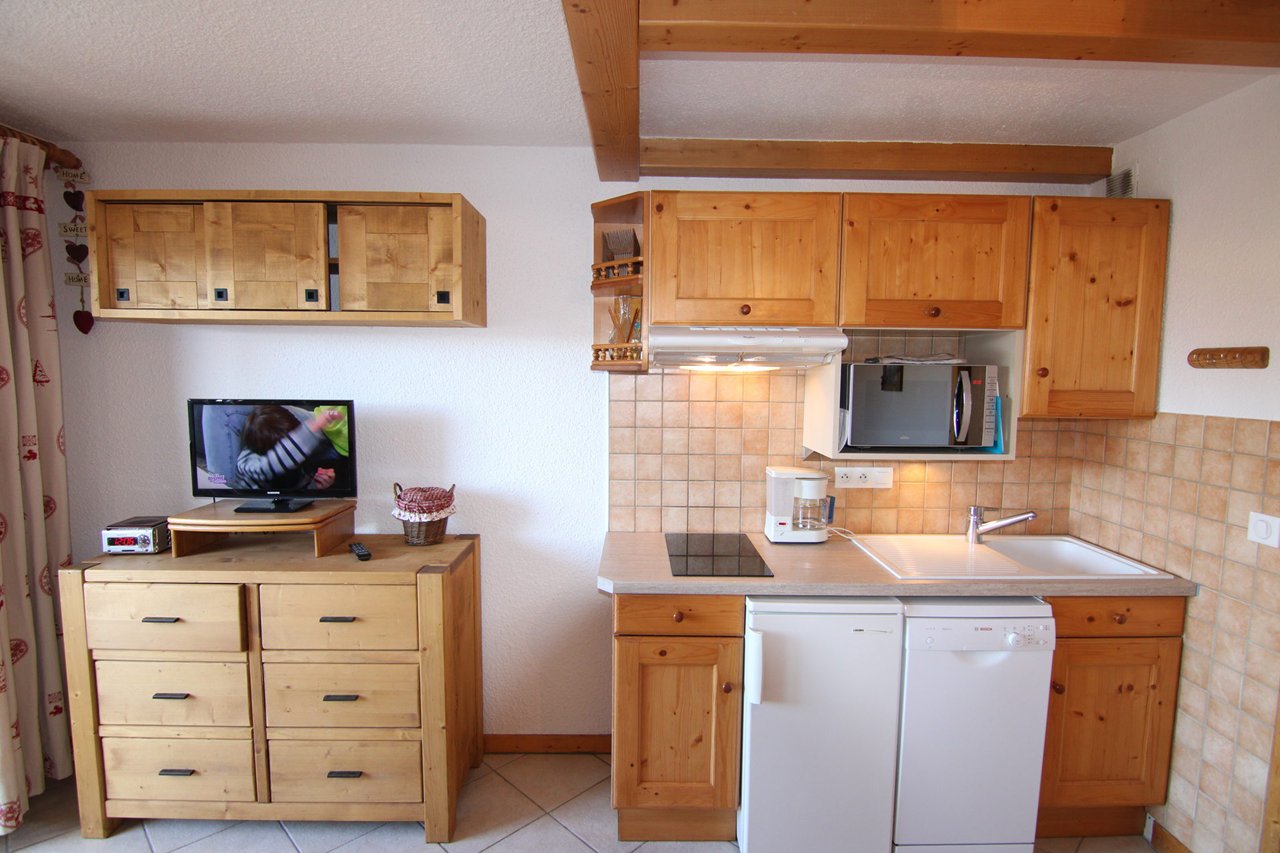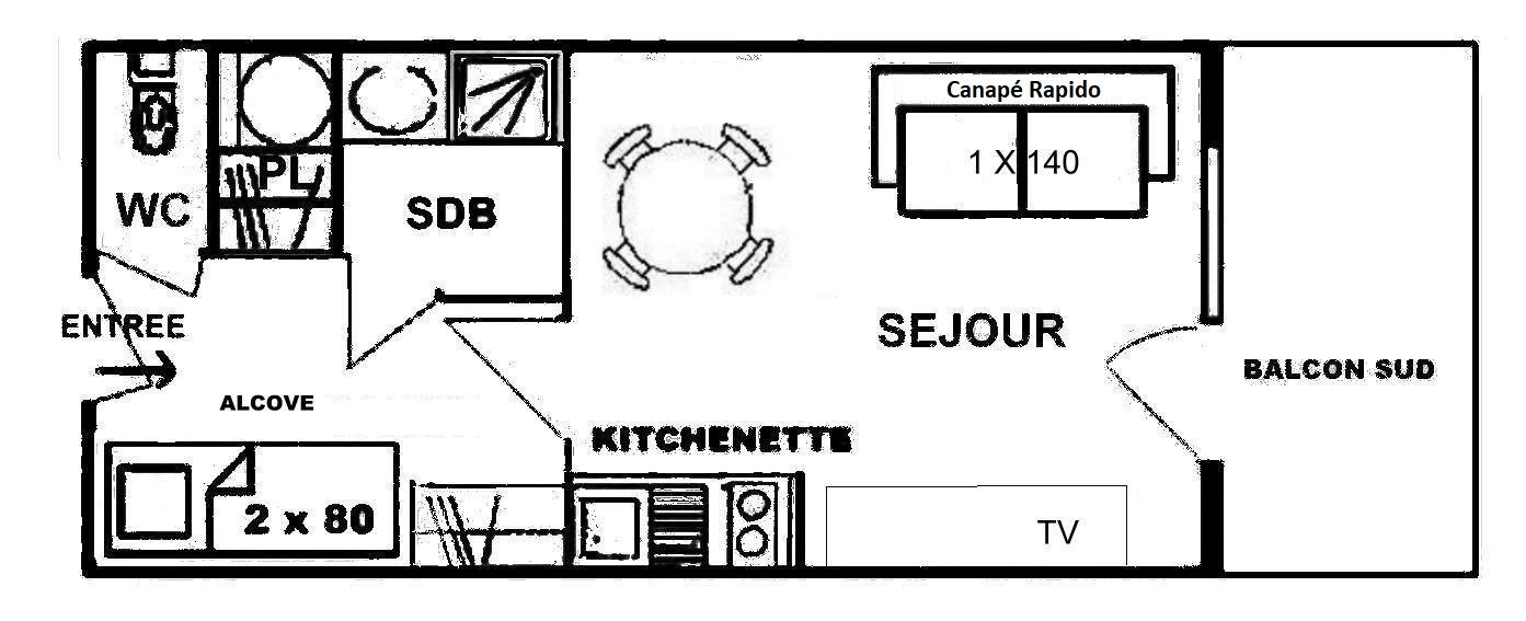 L’appartement se compose d'un séjour avec un canapé rapido 140, d'une kitchenette équipée ouverte, d'une alcôve avec lits superposés 2x80 (NB : le lit supérieur d'un lit superposé est interdit aux - 6 ans), d'une salle d'eau et WC séparé.