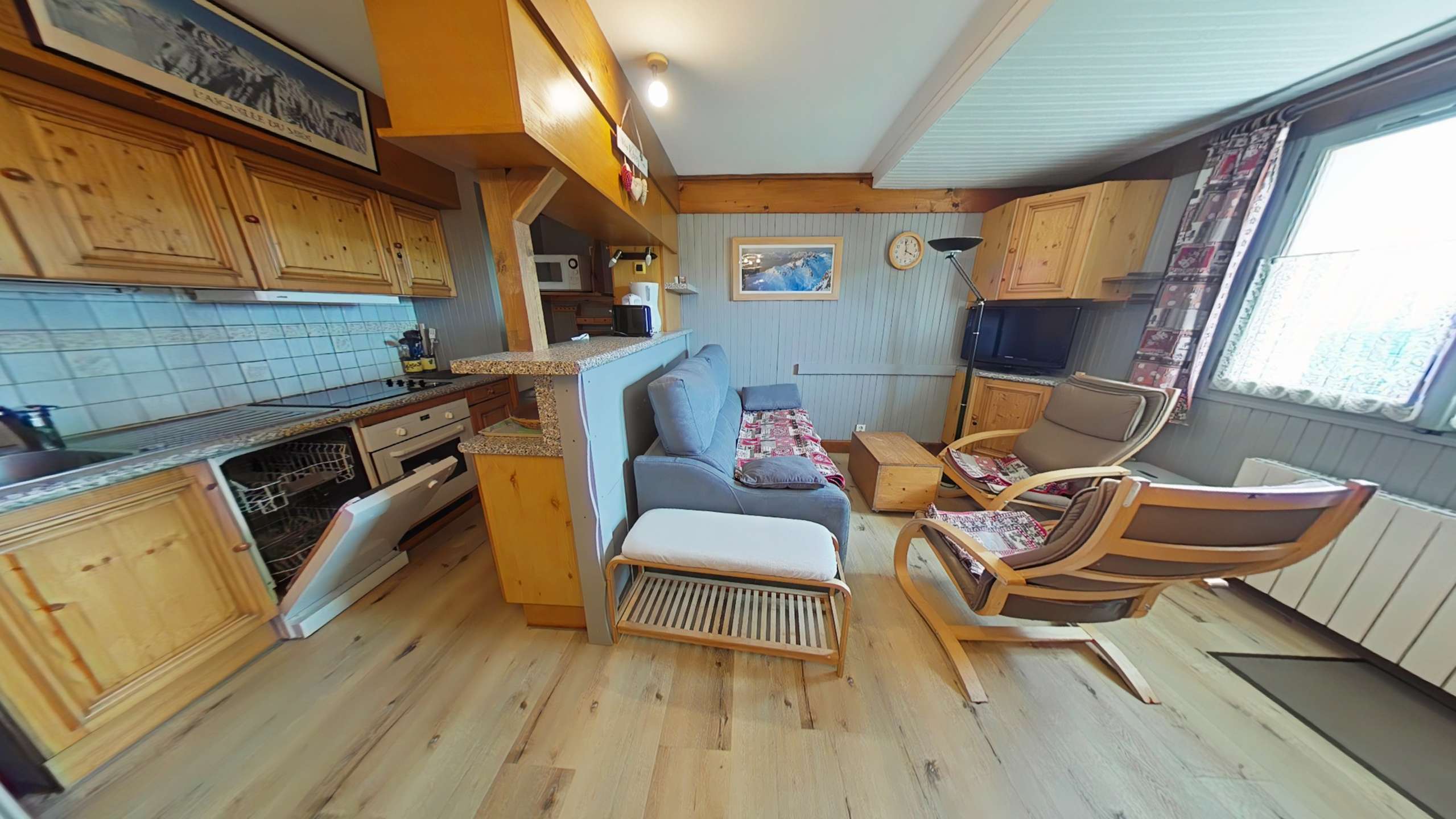 L'appartement se compose d'un séjour avec un canapé RAPIDO 140 et une kitchenette équipée ouverte, d'une chambre borgne avec un lit 140, d'une alcôve avec lits superposés 2x90 (NB : le lit supérieur d'un lit superposé est interdit aux - 6 ans), d'une salle d'eau et WC séparé.