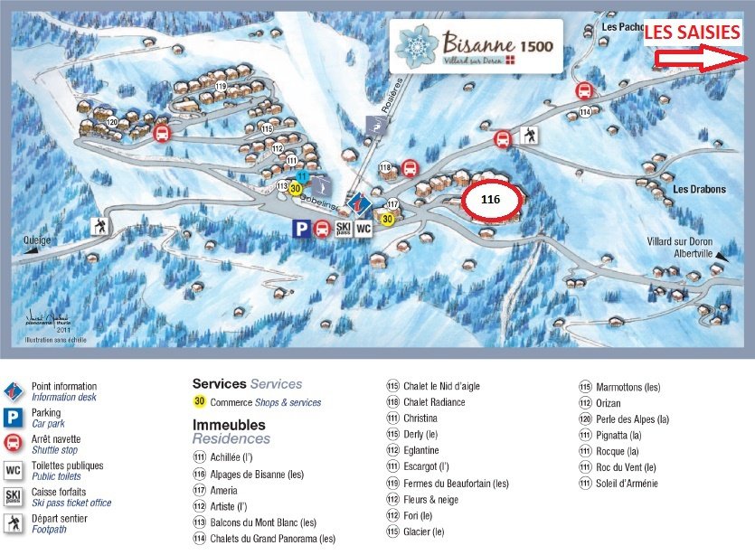 Belle résidence de standing, à 5.6 Km du centre des saisies, avec piscine intérieure chauffée (ouverte en pleine saison d'hiver et d'été, située dans le bâtiment J).