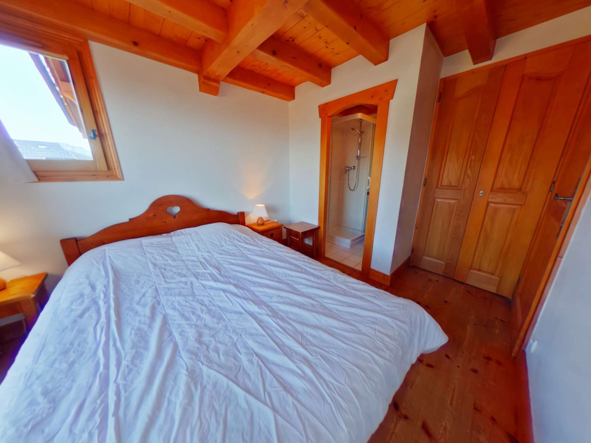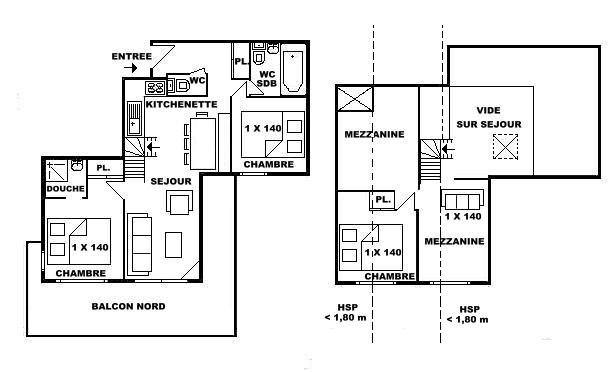 L'appartement se compose d'un séjour avec cuisine équipée ouverte, d'une suite parentale avec un lit 140 (salle d'eau attenante), d'une chambre avec un lit 140 , d'une salle de bains avec WC non séparé et un WC indépendant à l'étage d'une chambre avec un lit 140 et d'une mezzanine avec un canapé clic clac 140.