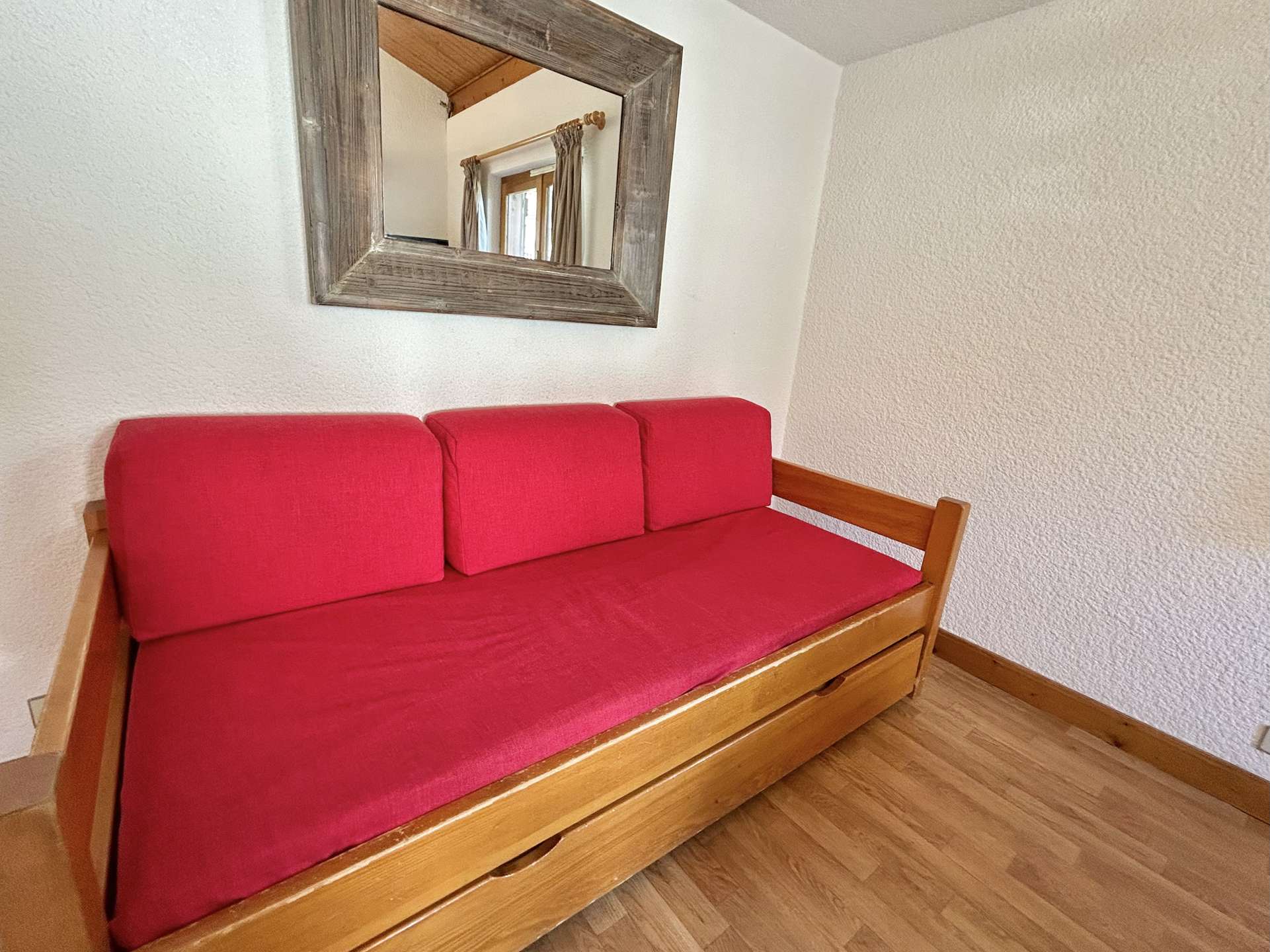 Ce logement de 35 m², situé au 1?? étage d’une résidence dans un secteur calme, comprend un hall d'entrée, une salle de bains avec WC, une chambre avec deux lits jumeaux (90 x 190), des placards et un lit parapluie, une cuisine indépendante équipée, ainsi qu’un salon/séjour avec box internet et accès à un balcon exposé sud-est. Une mezzanine ouverte sur le séjour offre un couchage supplémentaire avec un lit une place et un lit tiroir (90 x 190).
