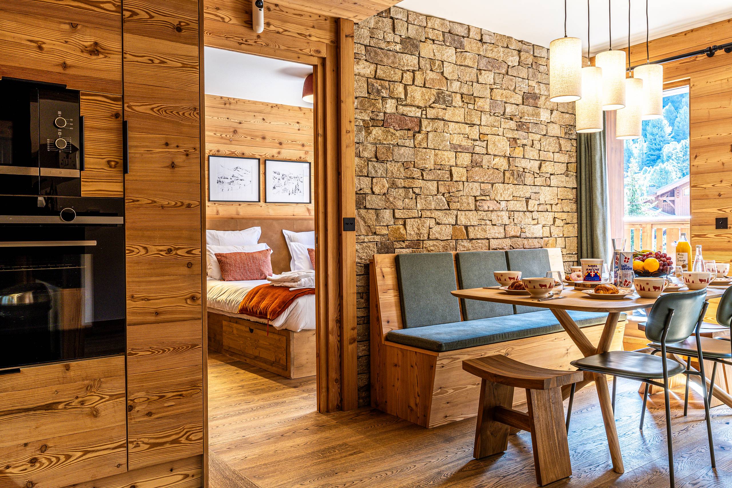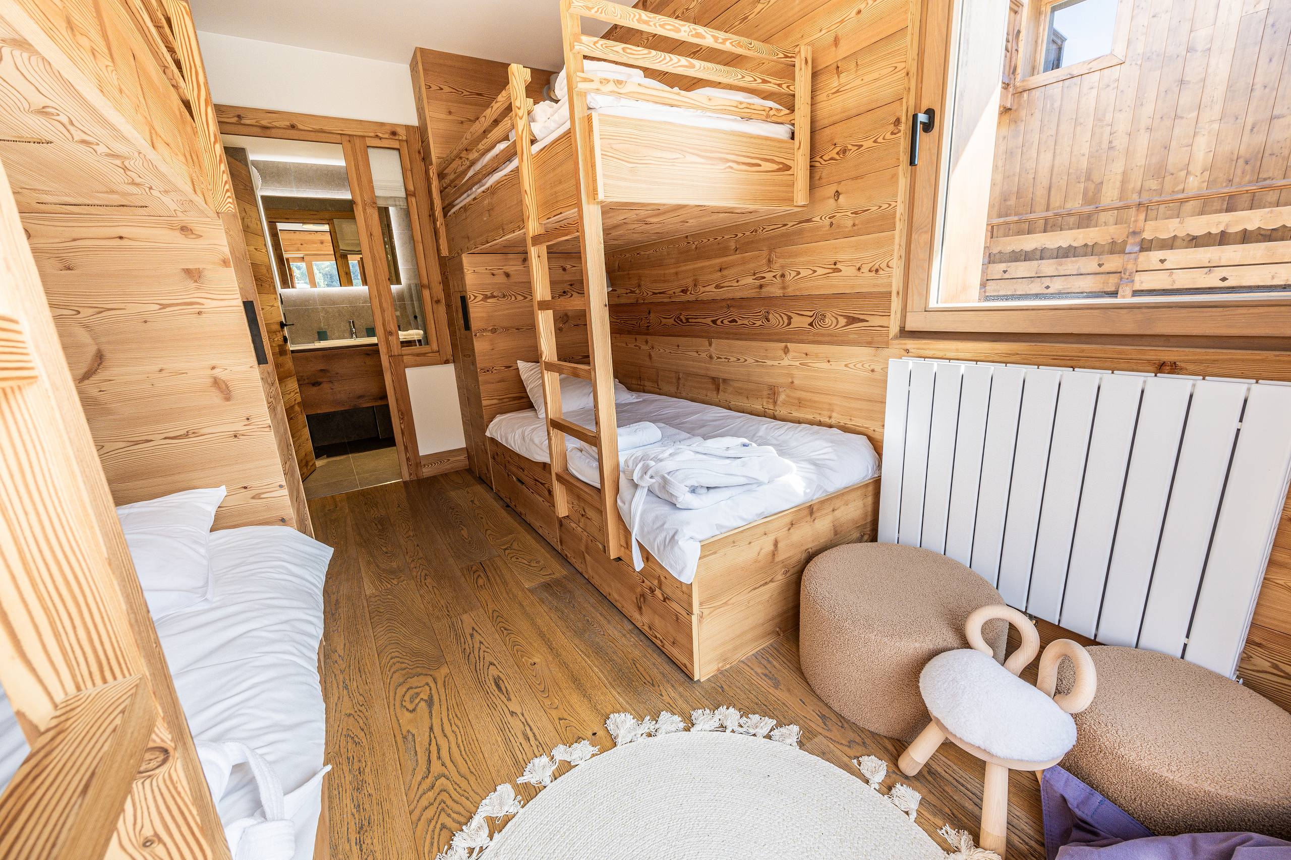 Véritable perle au cœur des 3 Vallées, ce chalet authentique de montagne est habillé de bois et de pierres. L'intérieur offre une ambiance chaleureuse, paisible et accueillante. La décoration intérieure et le mobilier ont été sélectionnés avec gouts et offrent un subtil mélange de matières et couleurs douces. La cheminée en pierres du salon apportera de la chaleur et deviendra le point de rendez vous du chalet, un endroit de partage et de convivialité. Vous apprécierez le volume du séjour et la hauteur du puits de lumière. Le chalet peut accueillir jusqu'à 12 personnes avec ses 4 chambres doubles, dont 3 en suite, le dortoir enfants, et une salle de bains indépendante. Chalet non fumeur / animaux non admis.