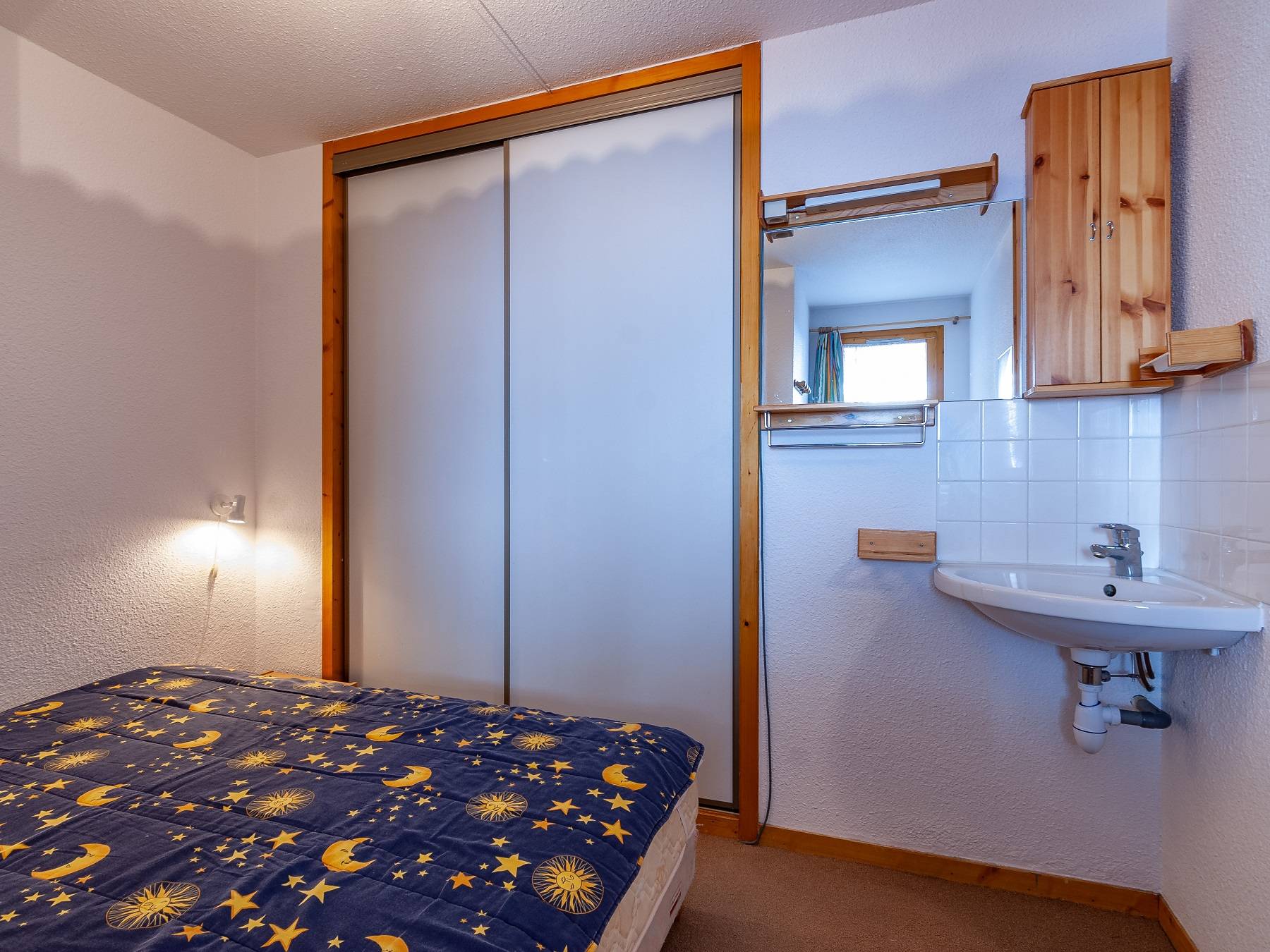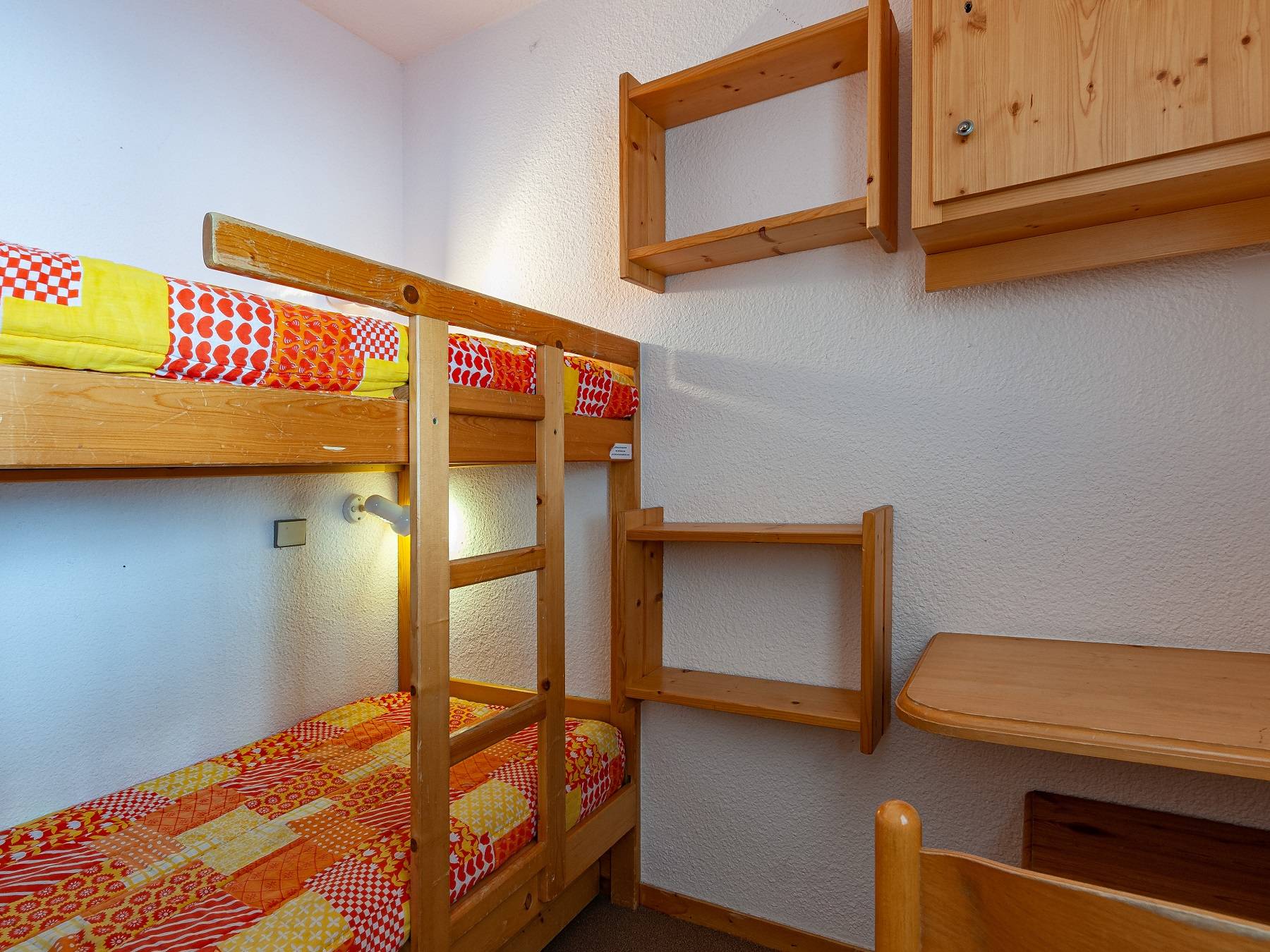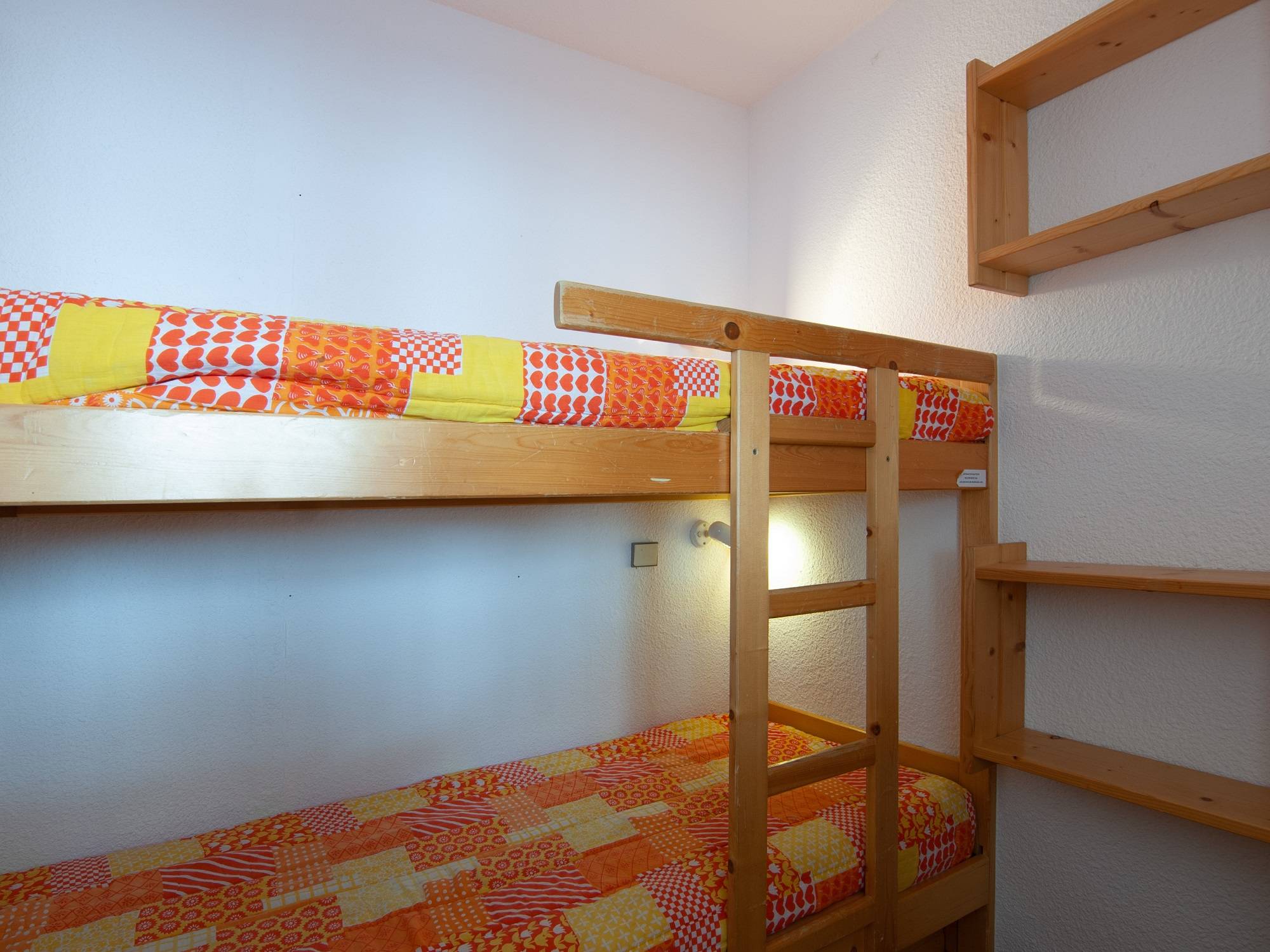 Dans le séjour, se trouve un canapé convertible (140x190) et la télévision. Chambre cabine avec un ensemble de lits superposés (80x190) et chambre avec un lit double (160x190). Kitchenette équipée de plaques vitrocéramique, four, four micro-ondes, lave vaisselle, réfrigérateur, cafetière, bouilloire, grille-pain. Salle de bains et WC séparés. Balcon exposé Ouest. Appartement non-fumeur. Animaux non admis.