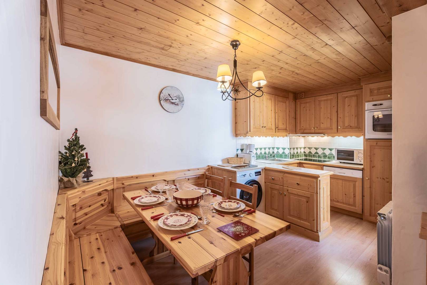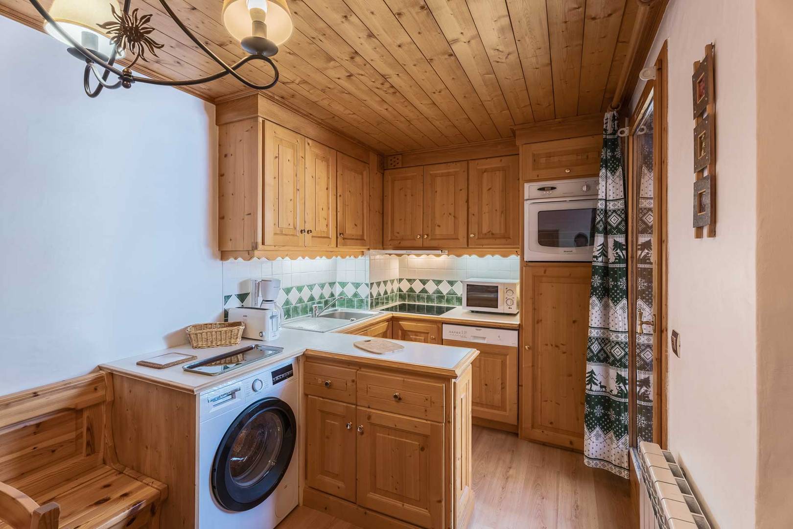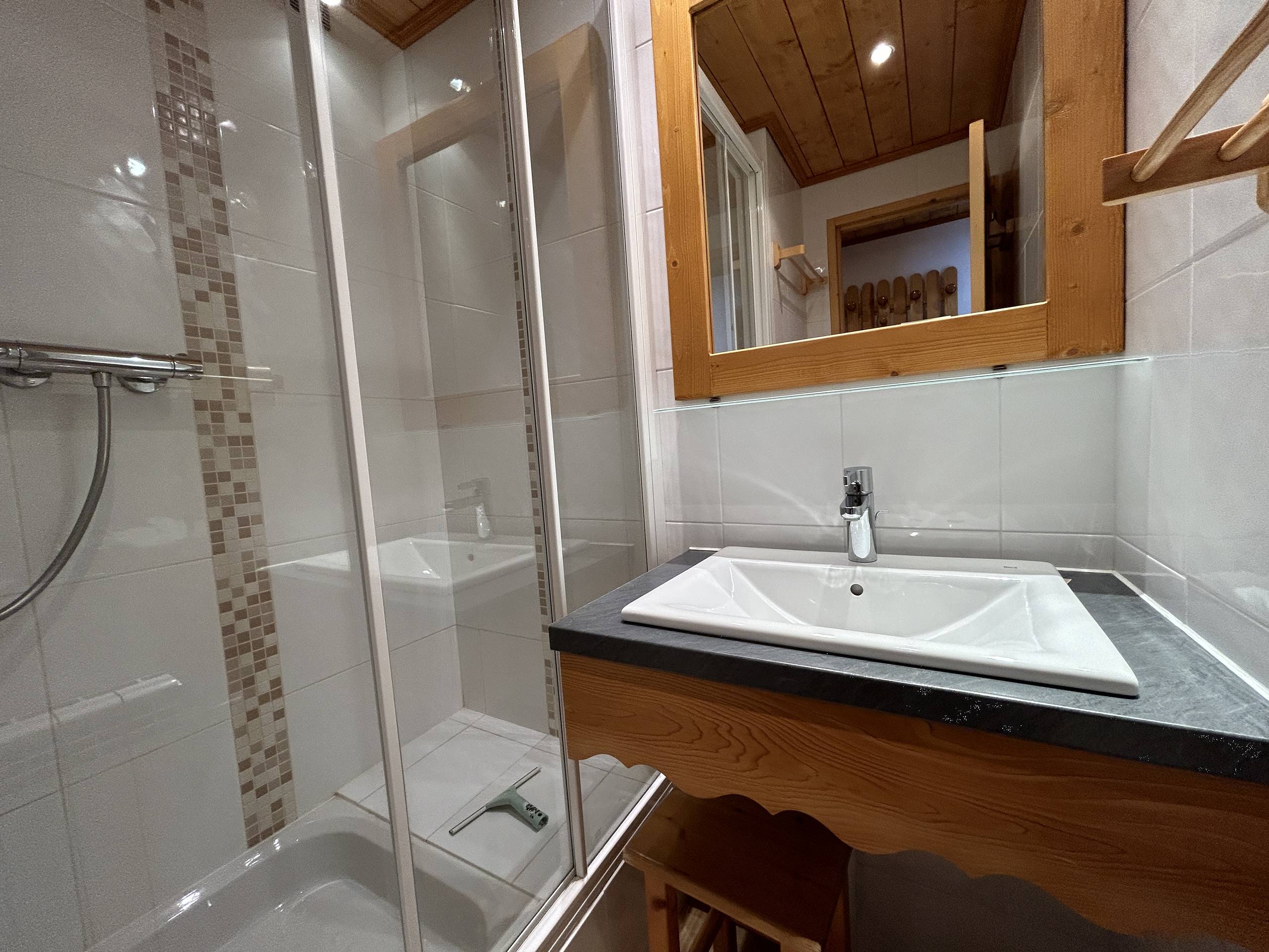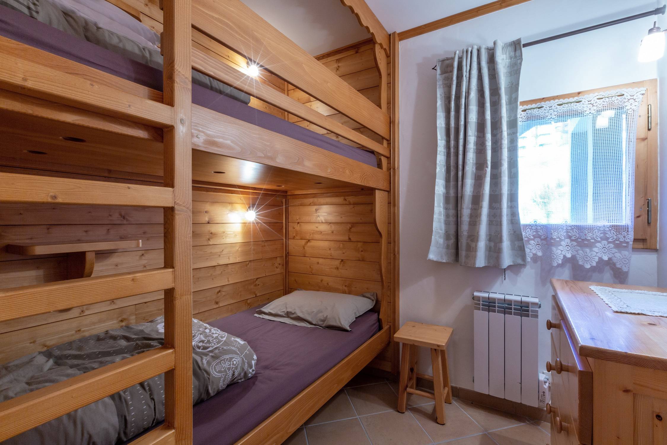 Grand séjour chaleureux, cosy et confortable, vue panoramique sur le Mont Vallon. Banquette lit simple et lit gigogne. Cuisine ouverte équipée d'un four, micro-ondes, réfrigérateur, lave-vaisselle, cafetière, lave-linge. Chambre parentale avec 1 couchage double (180x190) (2 matelas de 90x190). Une seconde chambre cabine avec un ensemble de lits superposés (90x200). Salle de bain et WC séparés. Salle de douche. Appartement non-fumeur. Animaux non admis. Ascenseur et casier à ski la résidence.