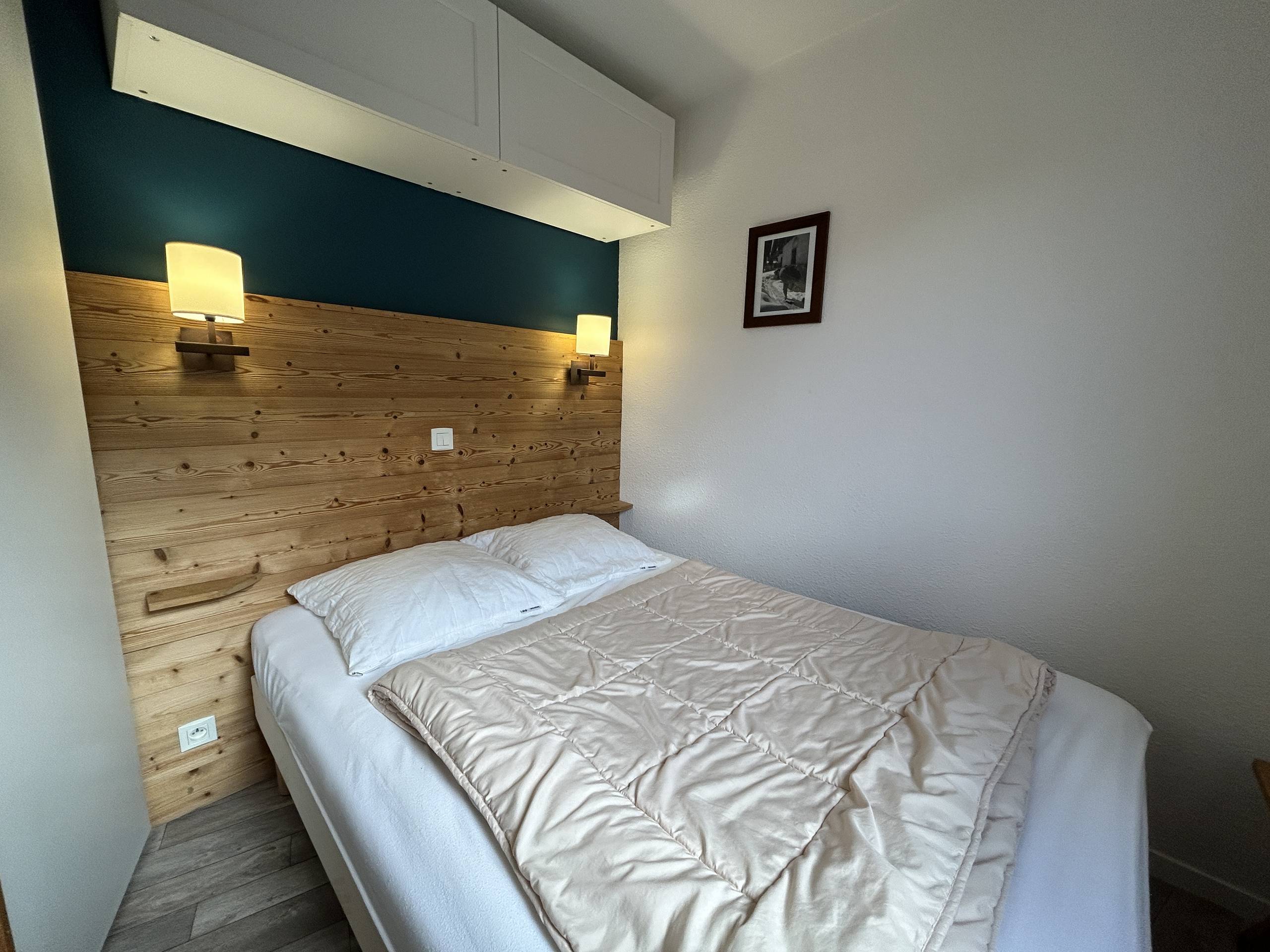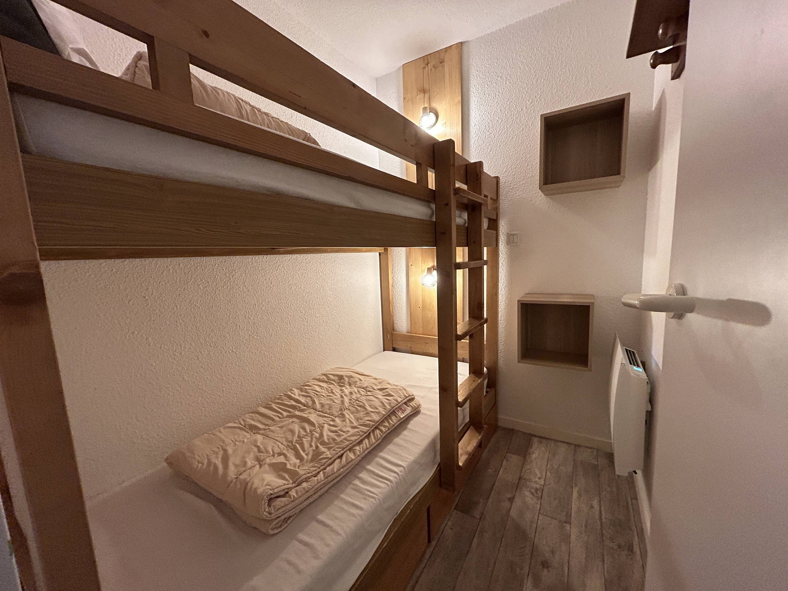 Idéal pour une famille de 4/5 personnes, l'appartement dispose : d'une chambre cabine avec 2 lits superposés (80x180). un wc indépendant, une salle de bains avec baignoire, Kitchenette ouverte avec Lave vaisselle, Réfrigérateur, Plaque cuisson 4 feux, Micro ondes, Bouilloire et Grille pain. Un séjour avec coin repas bénéficiant d'une très belle exposition OUEST avec vue dégagée sur les pistes, le centre station et le massif de Tougnète. Une chambre fermée par une cloison coulissante complète cet ensemble, avec un lit double en 140x190. Le canapé du séjour peut accueillir 2 personnes (140x190). Non fumeur. Animaux non admis. 8ème étage (2ème partie du bâtiment)