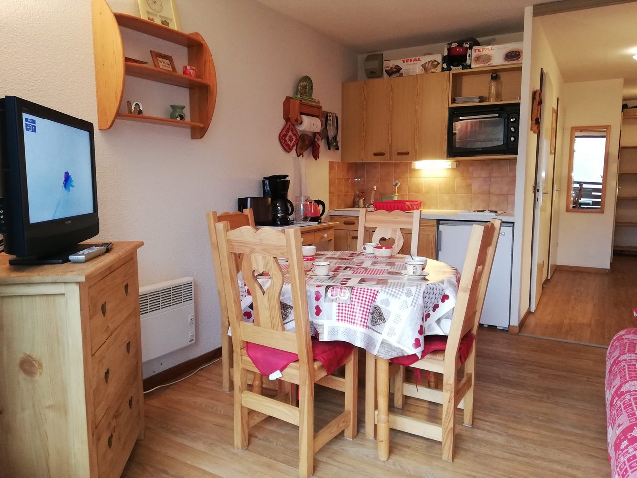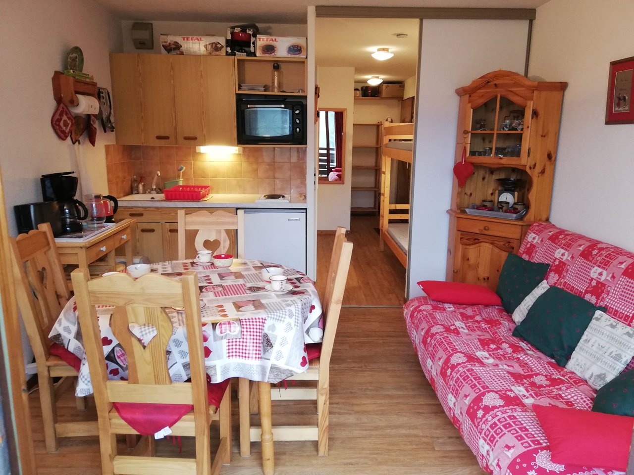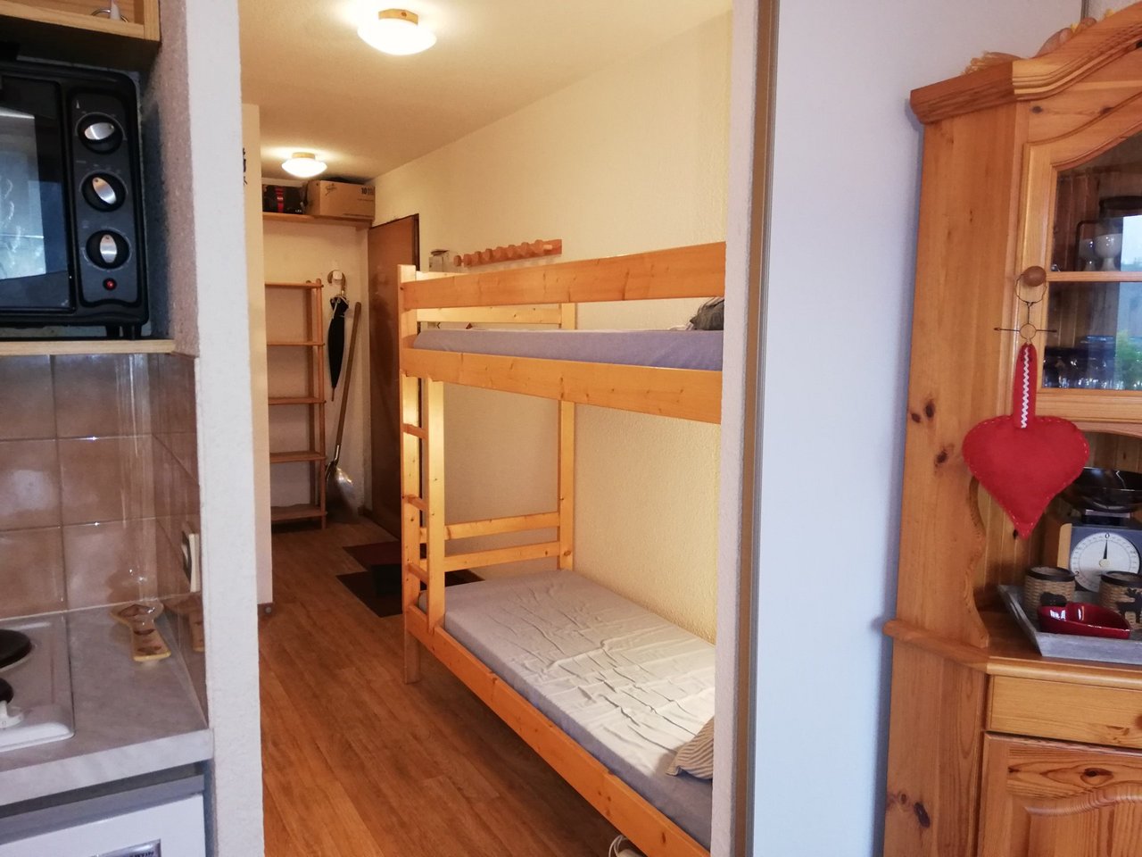 Ce studio d'environ 25 m² situé en rez-de-chaussée surélevé est composé d'une entrée avec 2 lits superposés (NB : Le lit supérieur d'un lit superposé est interdit aux - de 6 ans), d'une chambre cabine avec lit double, d'un séjour avec canapé-lit, d'une kitchenette équipée, d'une salle de bains et de WC indépendants.