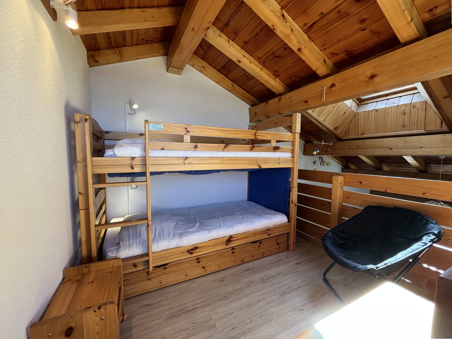 -Une mezzanine ouverte sur le séjour avec un ensemble de lits superposés (2 personnes. 90 x 190 cm)
