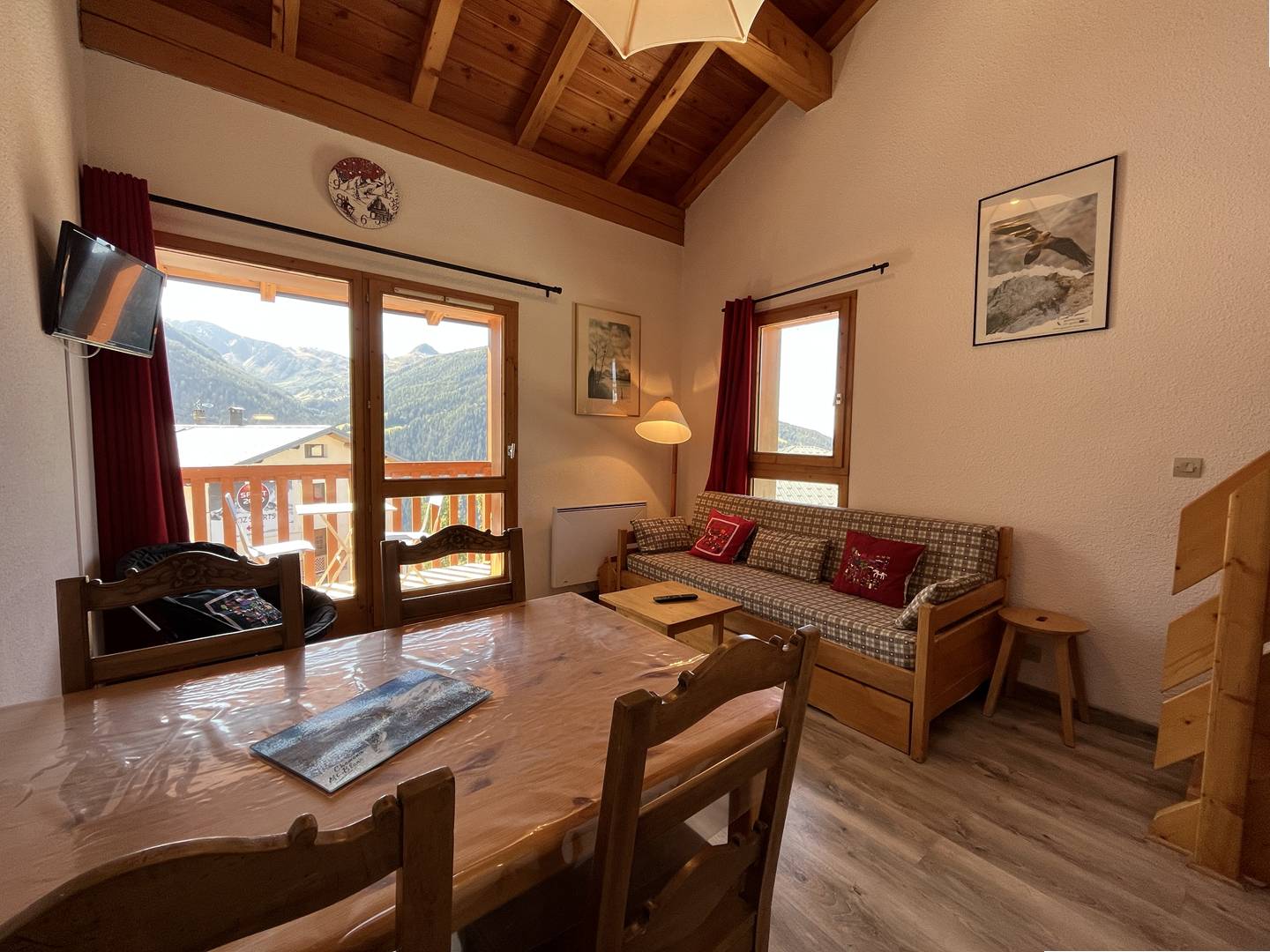 Appartement en duplex pour 6 personnes de 47 m², situé au 2ème étage avec balcon, sans ascenseur, en exposition Sud-Ouest et bénéficiant de la proximité du centre de la station et des pistes