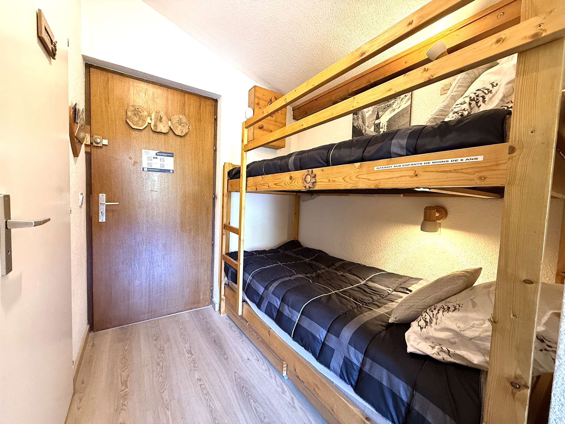 Cet appartement de 2 pièces, situé au deuxième de la résidence sans ascenseur, comprend une entrée avec un lit superposé 2 places, un salon/séjour avec un canapé lit, un coin cuisine équipé, une chambre en sous-pente avec un lit double, une salle de bains et un WC indépendant.