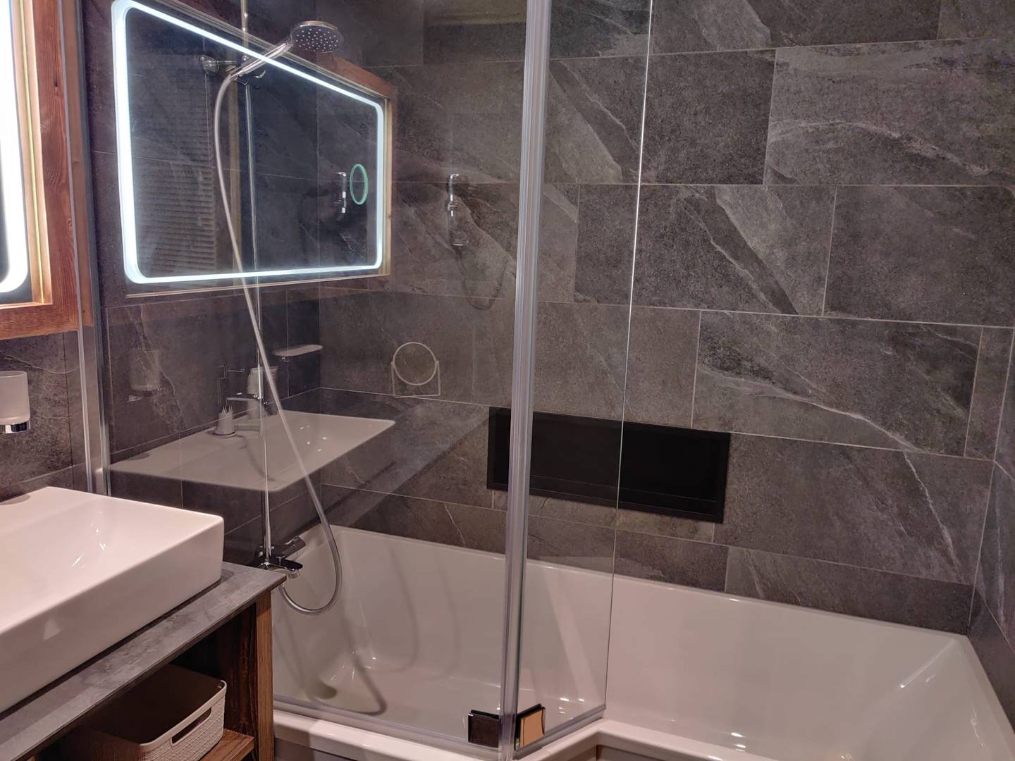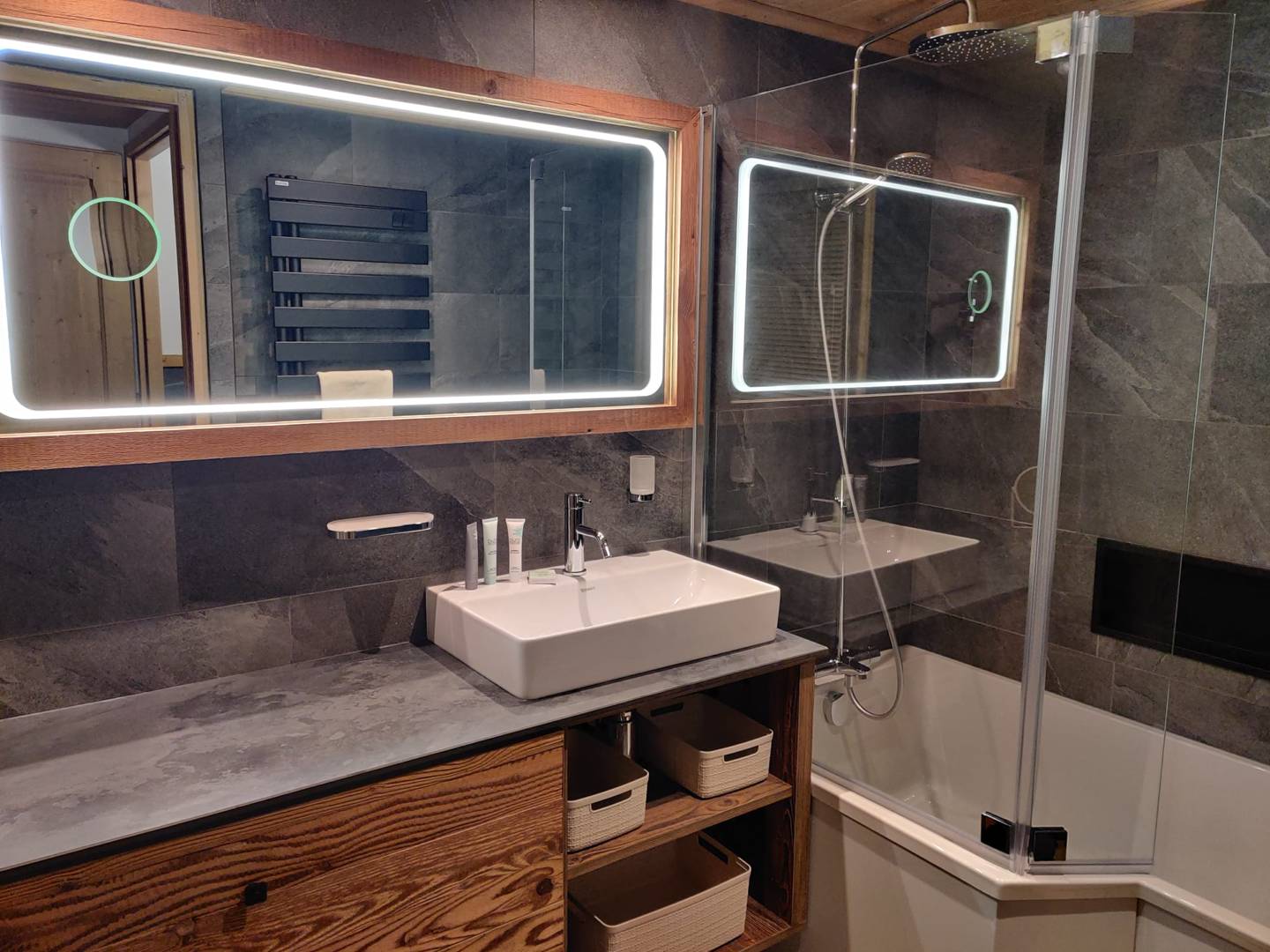 - 1 salle de bain avec sèche-serviette et 1 WC indépendant