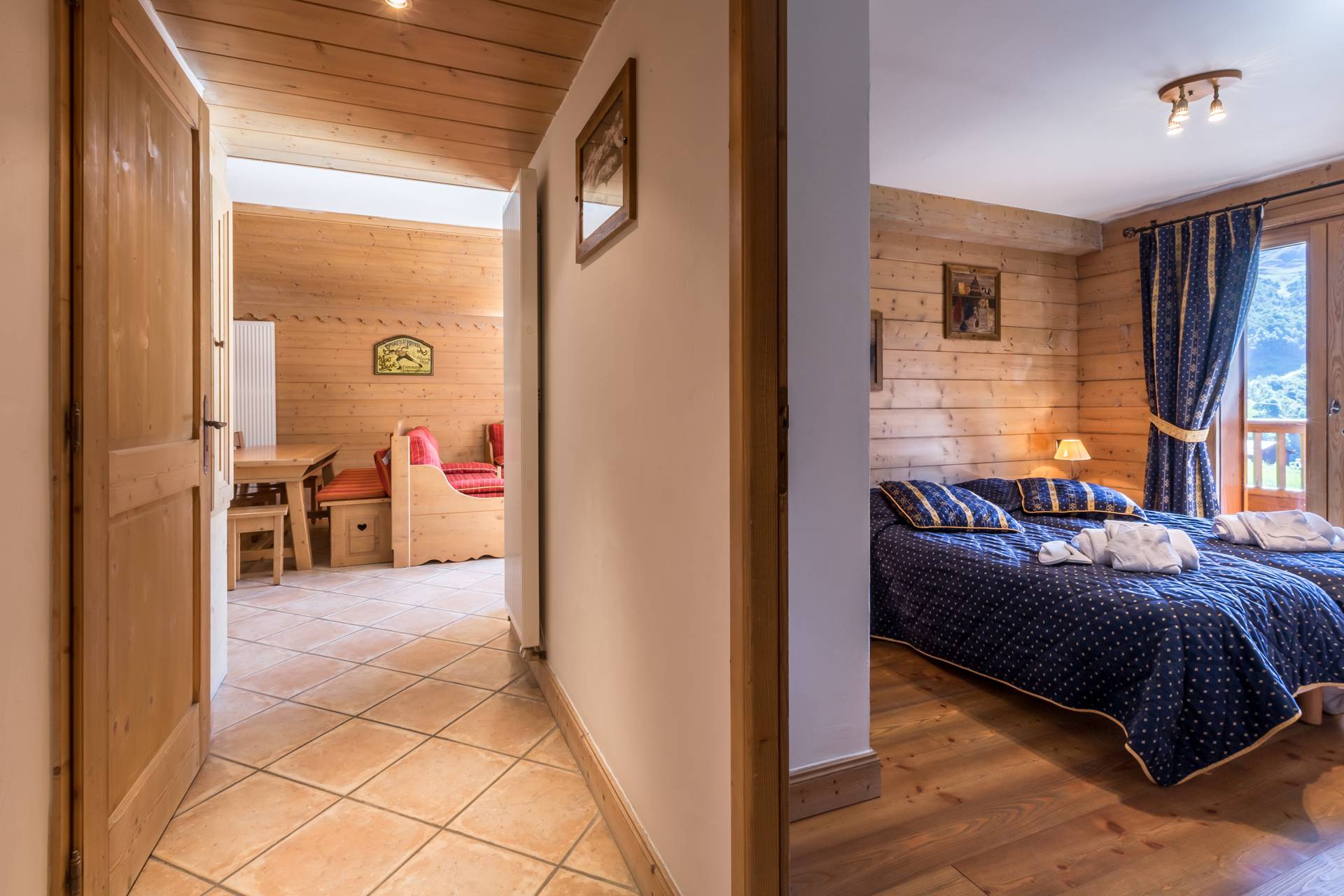 - Chambre 2 : lits jumeaux ( 90 x 200 cm). Accès direct sur un balcon. Vue pistes
