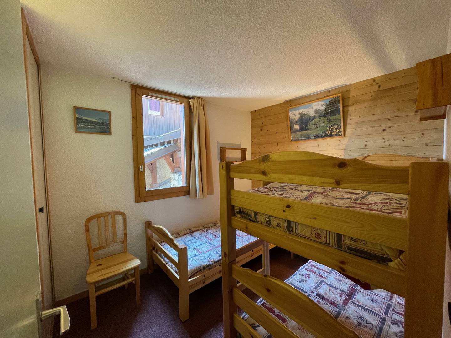 - Chambre 1 : Un ensemble de lits superposés (2 personnes. 80 x 190 cm) + 1 lit simple (1 personne. 80 x 190 cm)
