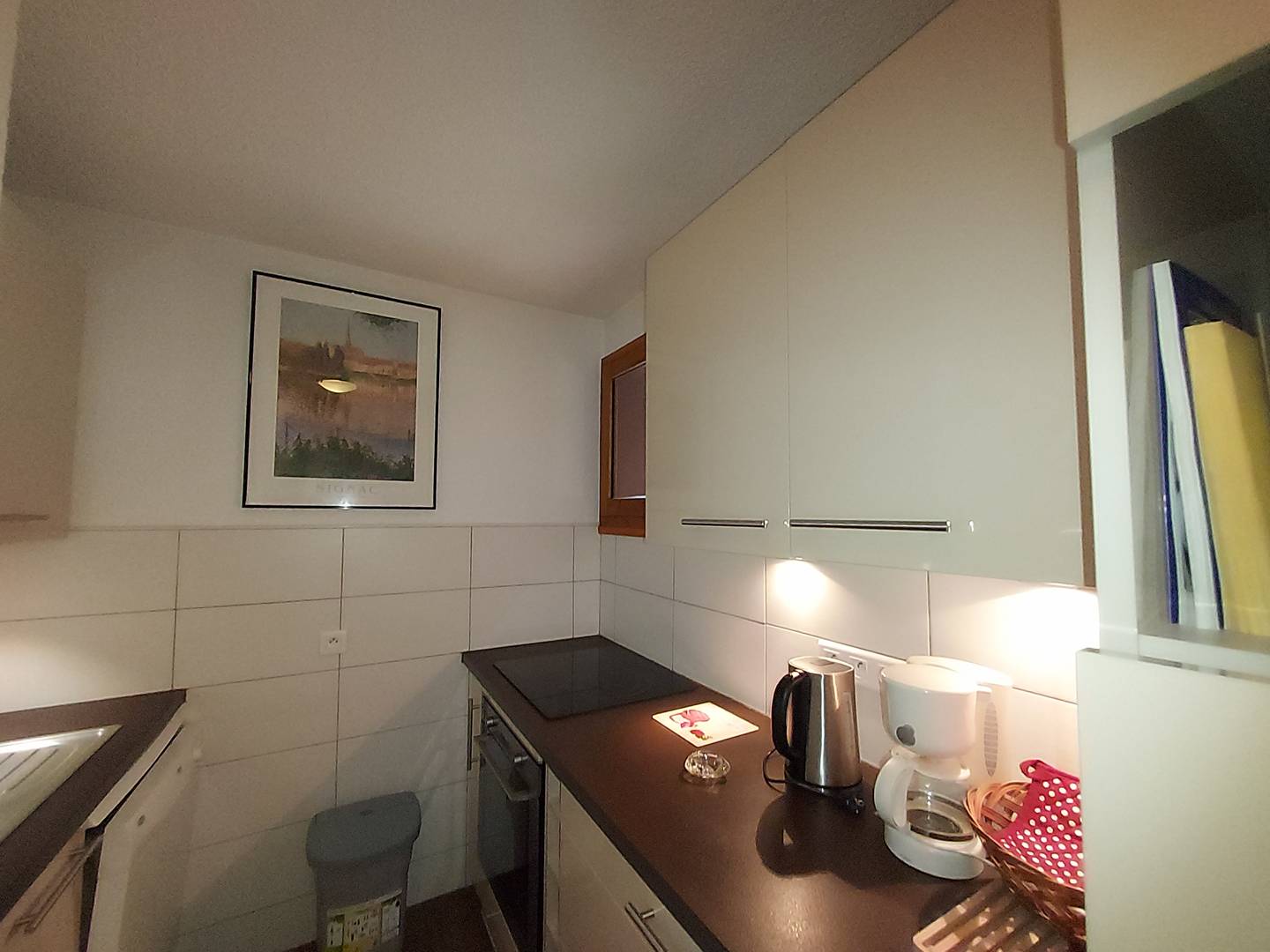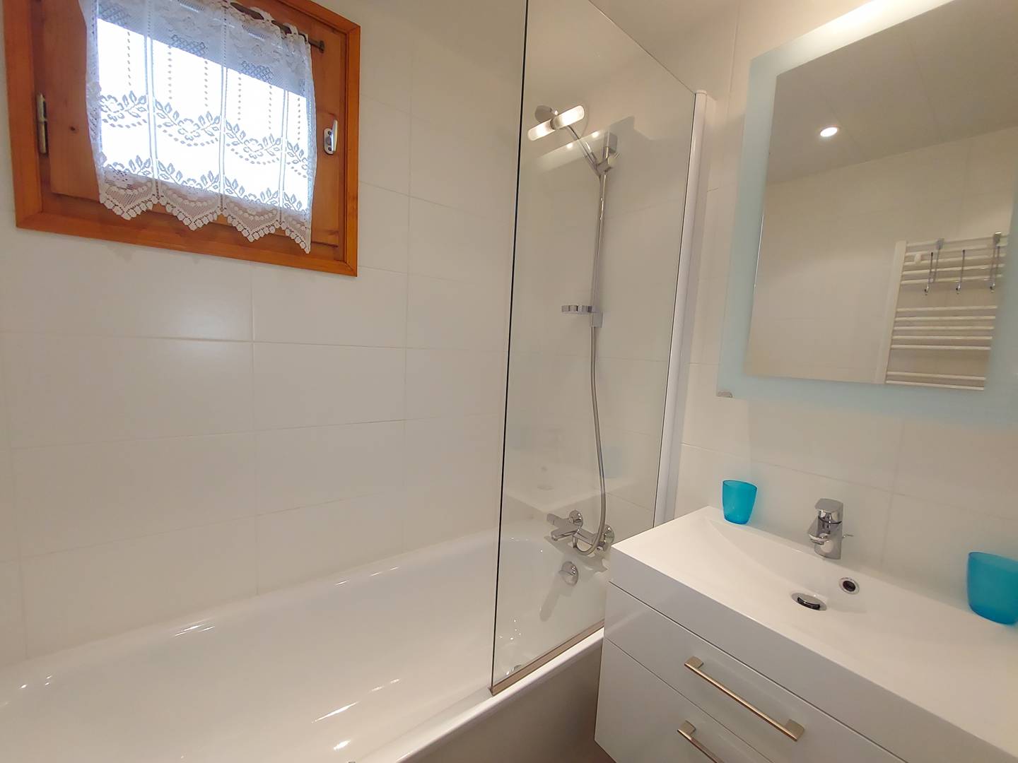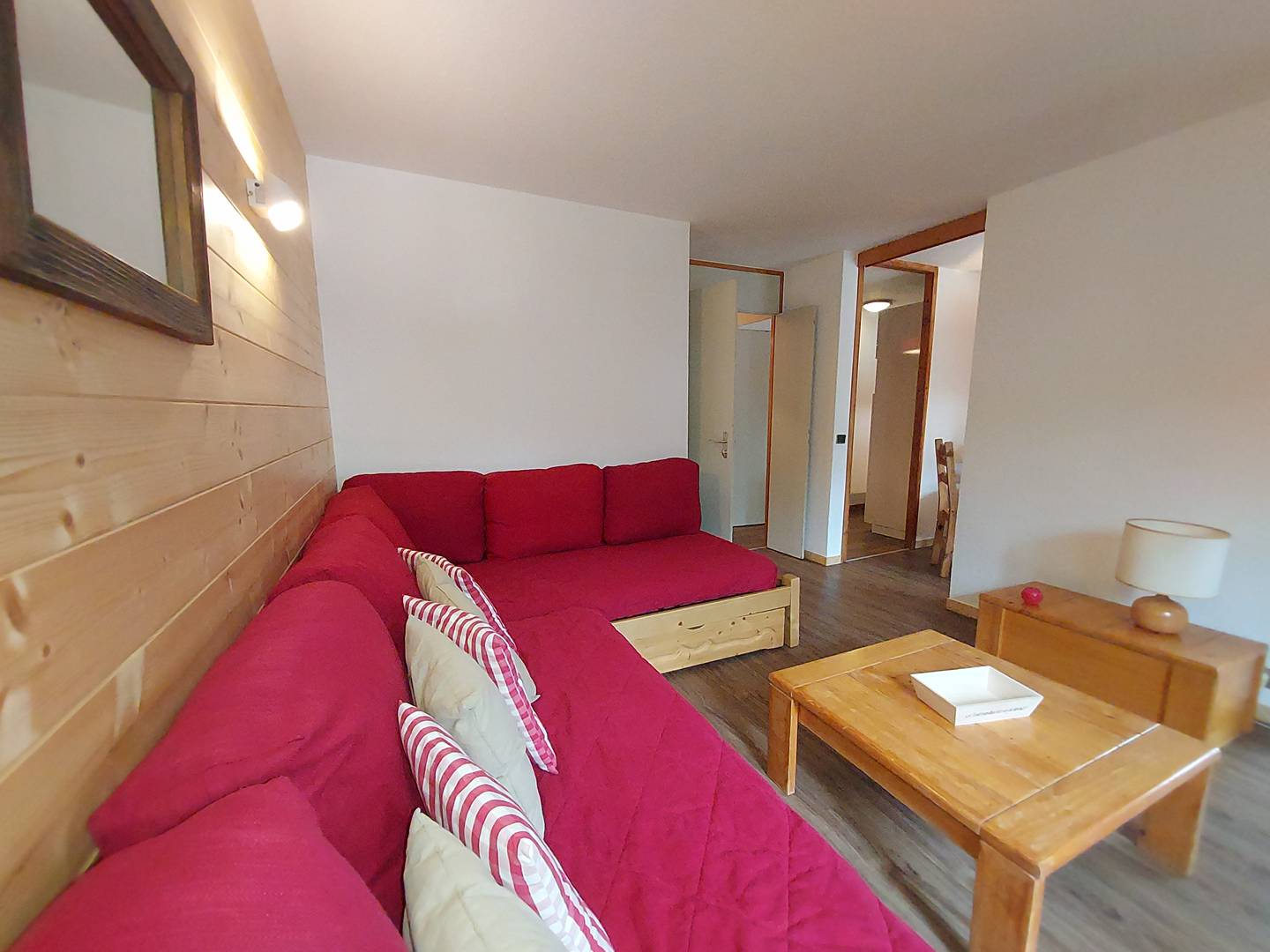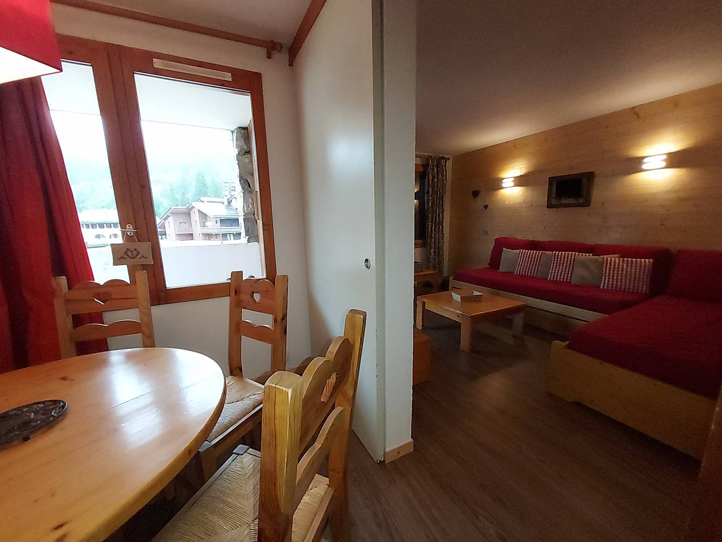 Séjour avec 2 lits simples, télevision. Chambre avec un lit superposé, et 2 lits simples Cuisine équipée de plaques vitrocéramiques, four, micro ondes, lave vaisselle et réfrigérateur 100cm. Salle de bains et wc indépendant. Balcon. Casier à skis dans la résidence.