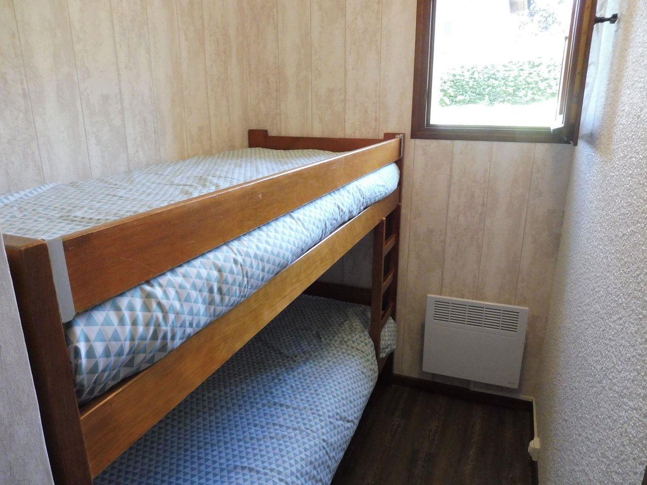 This 25m² ground floor holiday rental has a living room with a sofa bed and a fold-out double bed, an open-plan kitchen, a cabin with 2 bunk beds (NB: the top bunk bed is not suitable for children under 6), a bathroom with WC and a terrace.