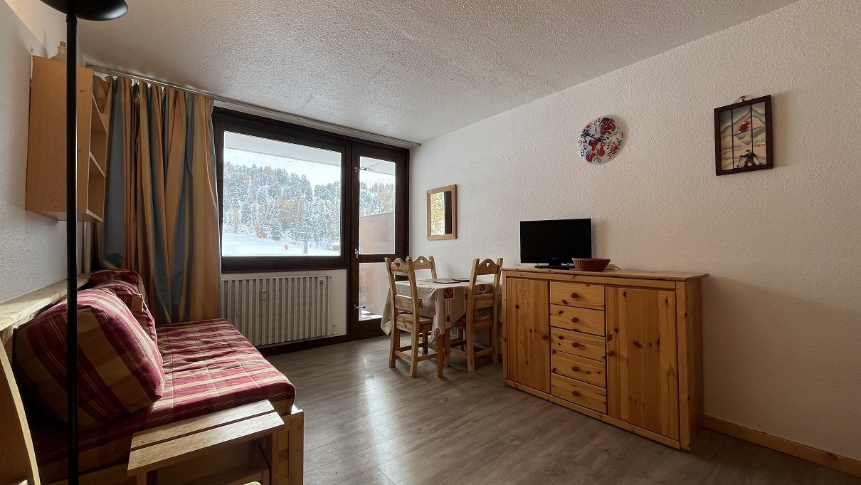 PLAGNE CENTRE – Residence Le France. Traditional studio with balcony, facing south, offering a view of the slopes. The residence is located directly on the slopes with a direct access to the shops through the interior gallery.
