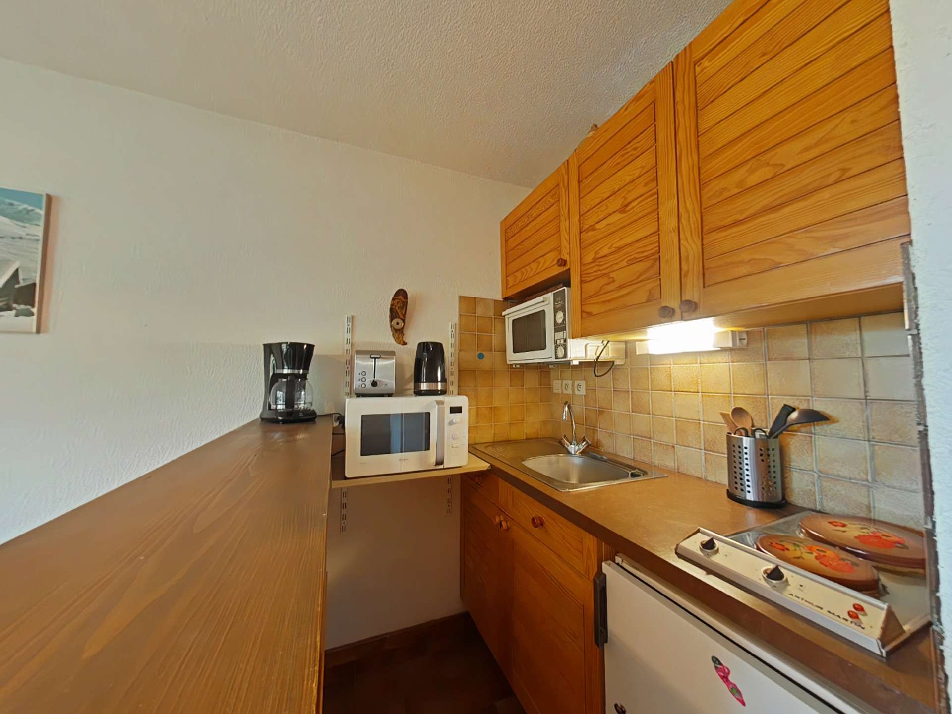 The advantages of this mountain studio: Private shared parking at the residence, ski locker. A footbridge providing access to the slopes is available at the foot of the residence.