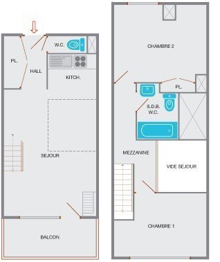 Samance. Appt 3 pièces. 6 ppl.