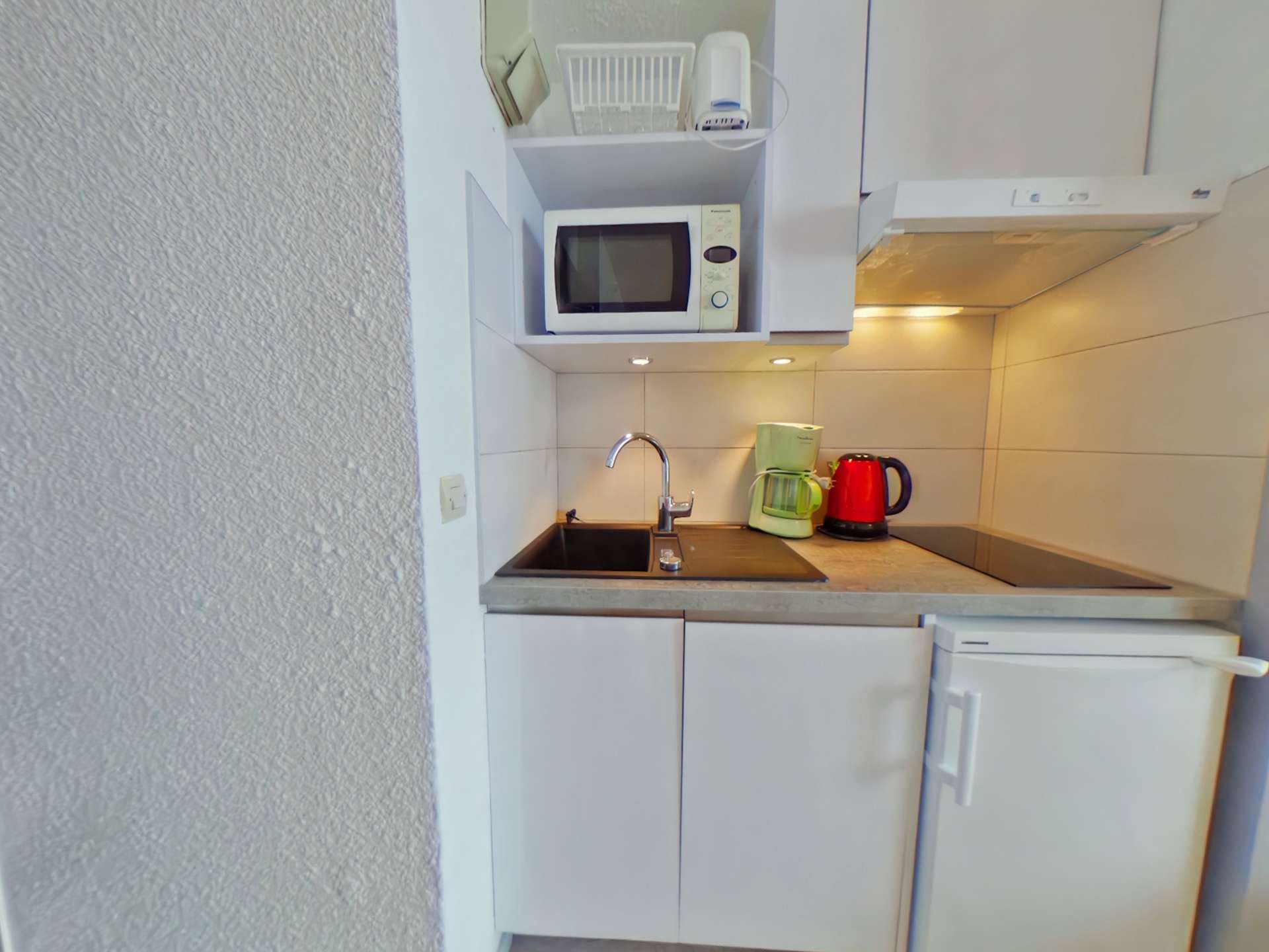 Studio apartment on the 3rd floor of the residence without lift (3 floors to climb), facing south/east with balcony.