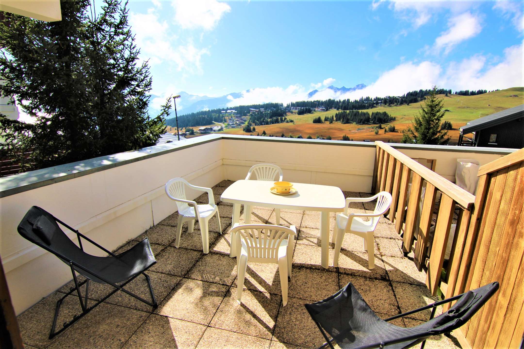 Studio apartment on the raised ground floor of the residence without lift (1 floor to climb), south-facing with sun terrace.