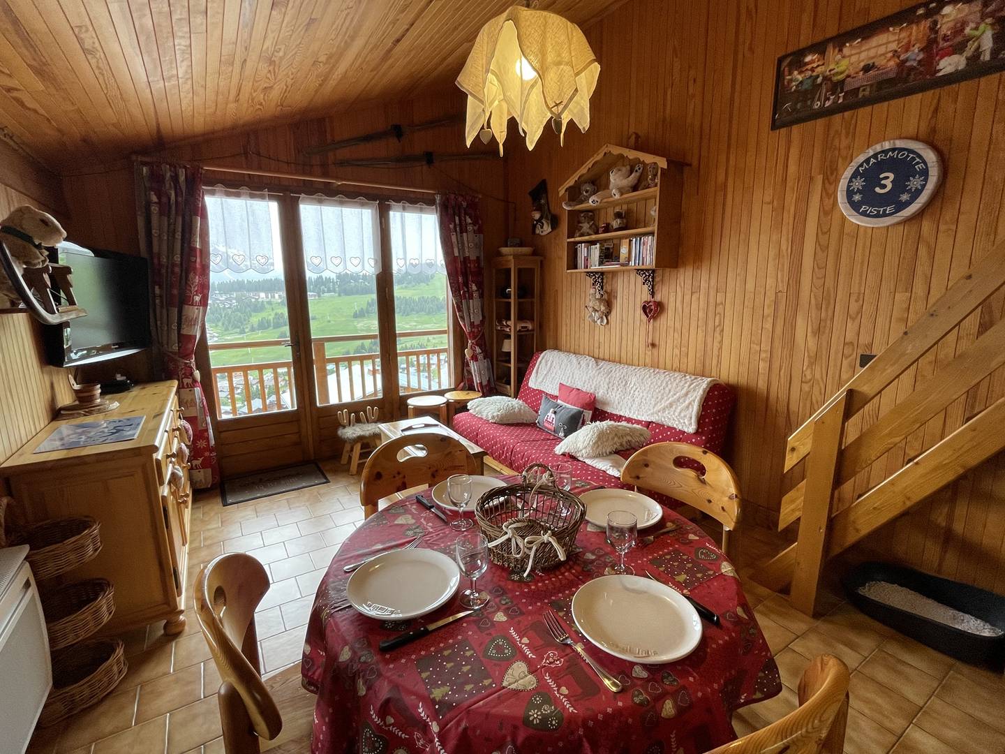 The ski path for downhill skiing is located about 30 meters of the apartment. A sport and food store as well as the Table des Armaillis restaurant (Bib Gourmand 2022) are located nearby the apartment.