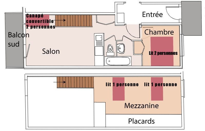 Haut de station. Appt 2 pièces mezzanine. 5 ppl.