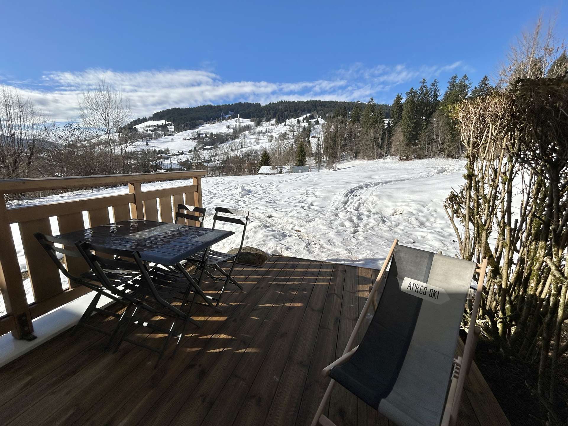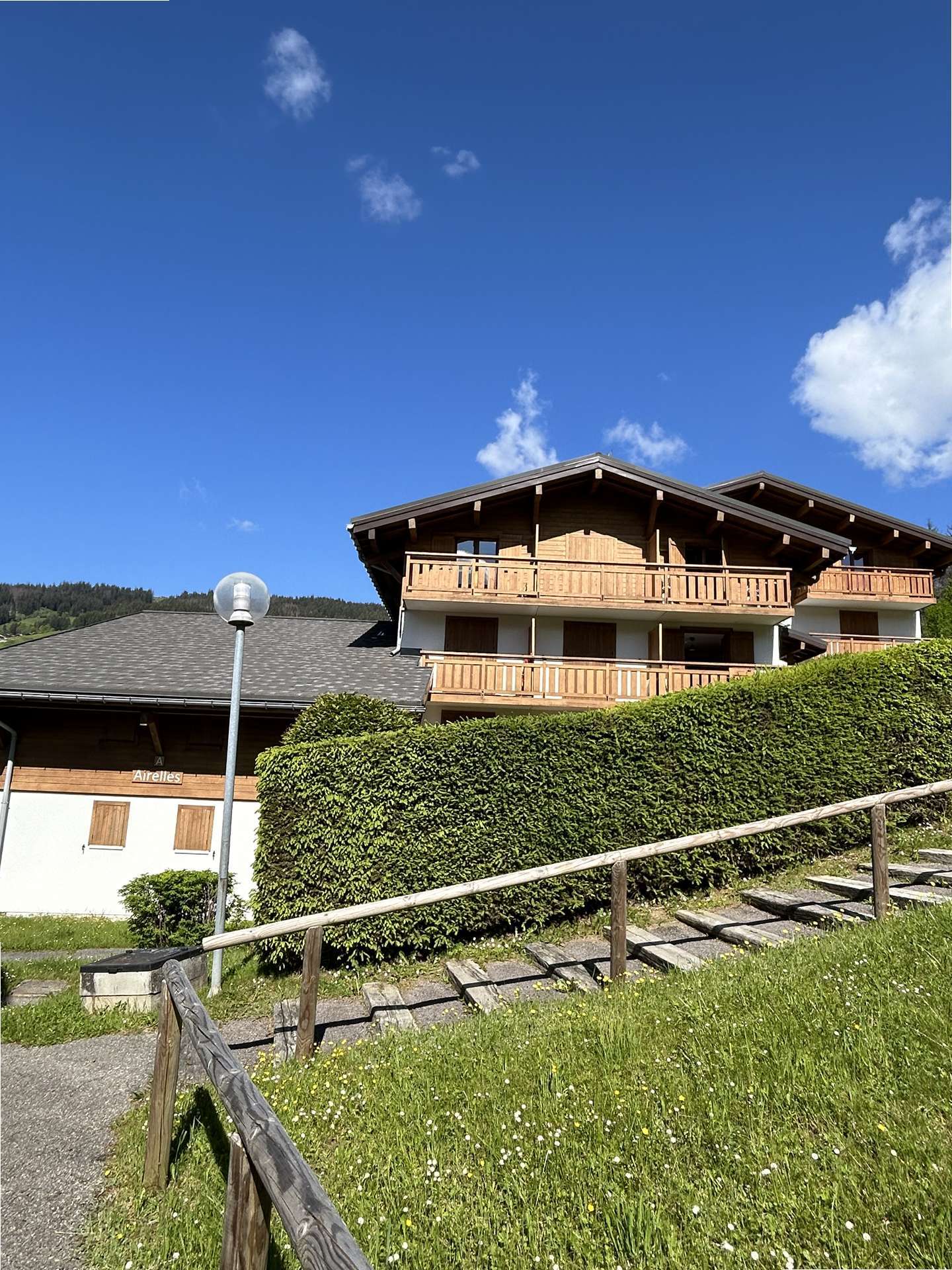 Group of three chalets built on the heights at the edge of a forest. Vast green spaces, quiet location.