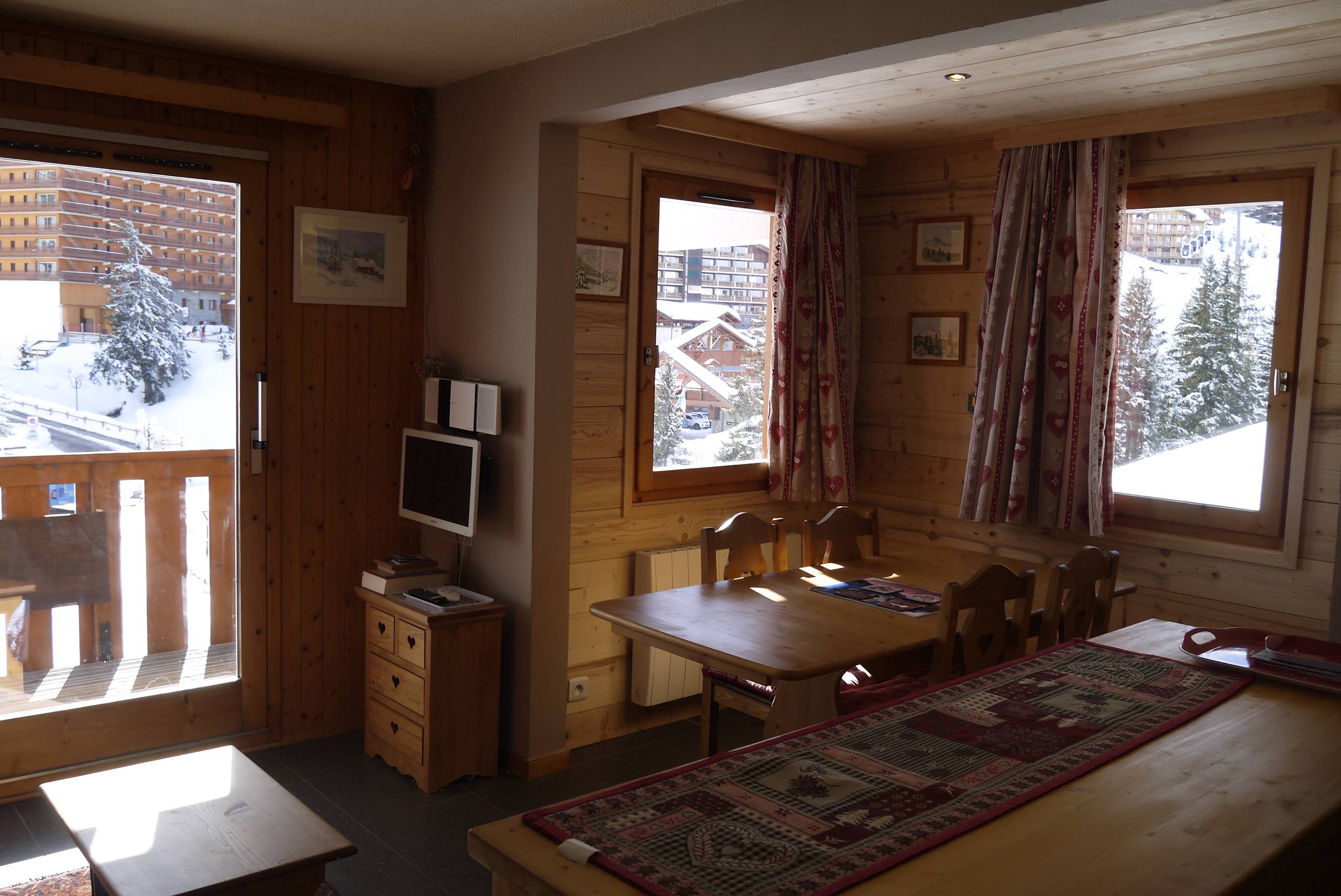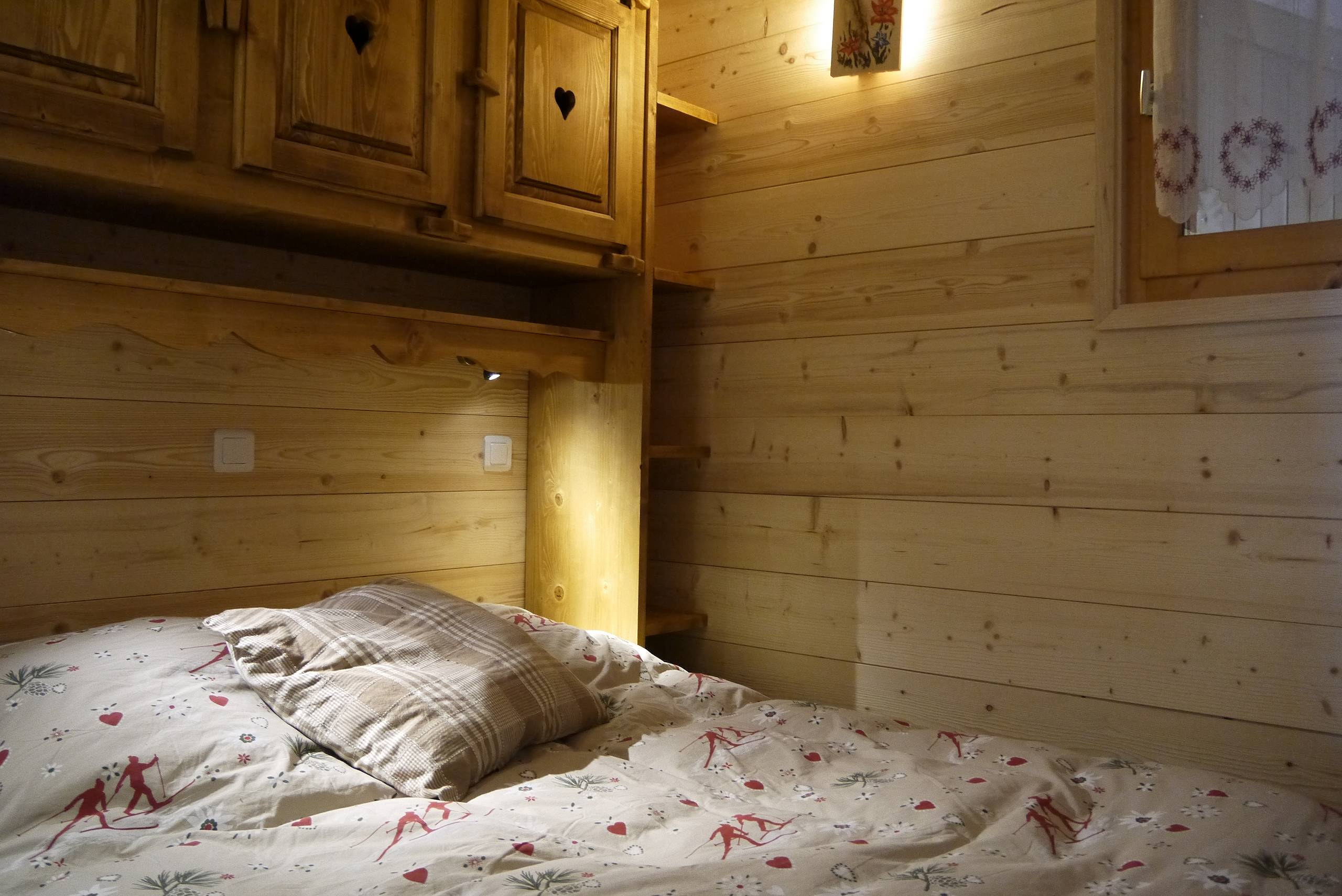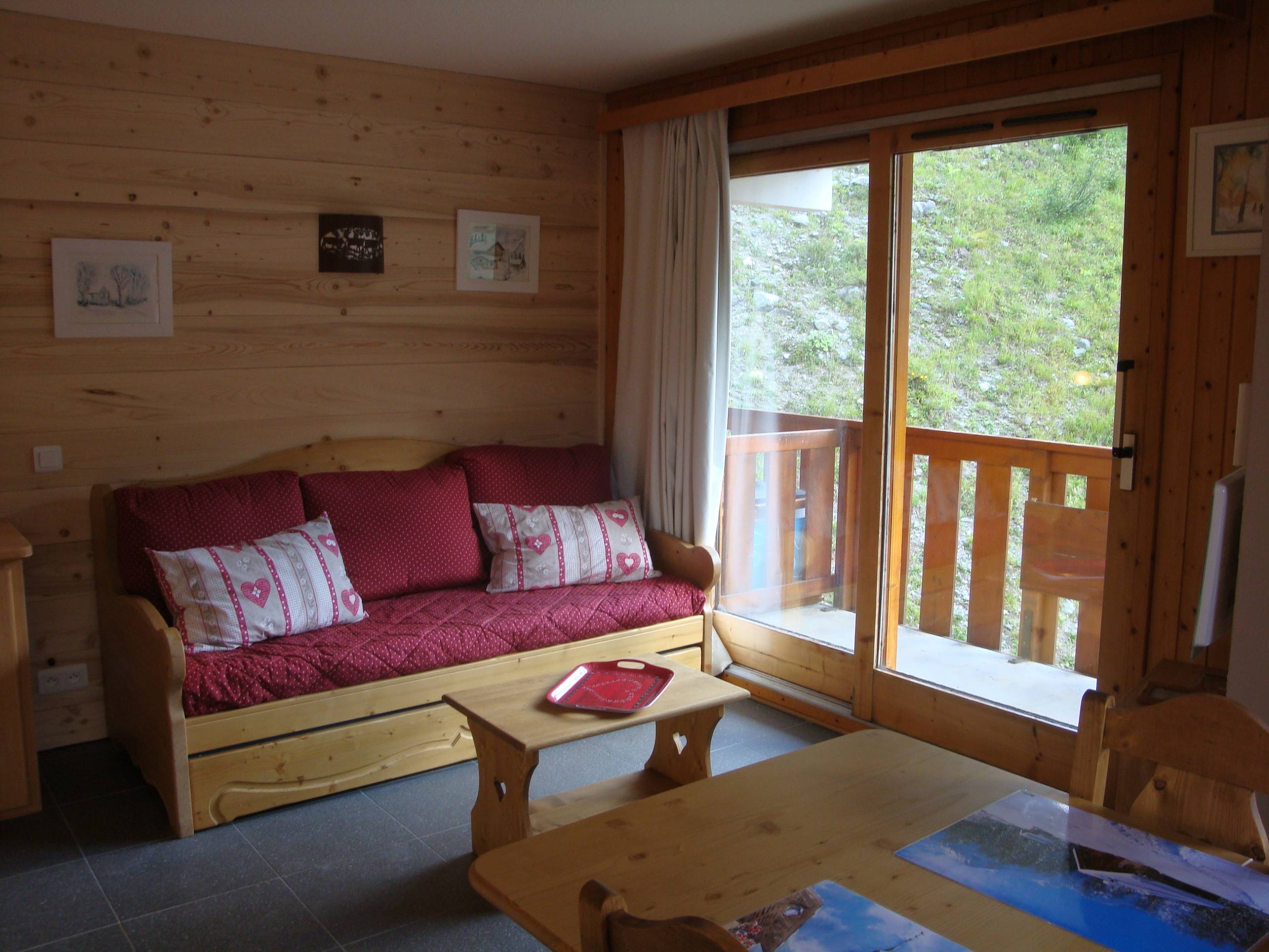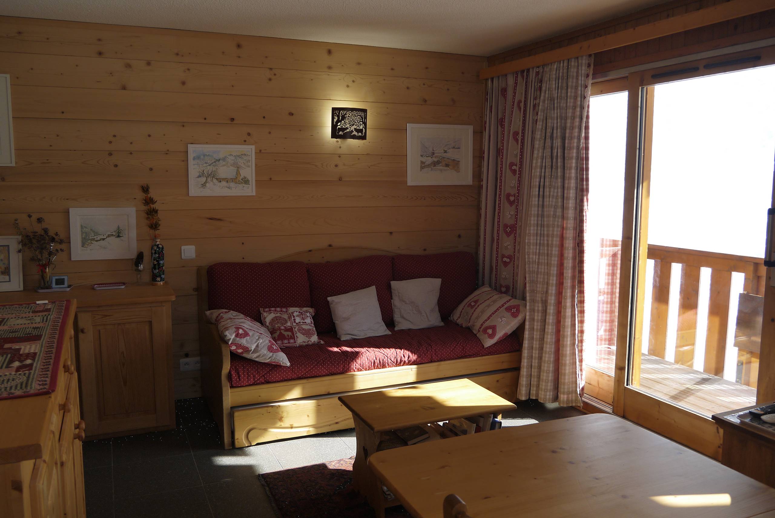 Lounge with a single bed, a pull-out bed (80x190) a TV, and a balcony southern exposure. A bedroom with a double bed (140x190). The kitchen is equipped with an electric hob, an oven, a microwave, and a dishwasher. The shower room and toilets are separated. LABEL MERIBEL. 4th floor. Non smoking apartment.